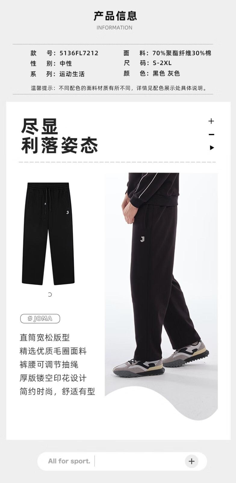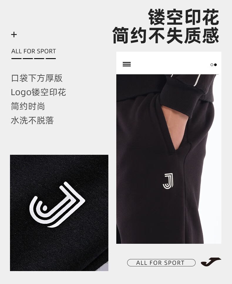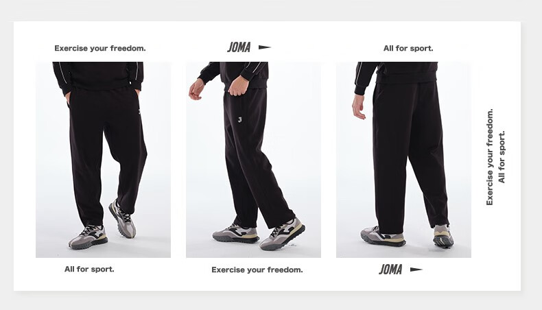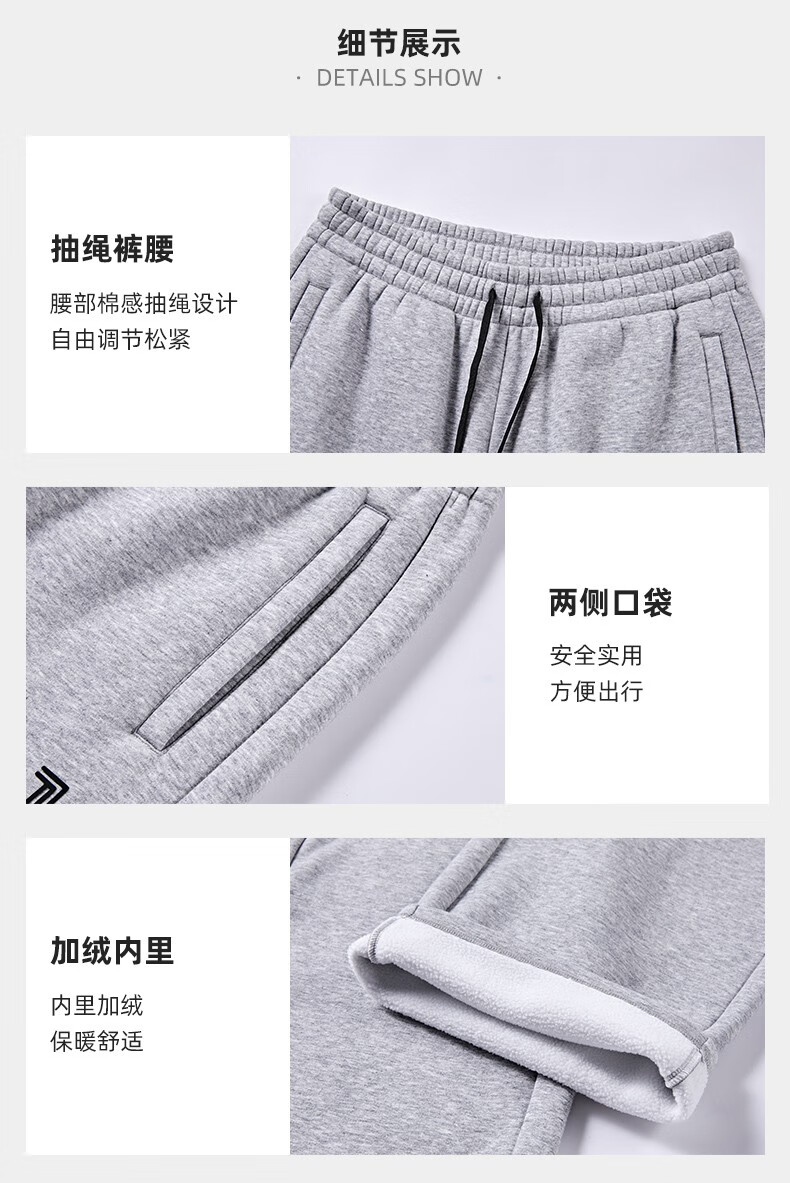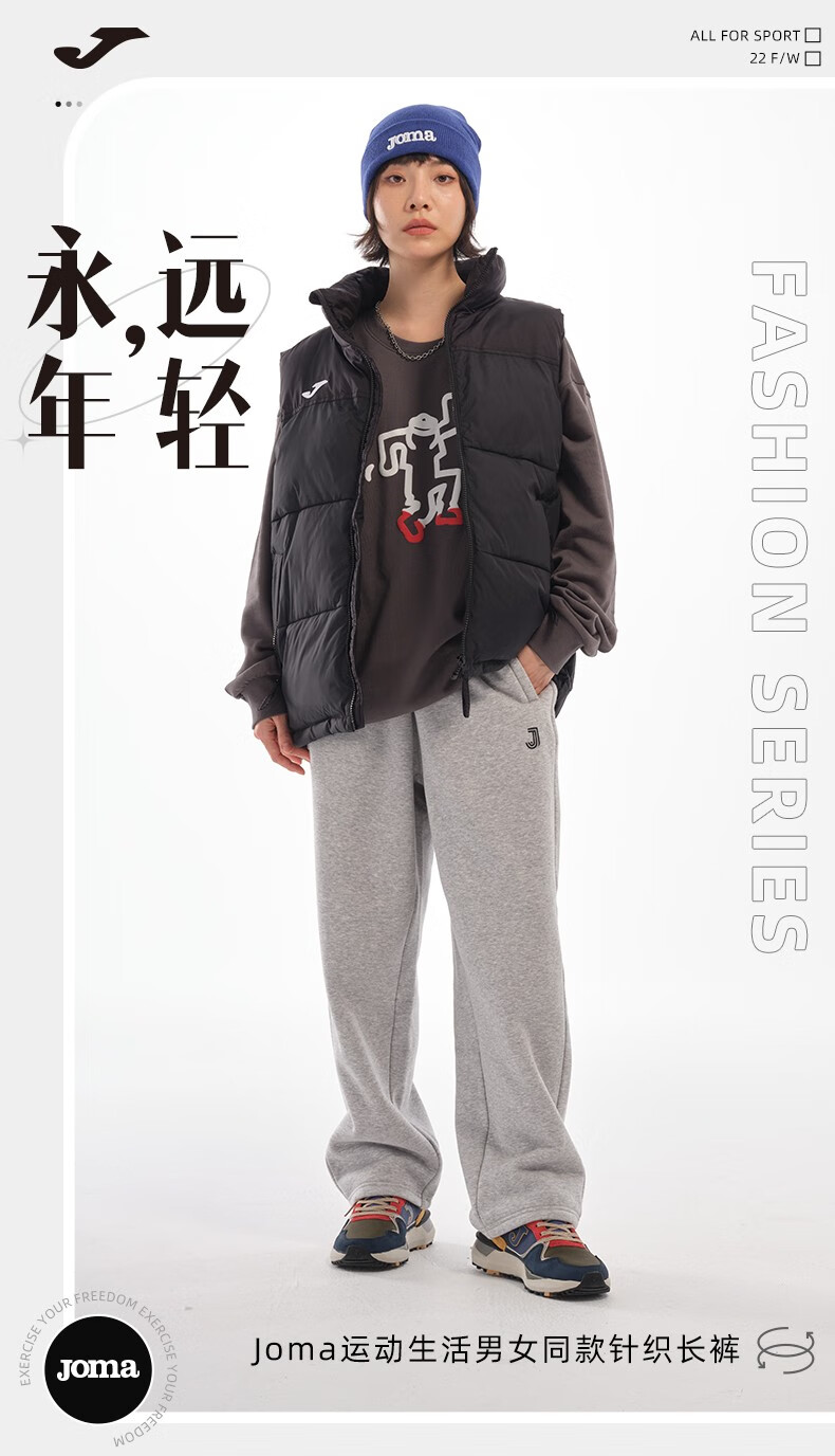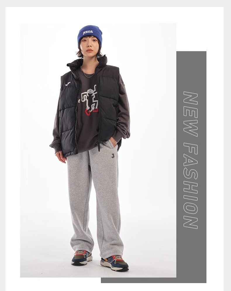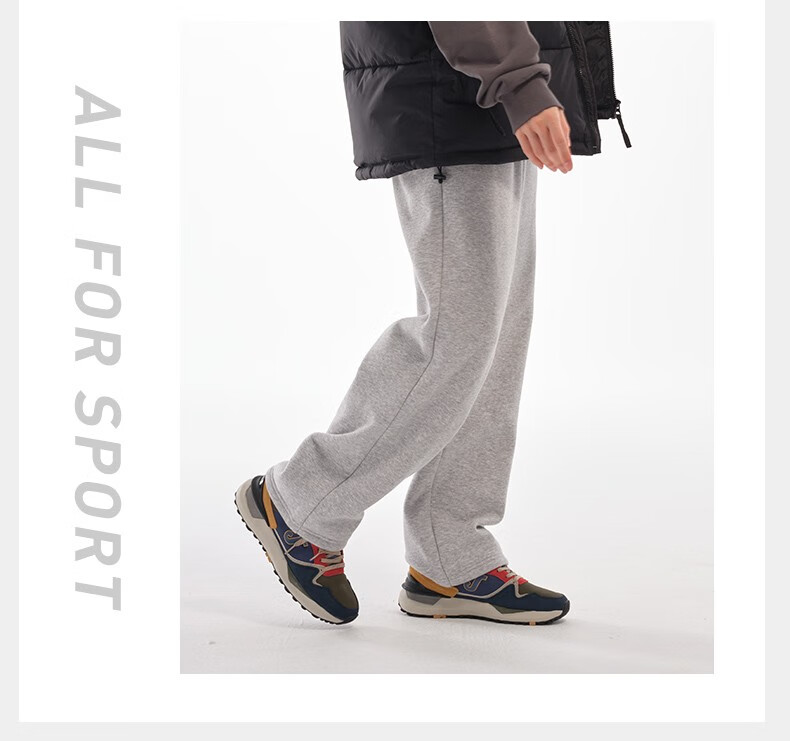 JOMA fleece sweatpants for men and women, autumn and winter loose straight knitted sweatpants, winter outdoor running flat casual pants, black L