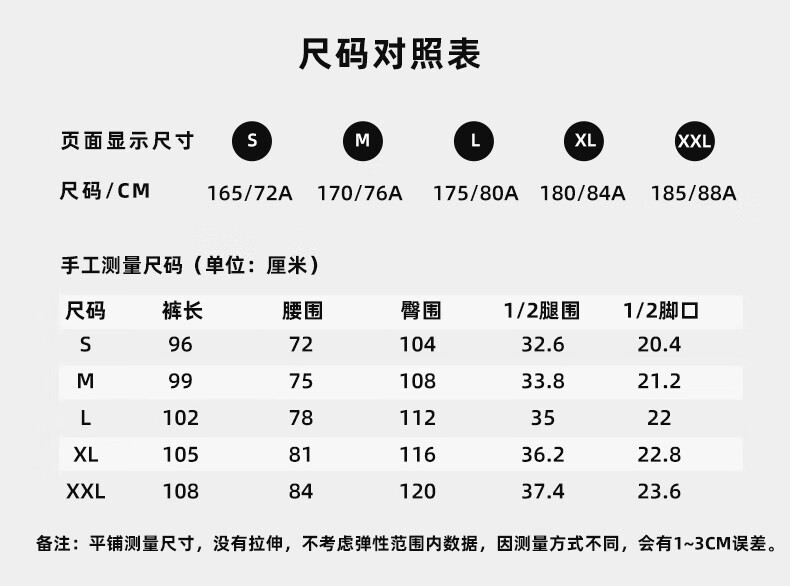 Outseam (cm) 99 cm 101.5 cm 104 cm 106.5 cm 109 cm