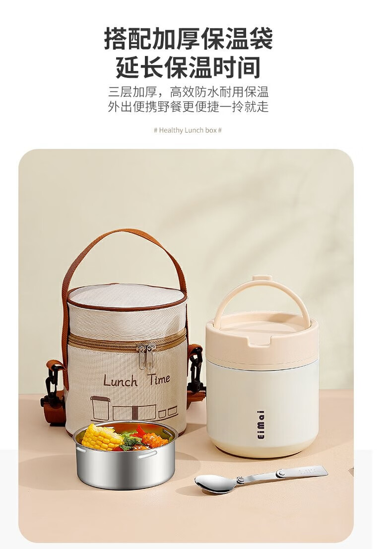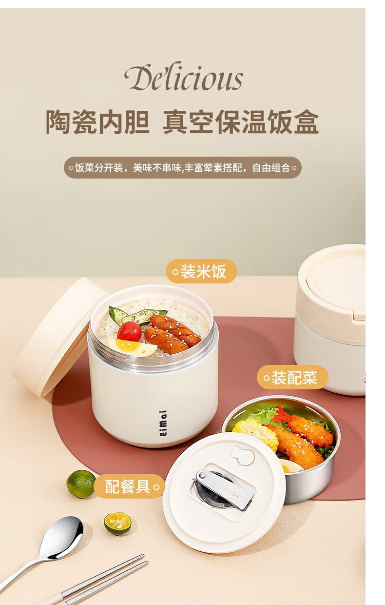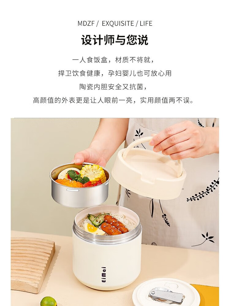 Junmo Super Insulated Lunch Box Liner for Soup for Office Workers 2023 New Insulated Box and Bucket Portable Source Mibai++Qiao Ceramic Liner for Better Insulation Mibai-Large Size