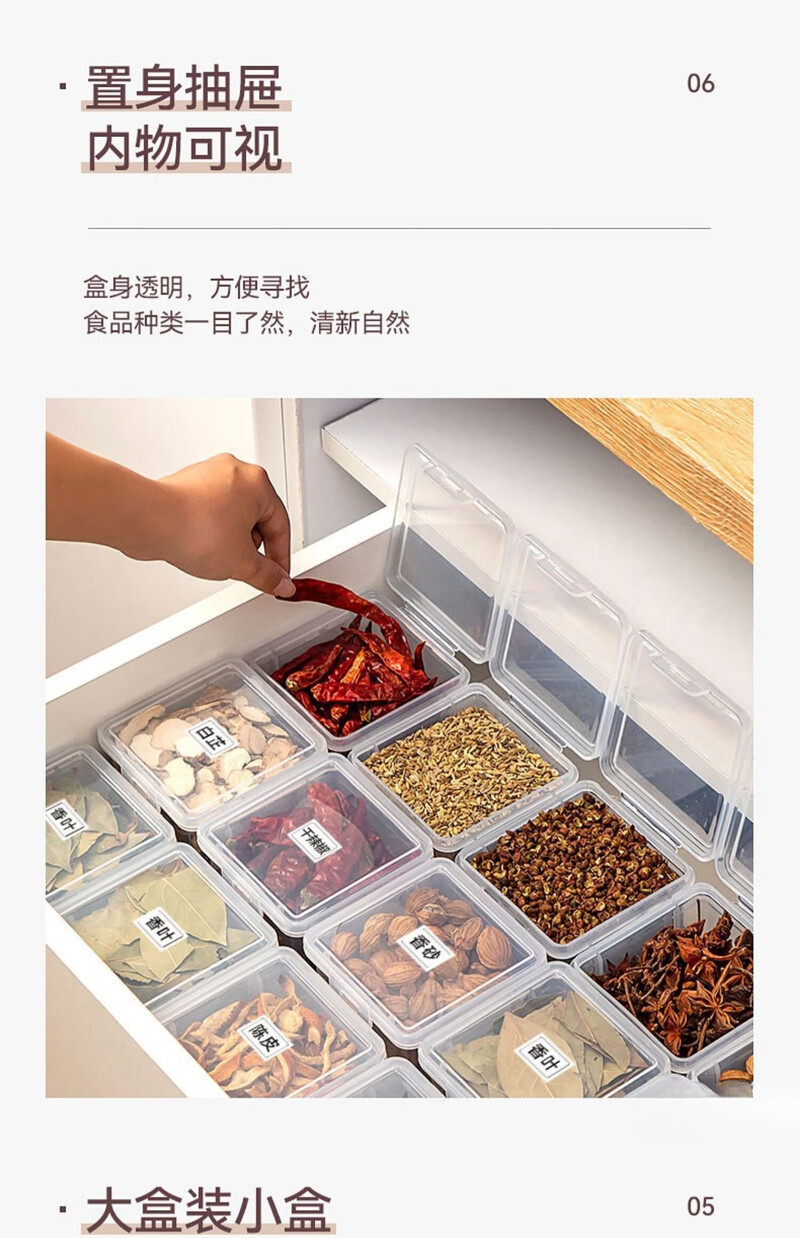Simple style spice storage box dried chili seasoning bottle sealed pepper condiment aniseed kitchen star anise cinnamon seasoning jar set small high model 630ML 9 pieces