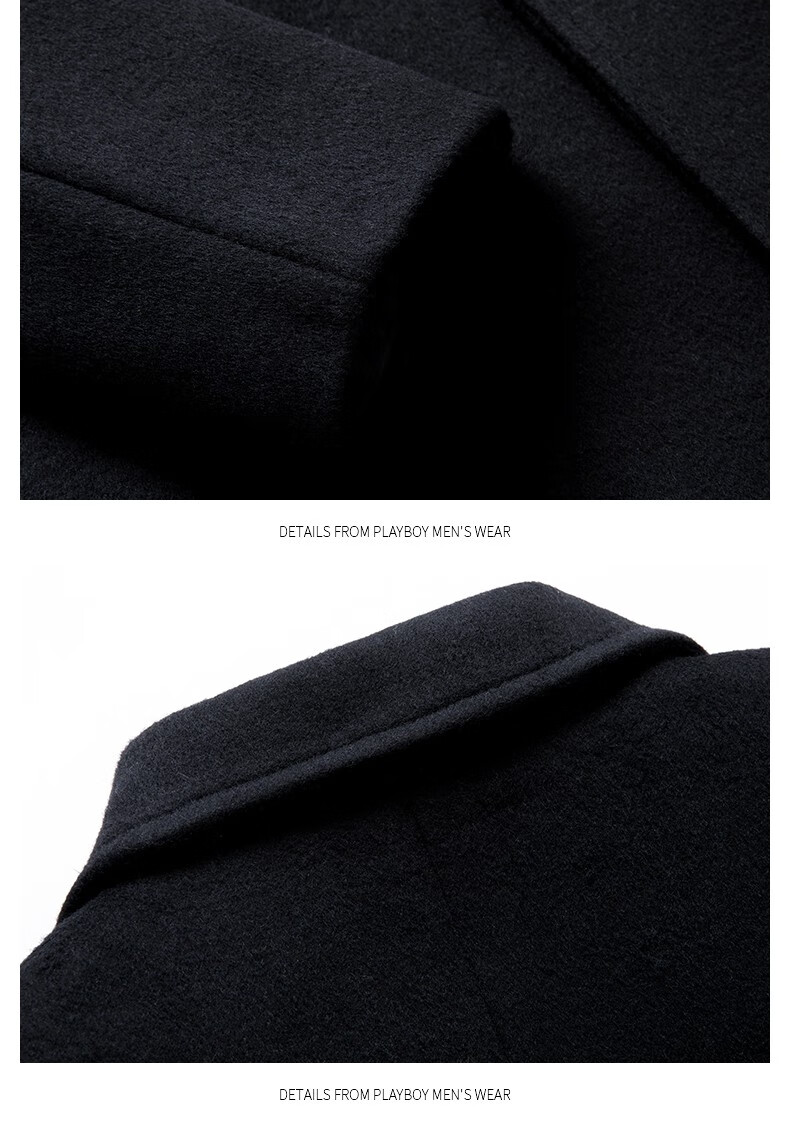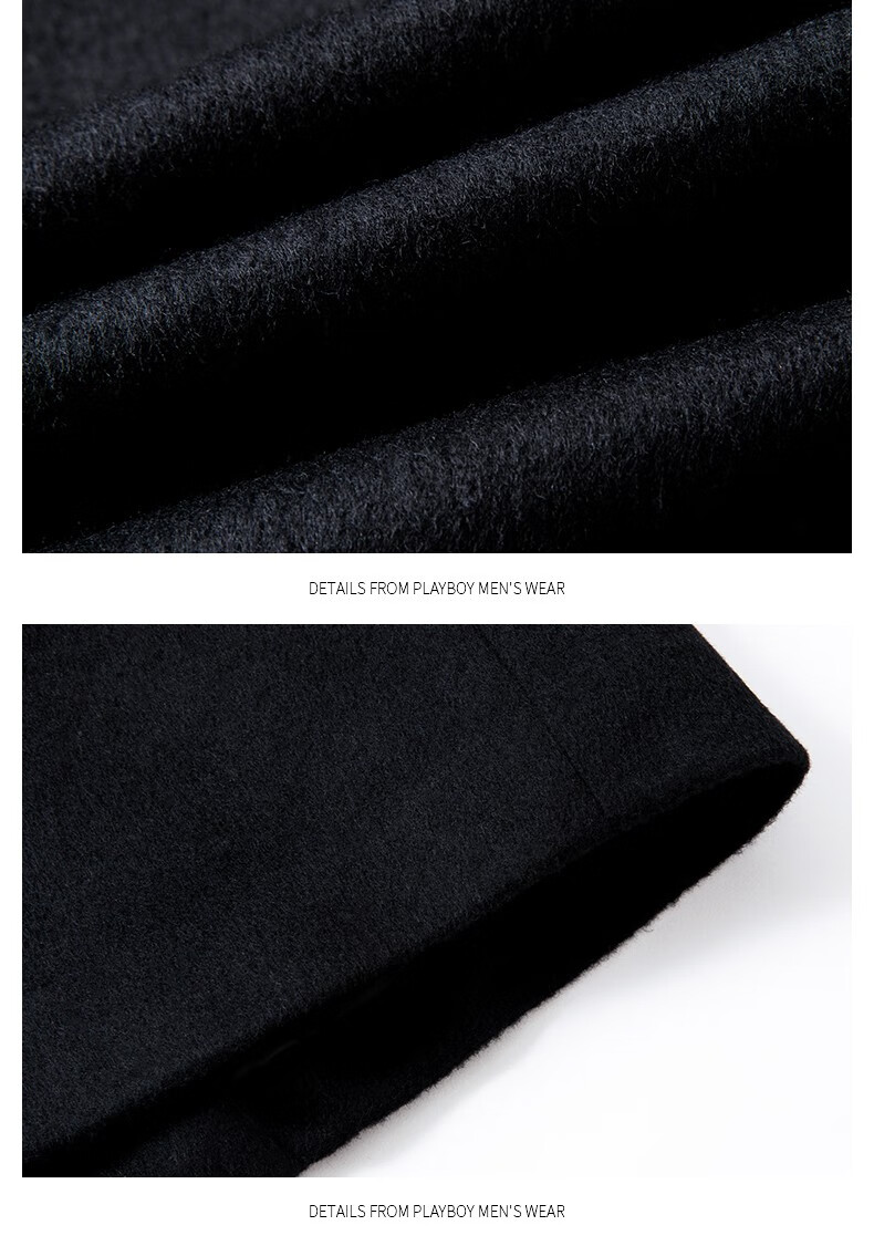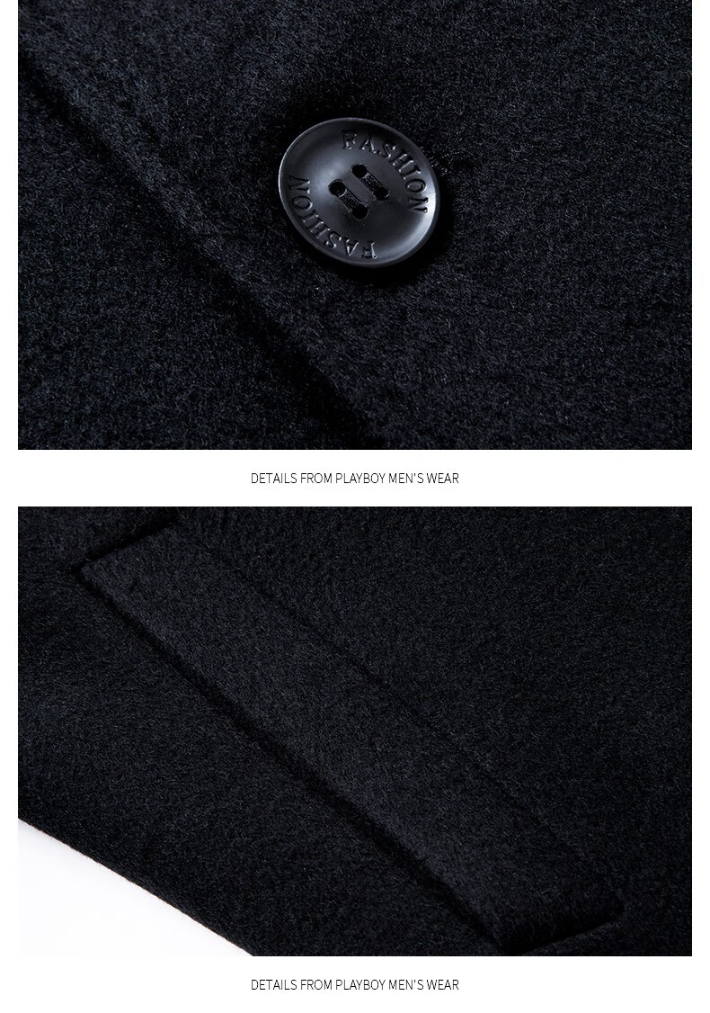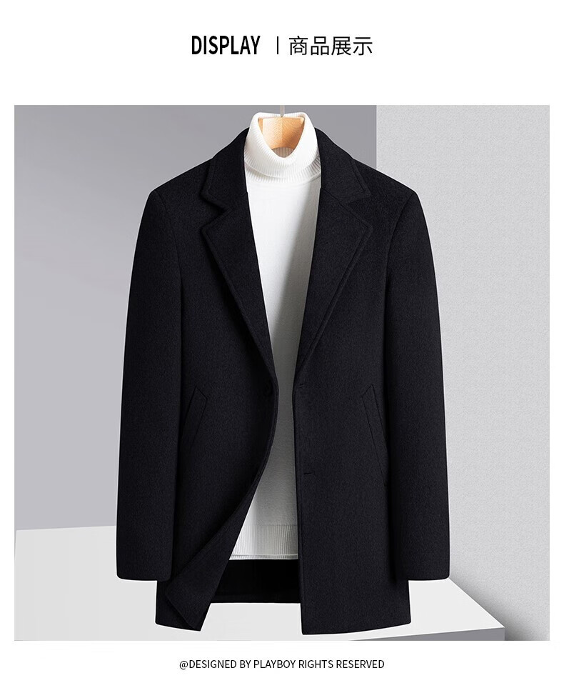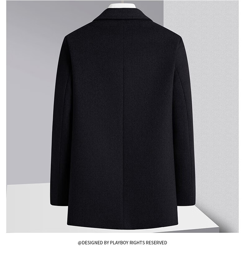 Playboy (PLAYBOY) Woolen Coat Men's Autumn and Winter New Thick Youth Short Plus Velvet Business Casual Woolen Woolen Woolen Coat for Men Black Cotton XL
