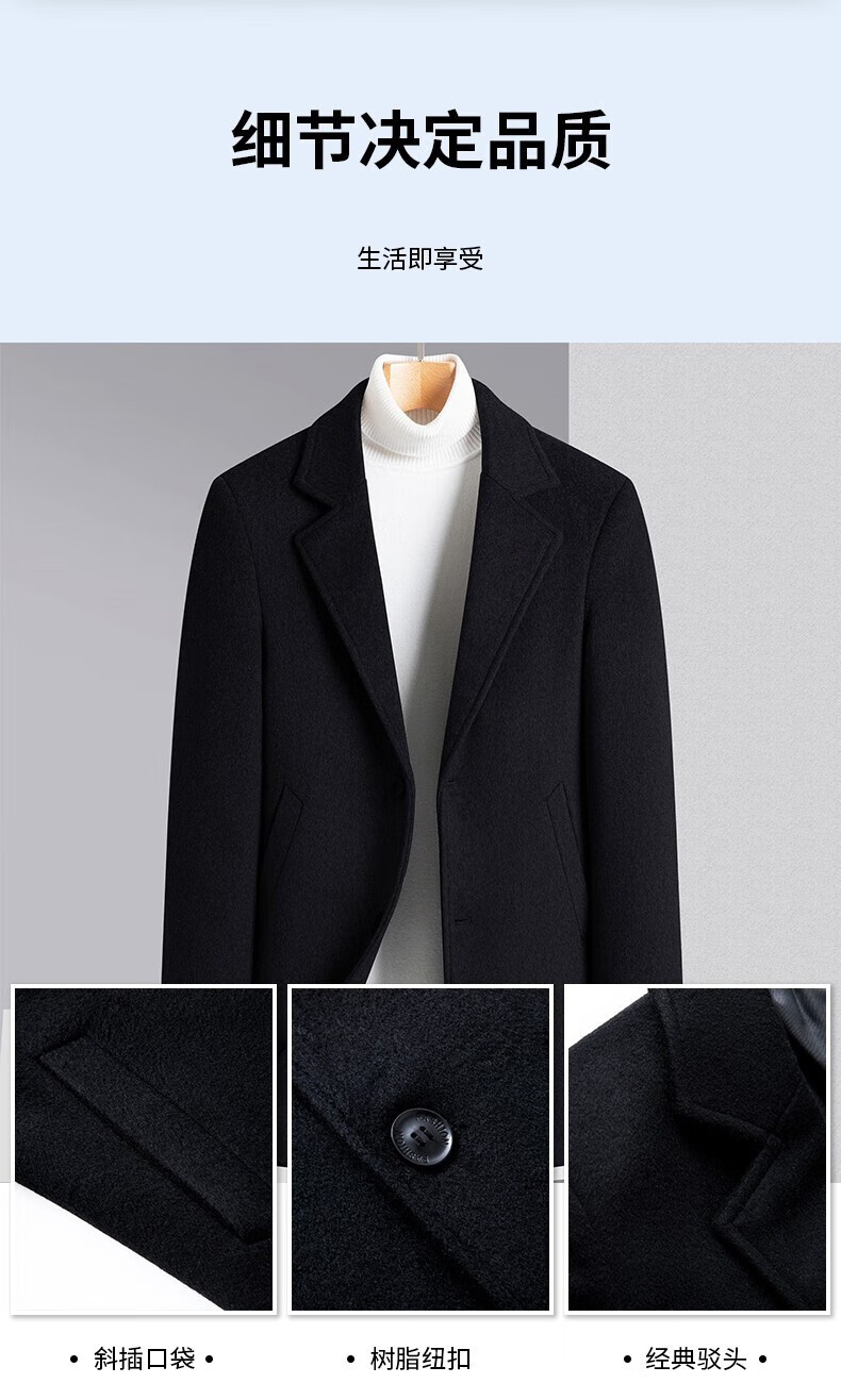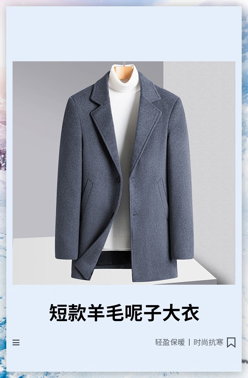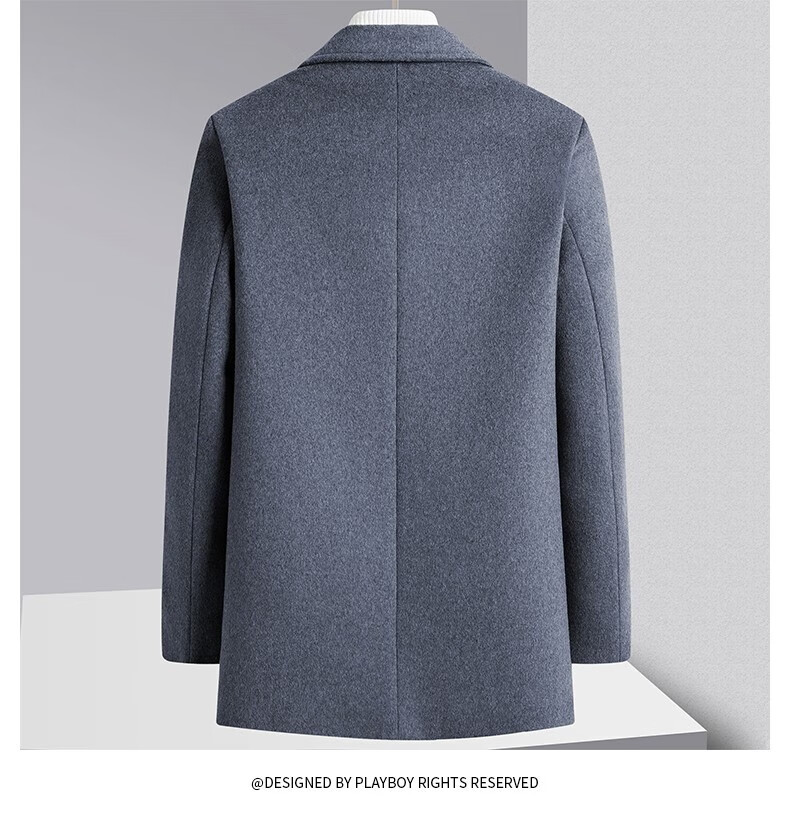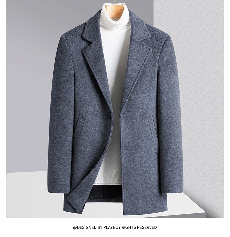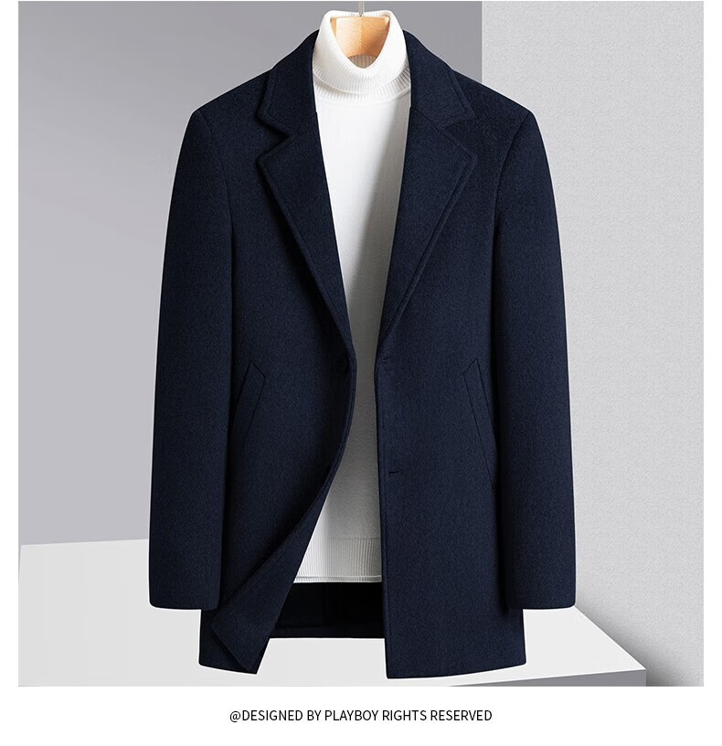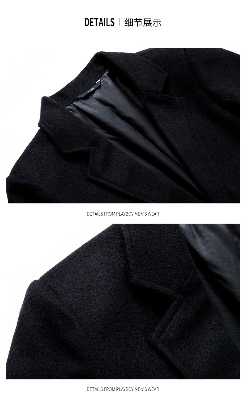 Playboy (PLAYBOY) Woolen Coat Men's Autumn and Winter New Thick Youth Short Plus Velvet Business Casual Woolen Woolen Woolen Coat for Men Black Cotton XL