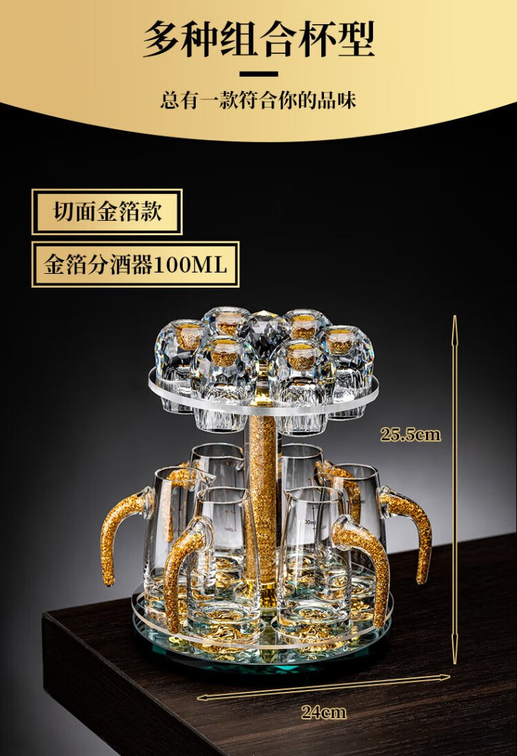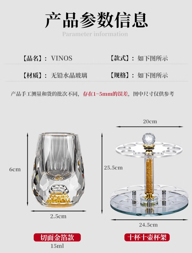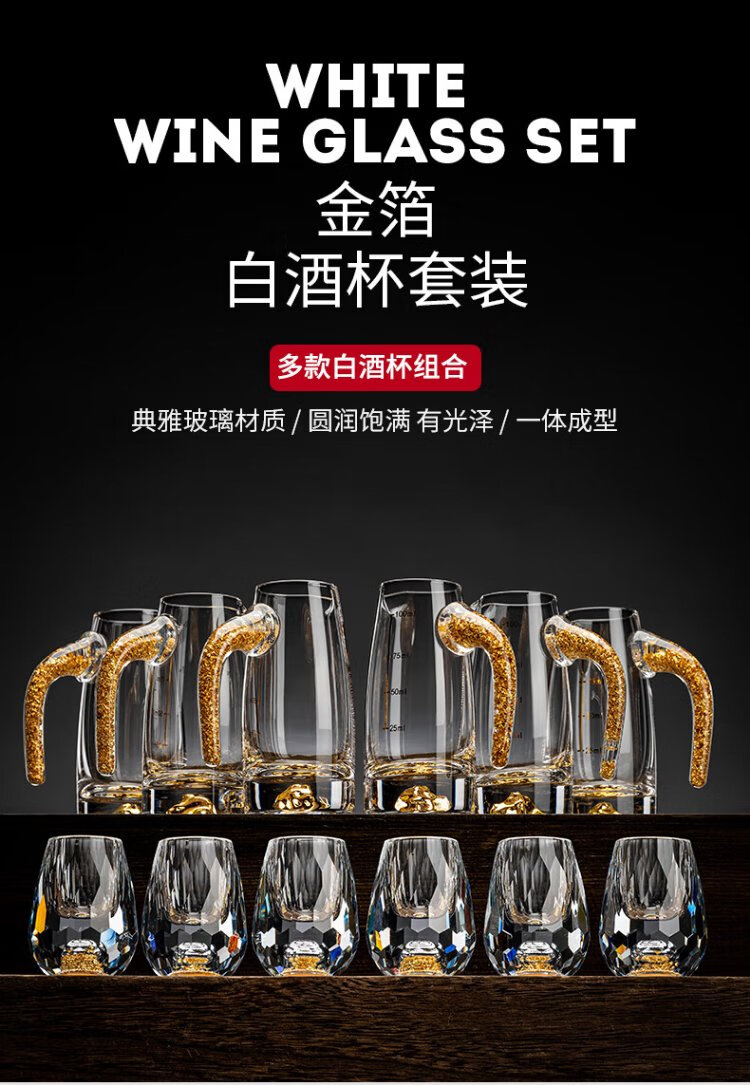 VINOS white wine glass set household small wine cup high-end crystal glass wine dispenser set 10 pots 10 cups wine glasses 10 pots 10 cups + gold foil cup holder gift box