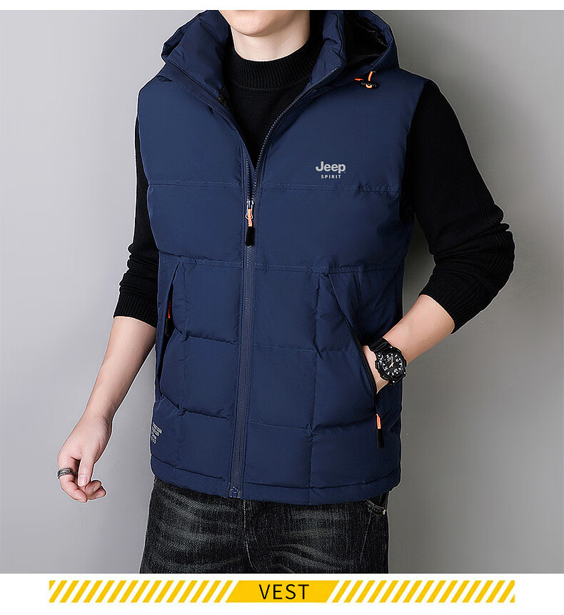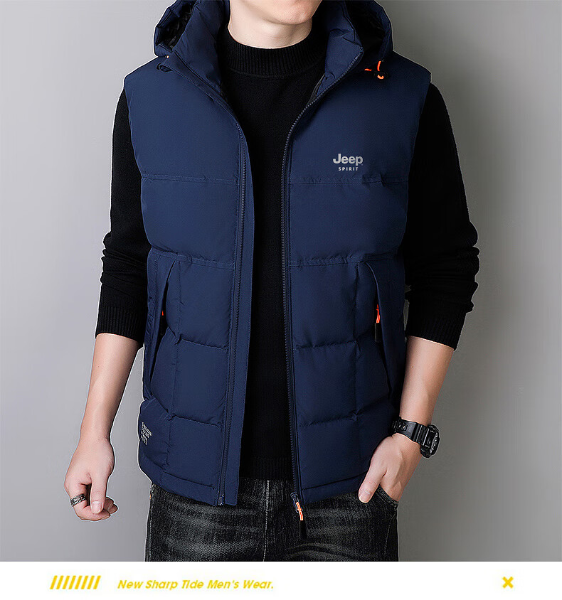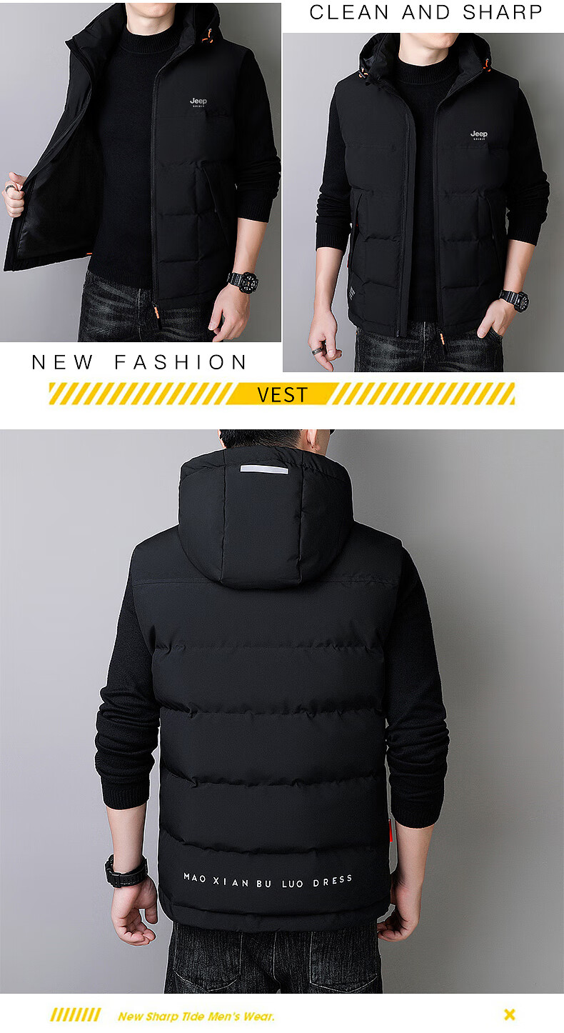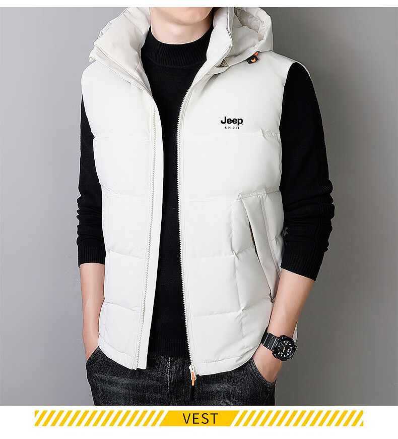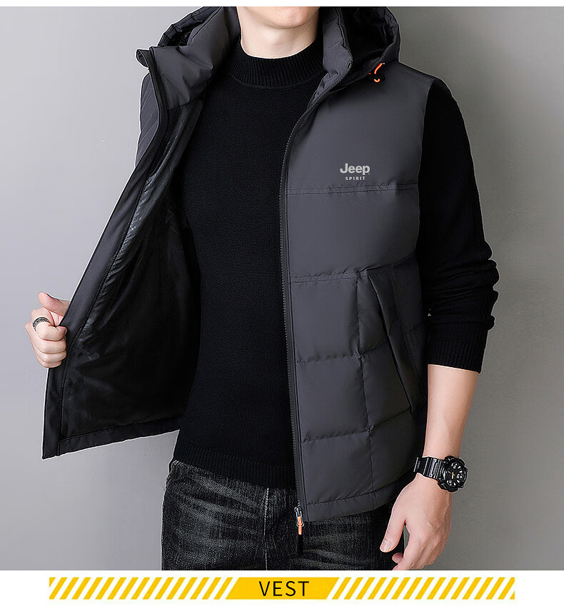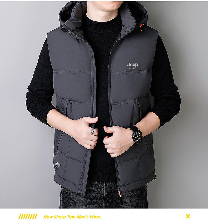 JEEP SPIRIT Down Jacket Vest Men's Autumn and Winter Warm Thickened Vest 2025 Outerwear Down Vest Men's Black XL (140-155Jin Jin is equal to 0.5kg)
