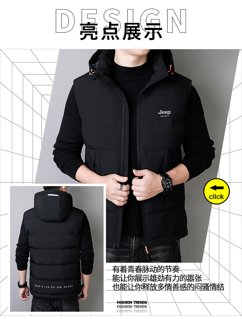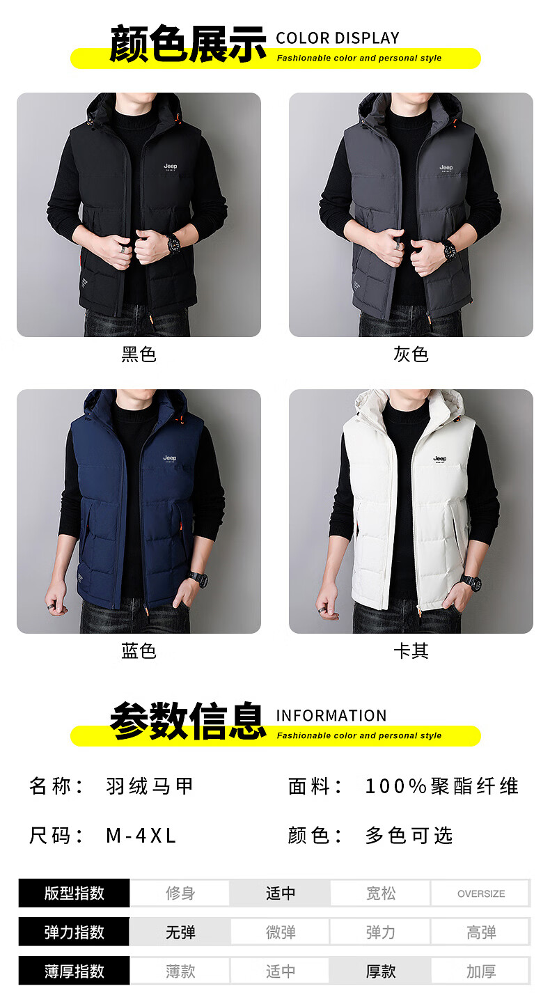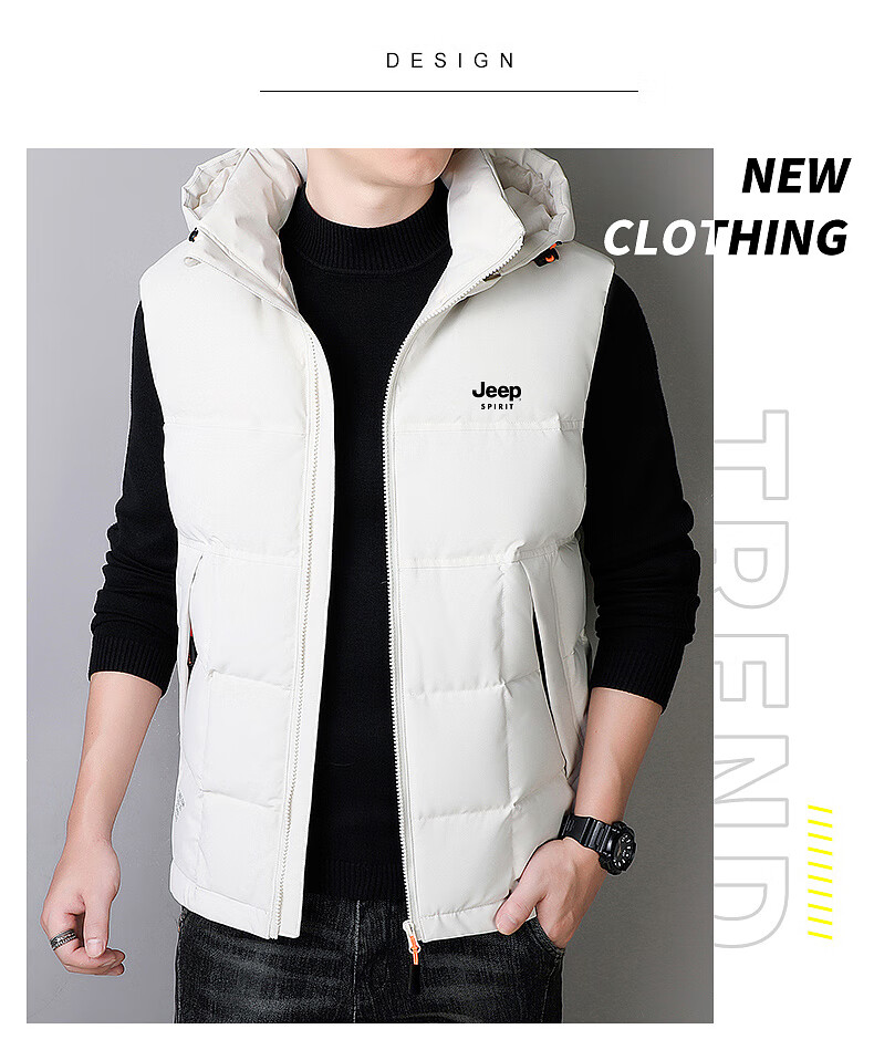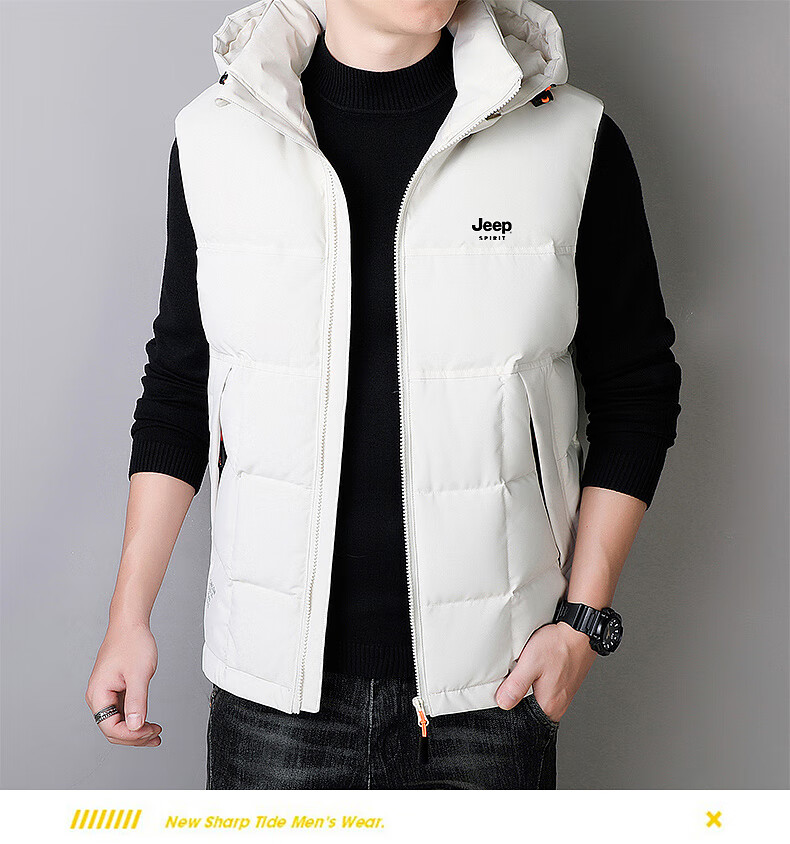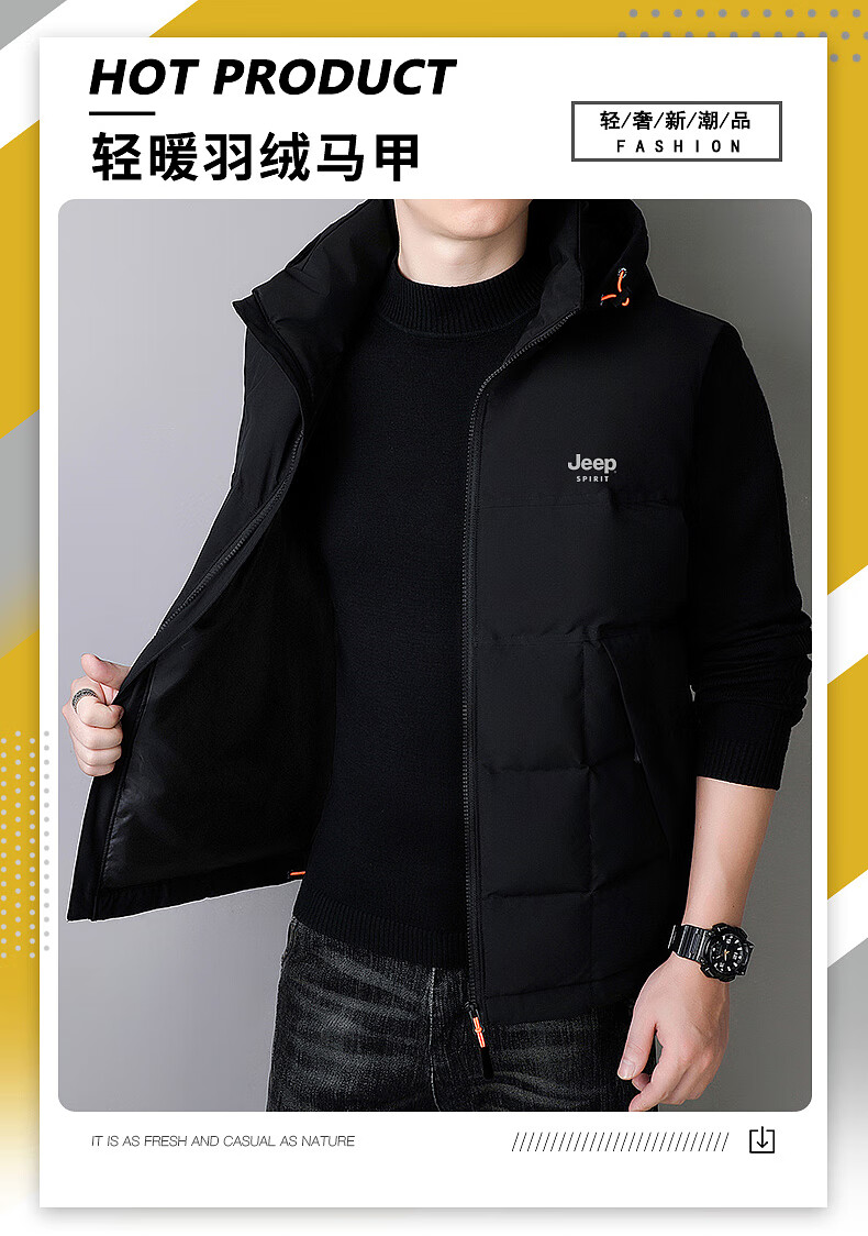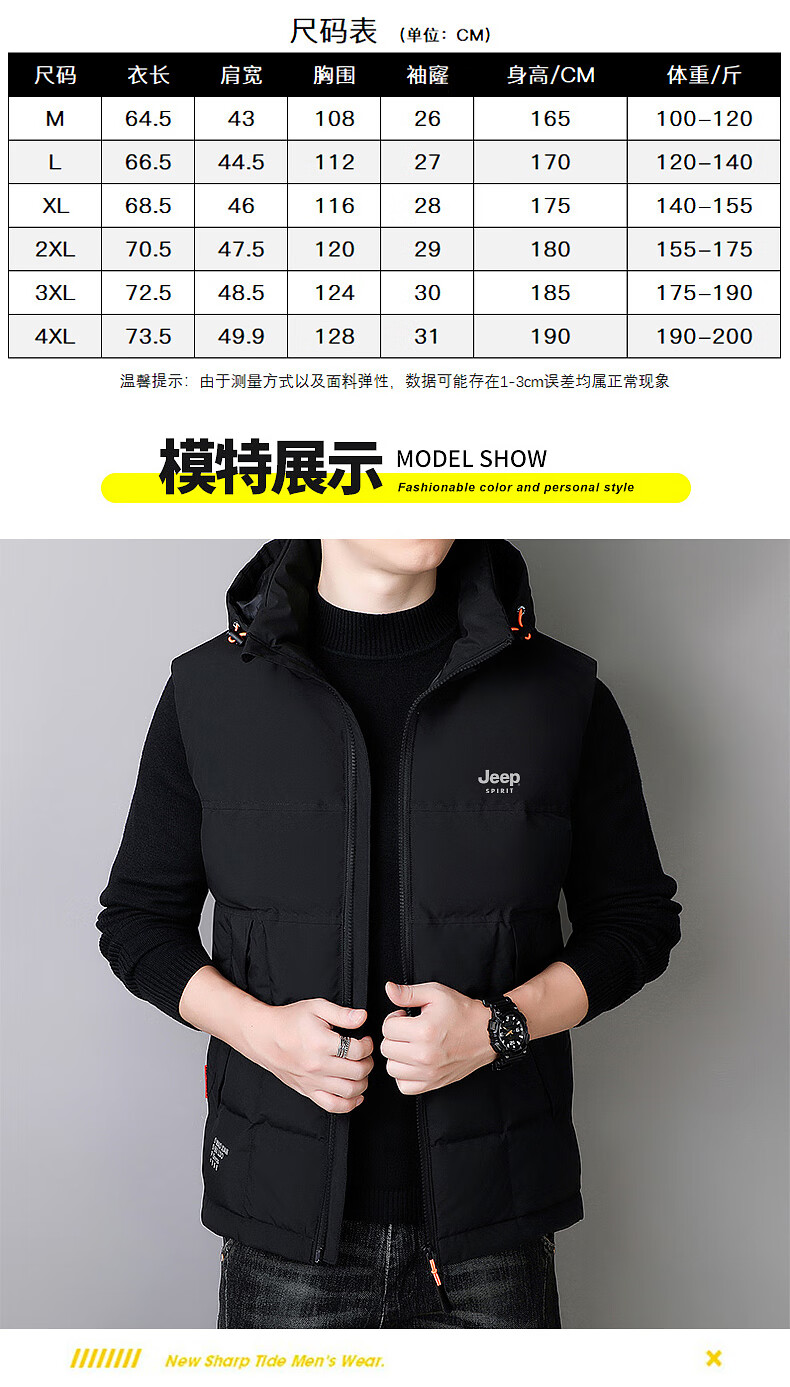 JEEP SPIRIT Down Jacket Vest Men's Autumn and Winter Warm Thickened Vest 2025 Outerwear Down Vest Men's Black XL (140-155Jin Jin is equal to 0.5kg)