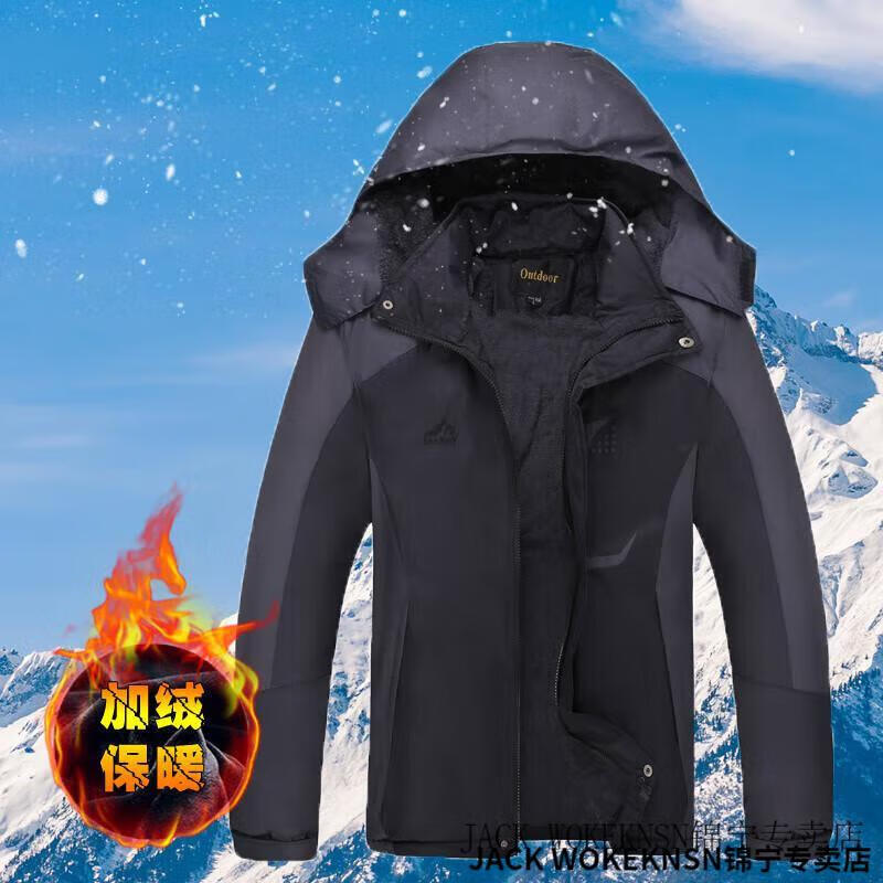 JACK WOKEKNSN Wolf Claw Cloud Jacket Cotton Jacket Men's Velvet Thickened Outdoor Work Jacket Windproof Waterproof Wear-Resistant Large Size Cotton Jacket (Thin Section) Men's Black XXXL