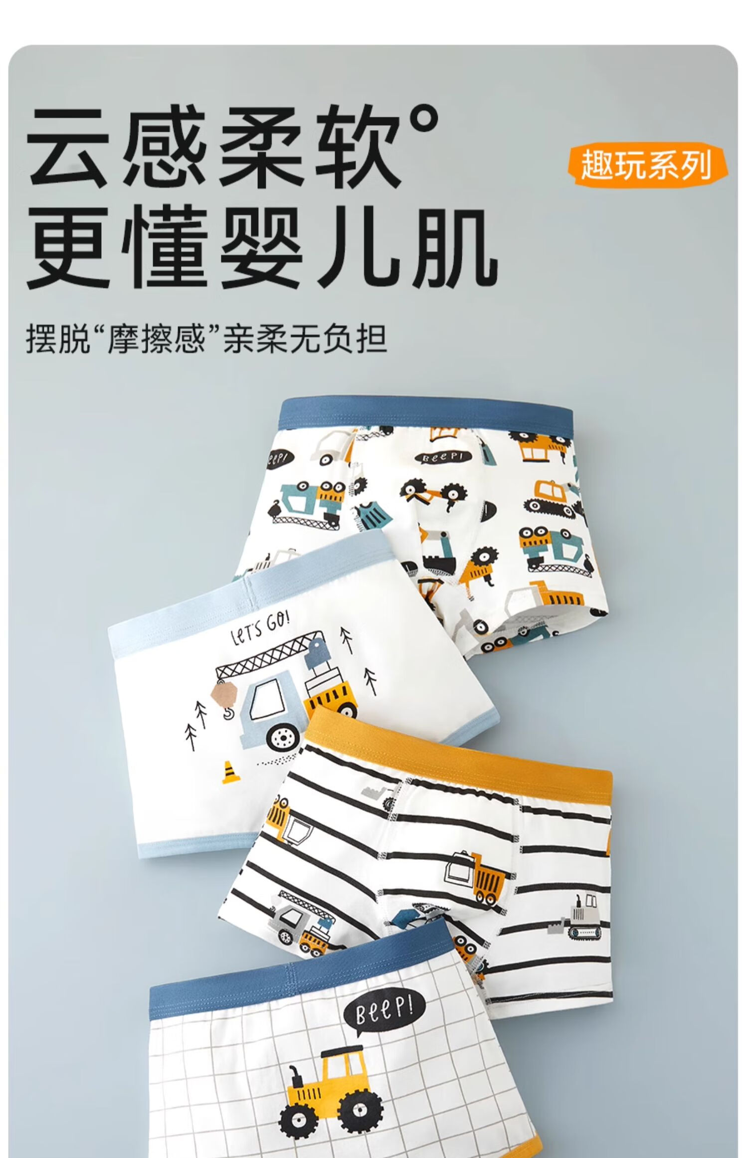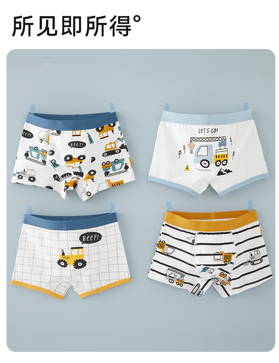 Mianqi Xiong boys' underwear children's pure cotton boxer shorts baby middle and large boy boy's boxer briefs 95% cotton 4-pack Digger series - combed cotton boneless style - 4 pieces 110 - M size weight 25-35Jin Jin is equal to 0.5 kg