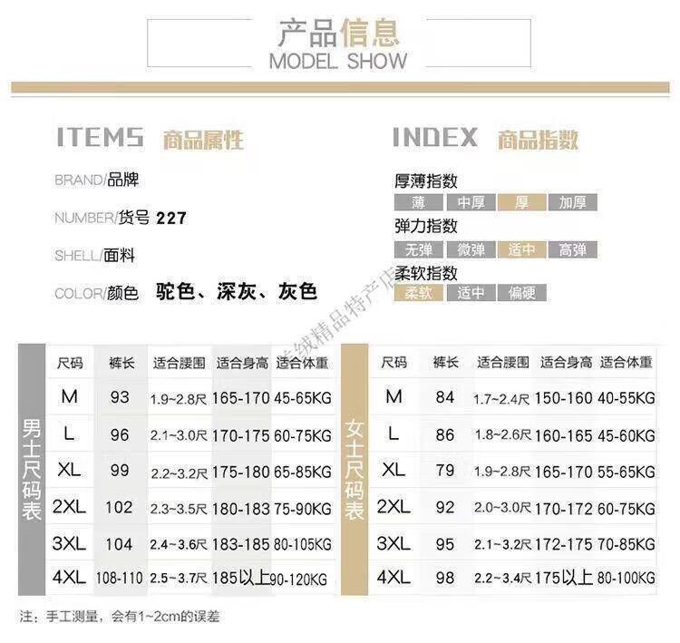 Ordo Cashmere Pants Plus Velvet Thickened Men's and Women's Wool Pants Warm Pants Leggings Winter High-Waist Wool Pants Men's Medium Thick Wool Pants - Gray XL 130-150Jin Jin equals 0.5 kg