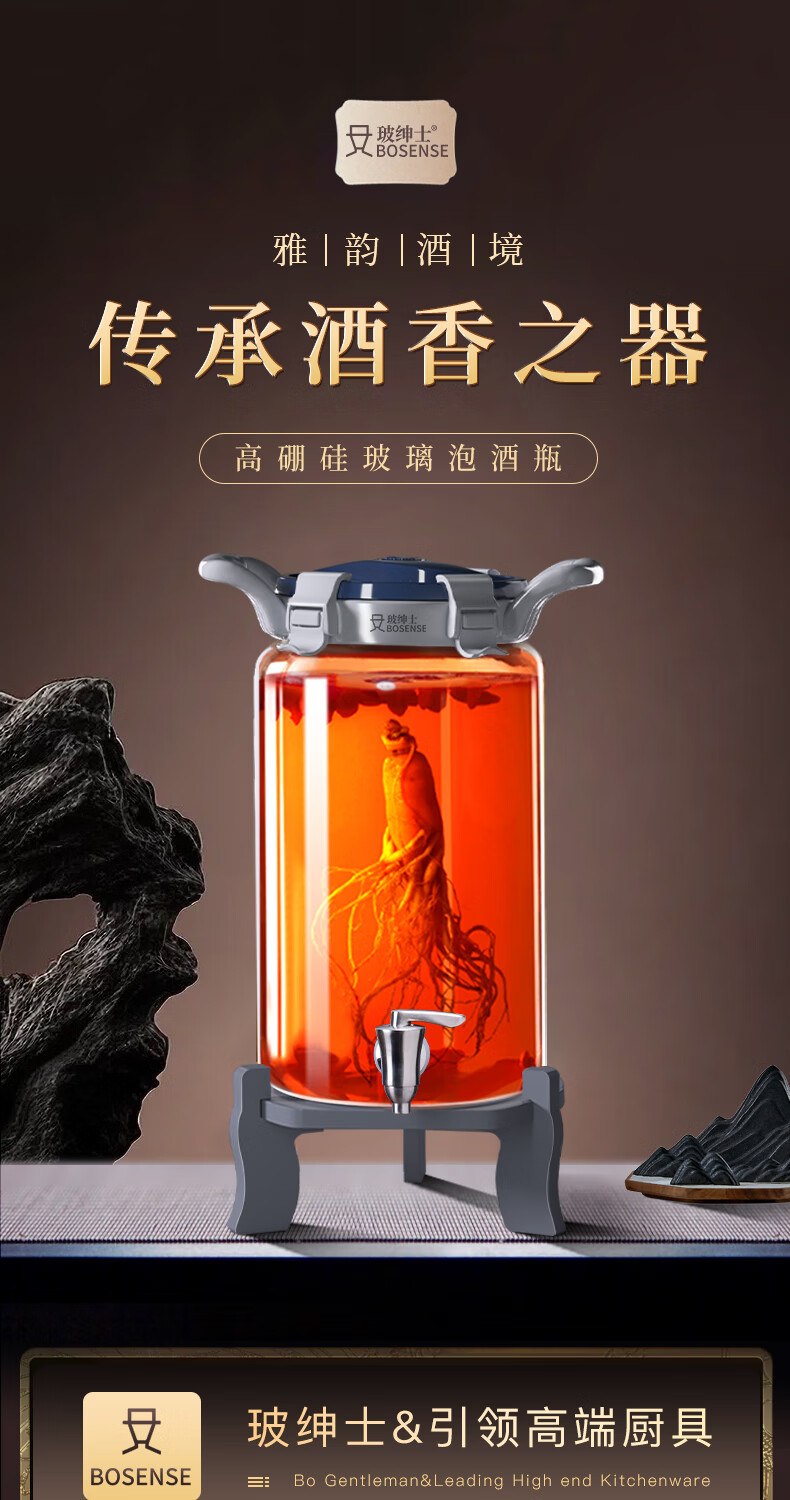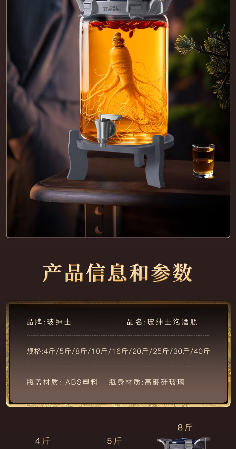 Glass gentleman bubble wine container special bottle for bubble wine glass bottle high borosilicate bubble wine bottle glass wine jar large capacity bubble wine bottle 10Jin Jin is equal to 0.5 kg (5 liters) type B + upgraded ceramic core faucet + base