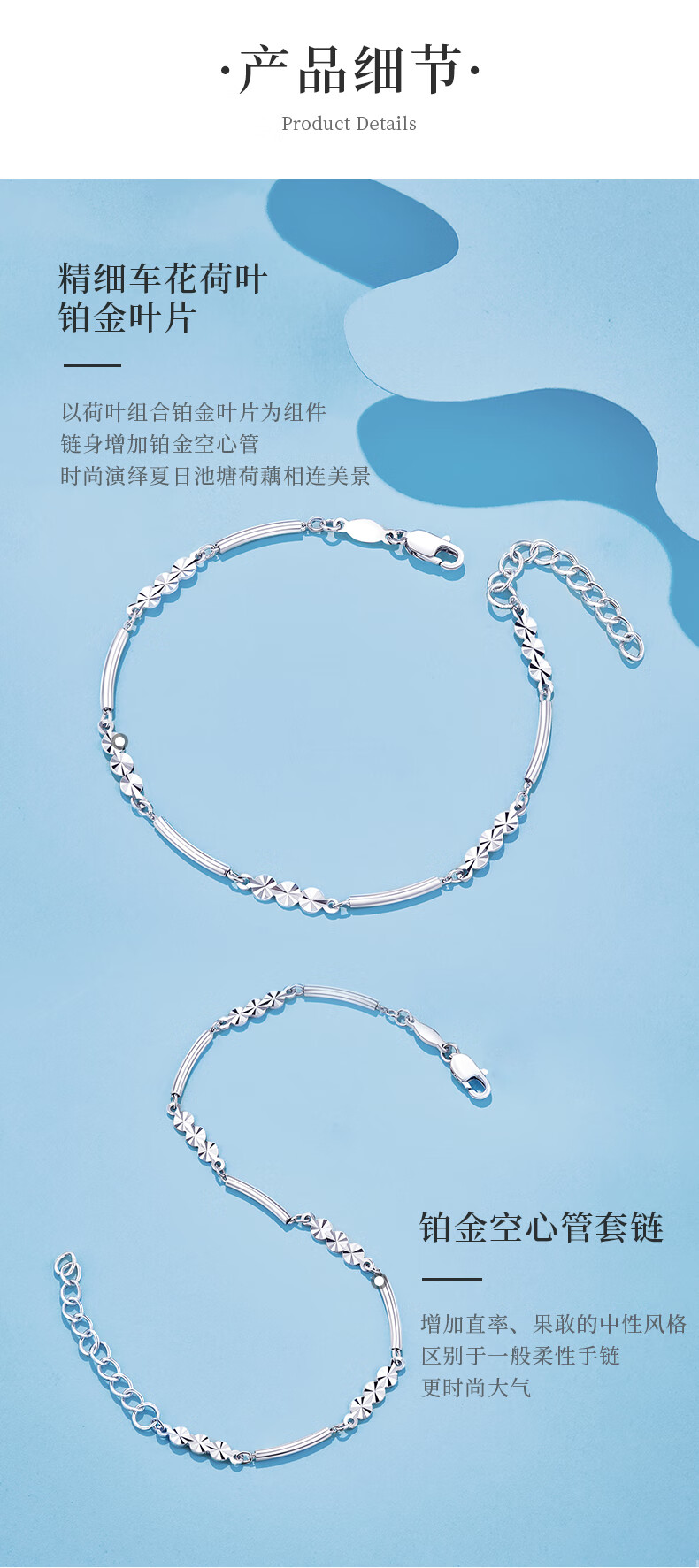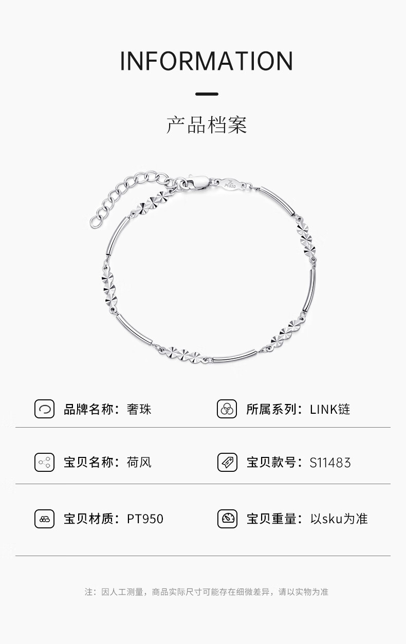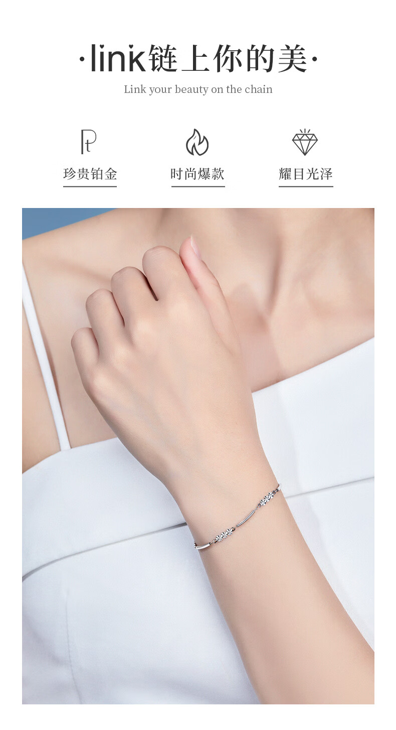 Luxury beads PT950 platinum bracelet for women summer platinum bestie bracelet for girls 2023 new ins niche design 19cm-4.09g