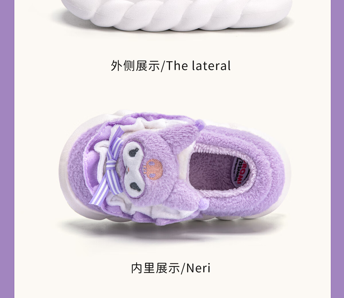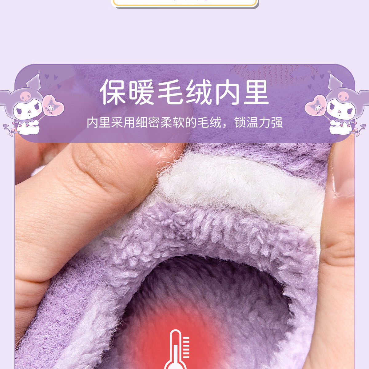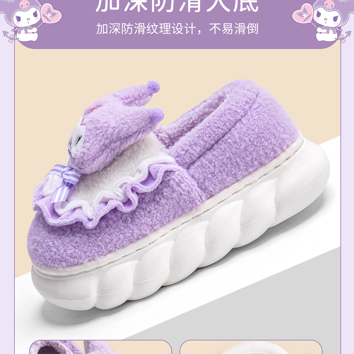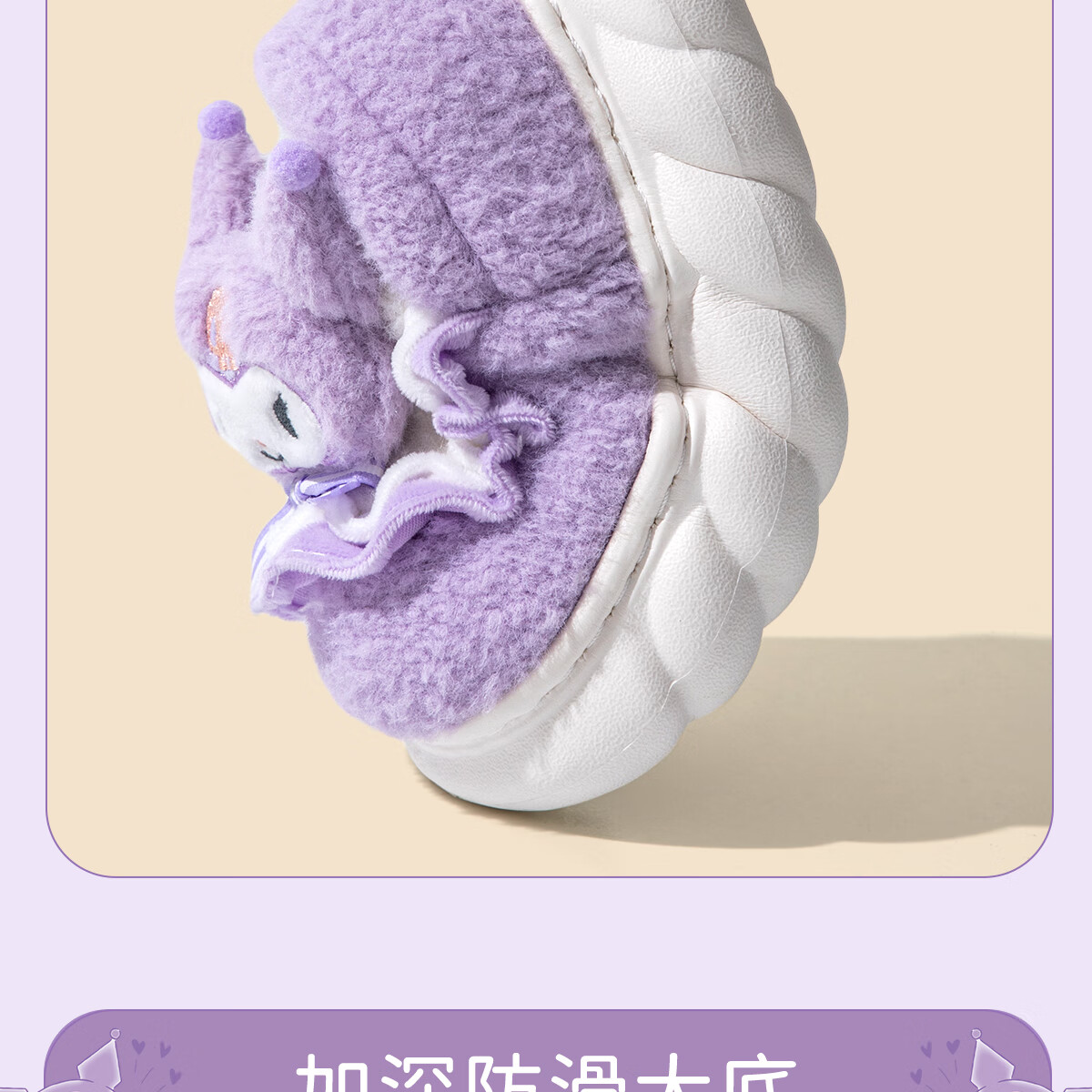Lidani (TZLDN) Kuromi children's cotton slippers for girls 6-12 years old winter little girl baby parent-child bag heel cotton shoes for women Kuromi Sanrio co-branded bag heel 36-37 suitable for sizes 35-36