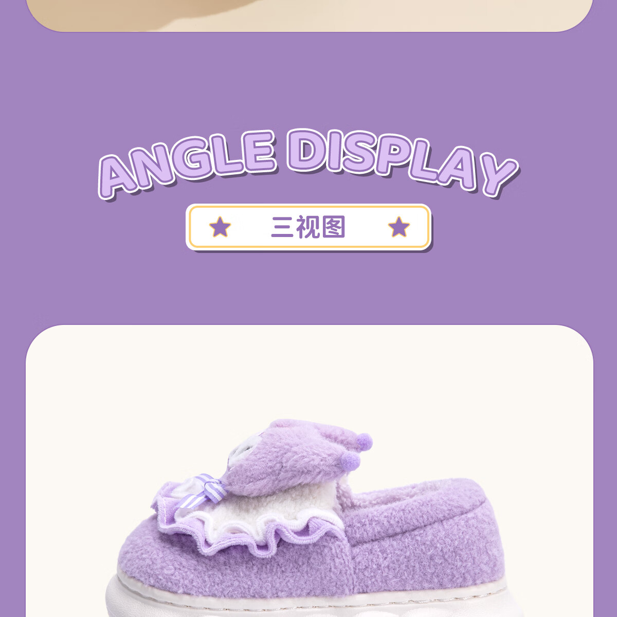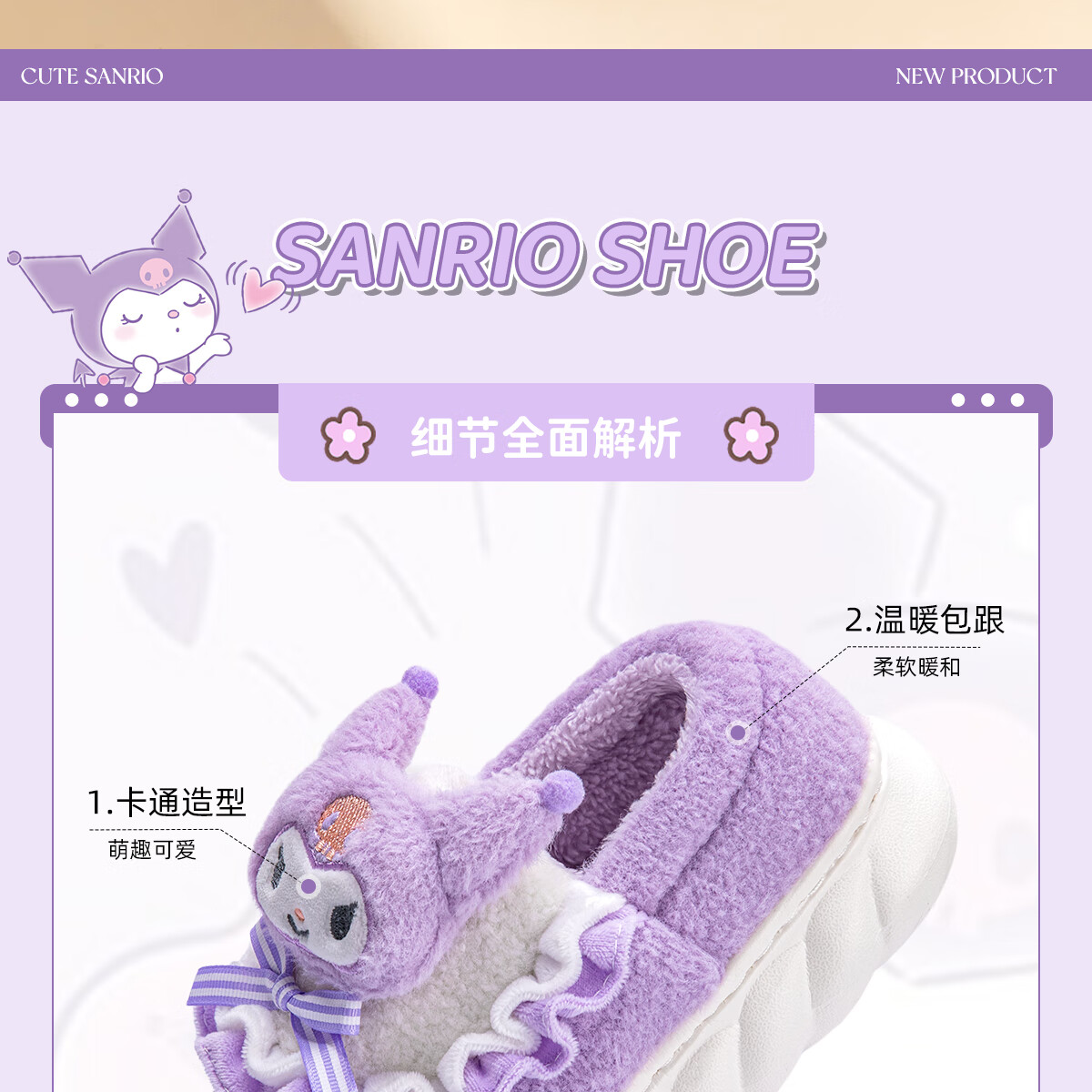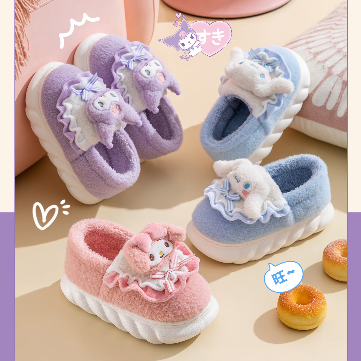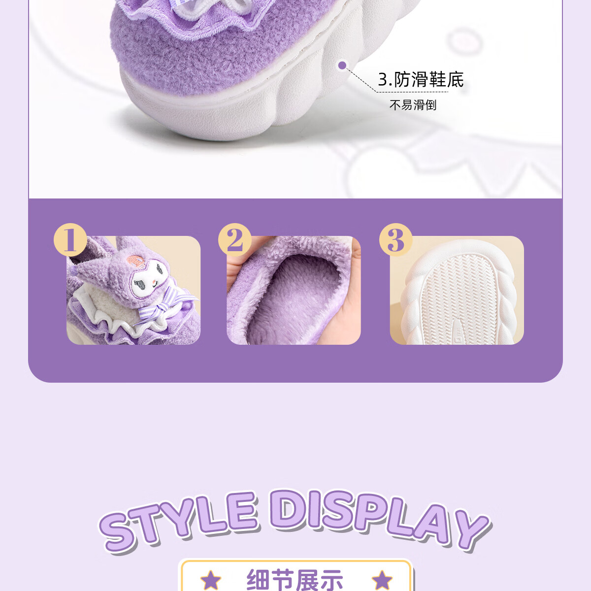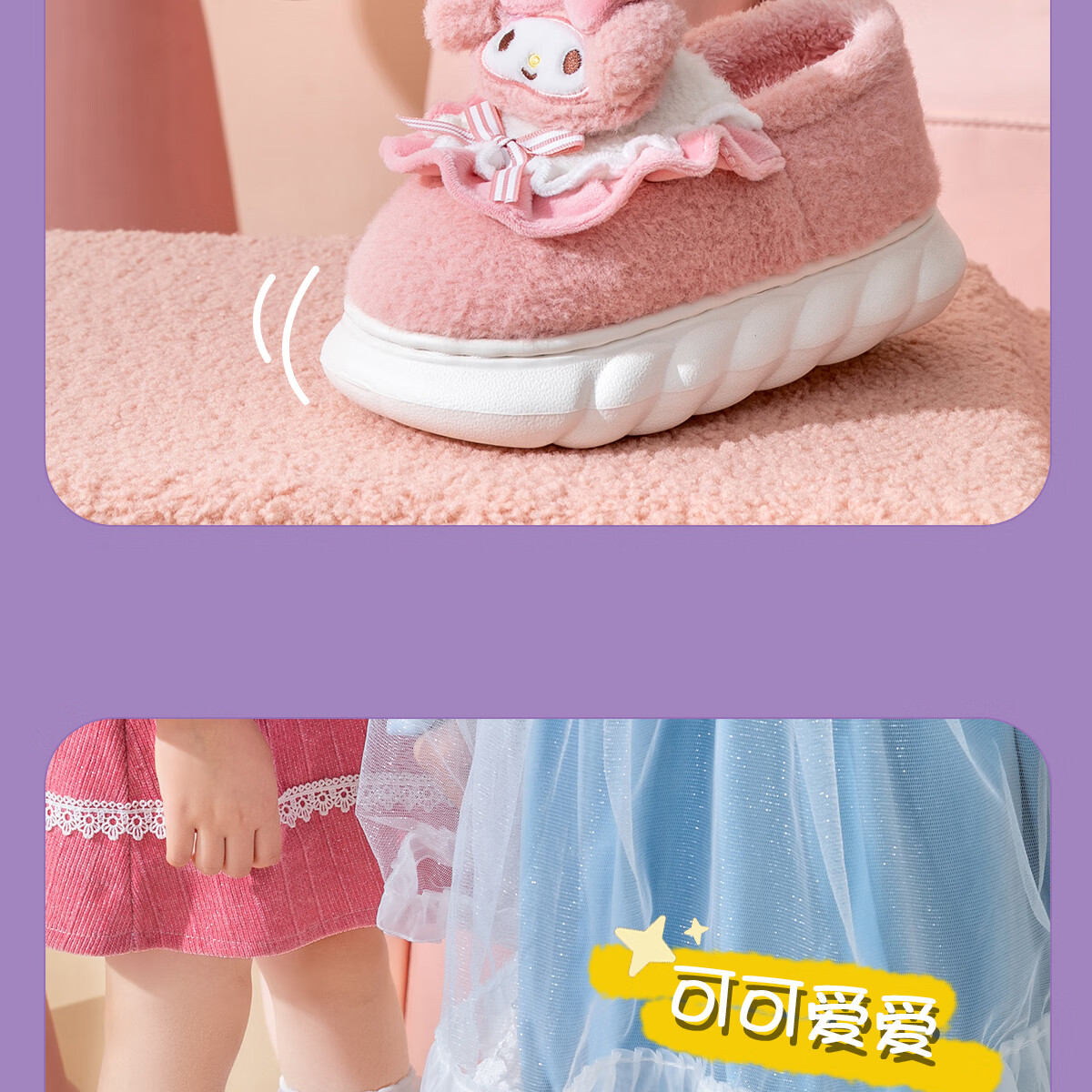 Lidani (TZLDN) Kuromi children's cotton slippers for girls 6-12 years old winter little girl baby parent-child bag heel cotton shoes for women Kuromi Sanrio co-branded bag heel 36-37 suitable for sizes 35-36