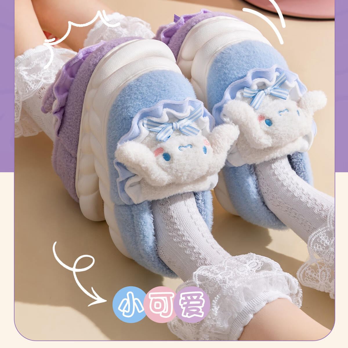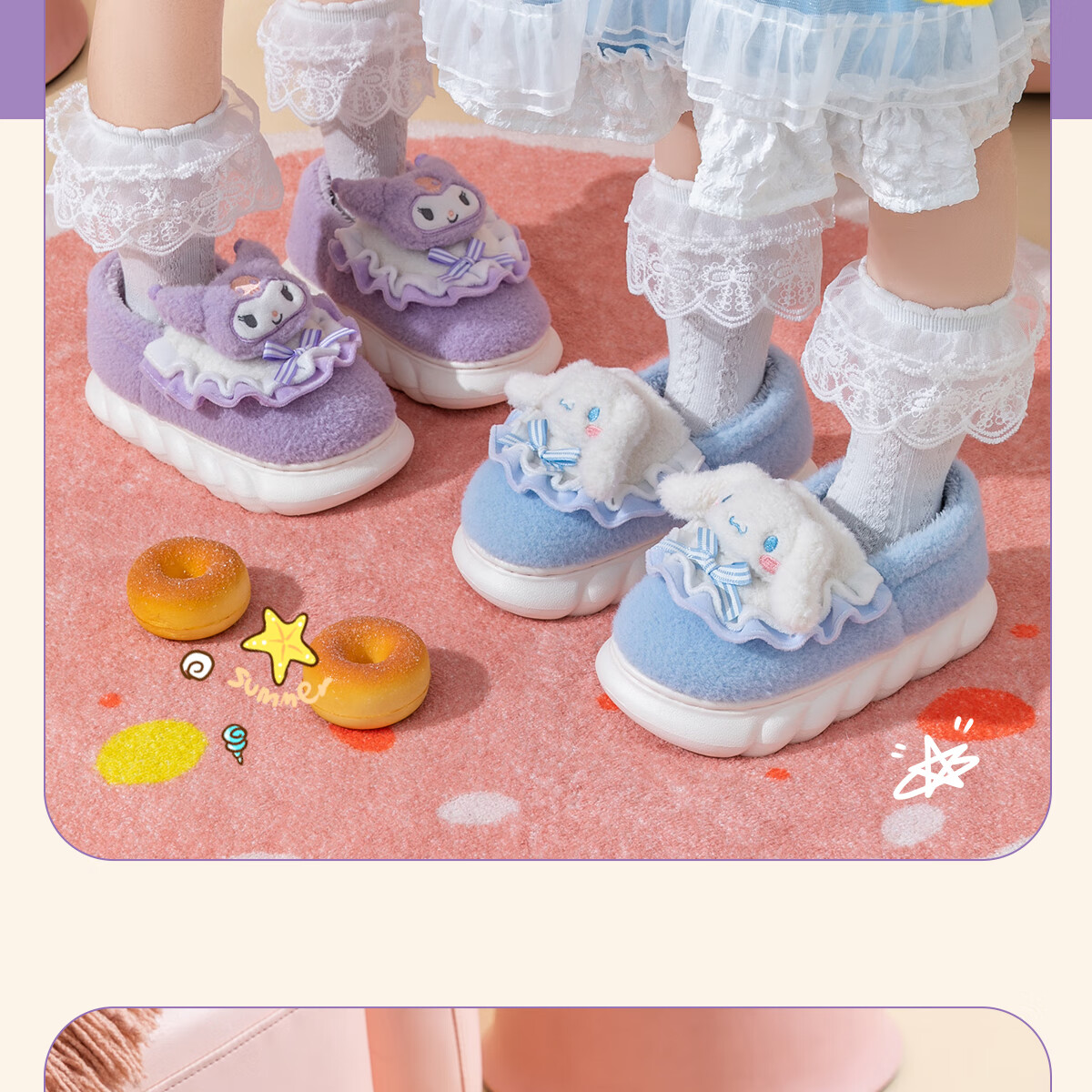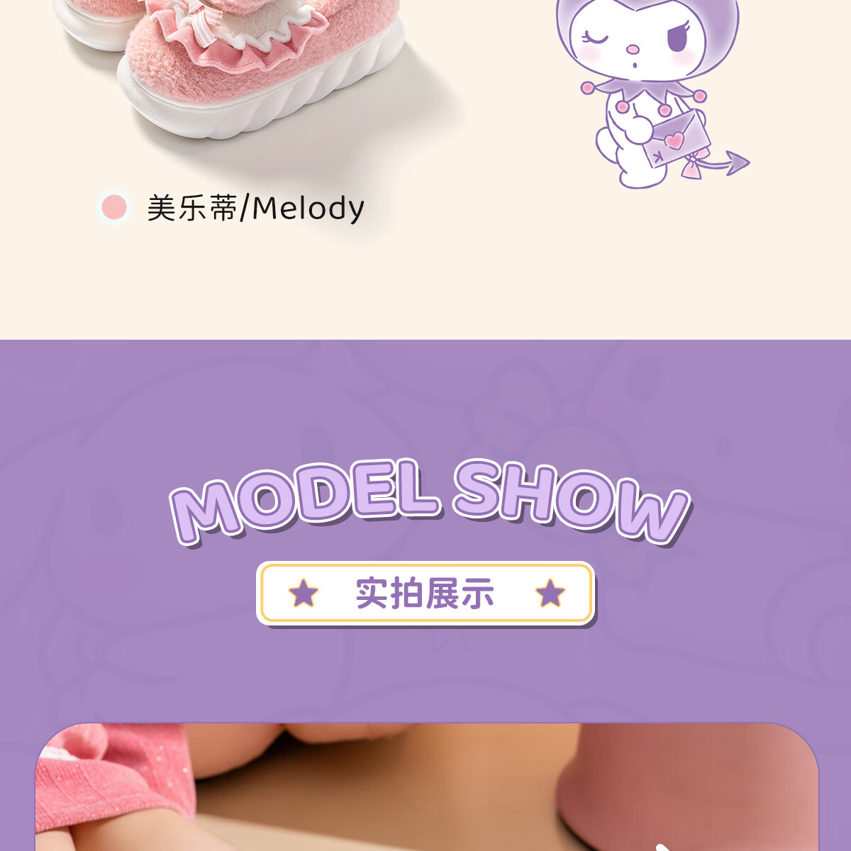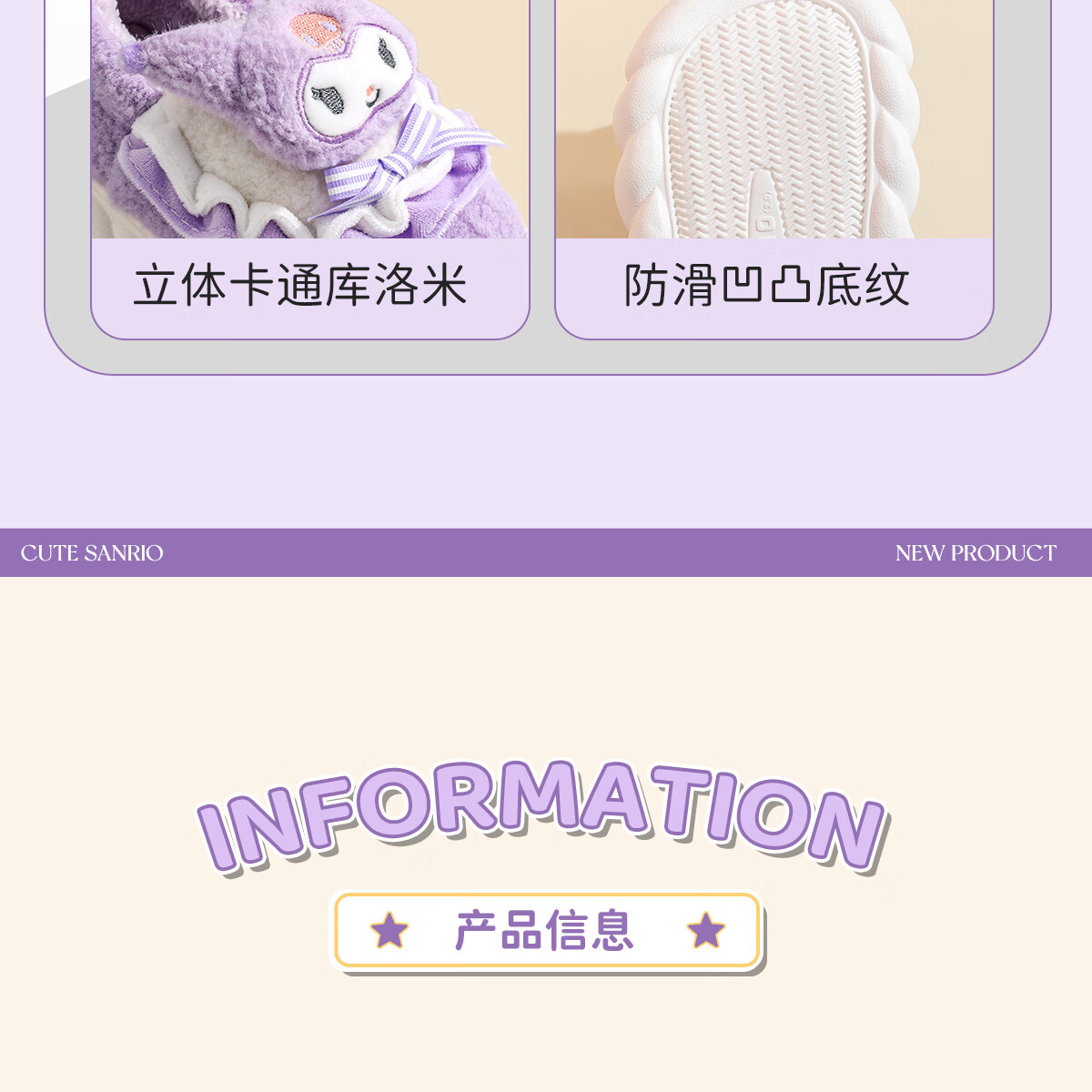 Lidani (TZLDN) Kuromi children's cotton slippers for girls 6-12 years old winter little girl baby parent-child bag heel cotton shoes for women Kuromi Sanrio co-branded bag heel 36-37 suitable for sizes 35-36