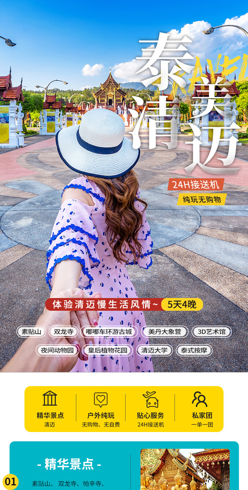 4 nights, 5 and a half days self-guided trip to Chiang Mai, Thailand, one single group, just fun without shopping, 2-3 people VIP single group (single price)