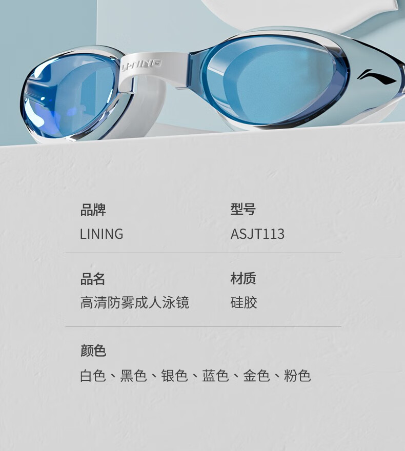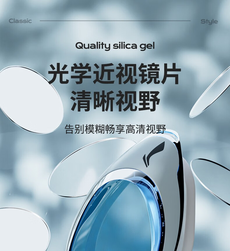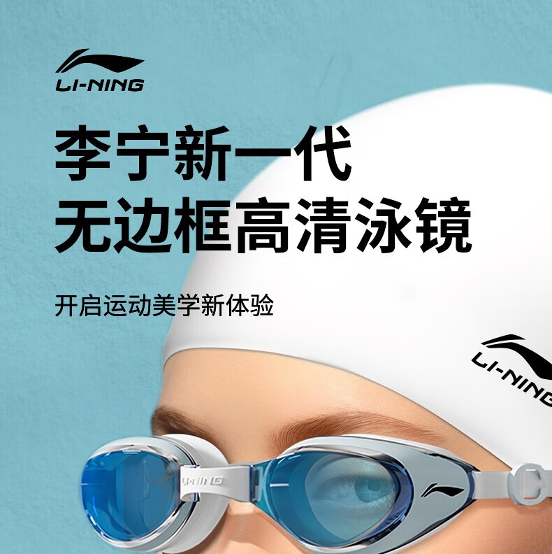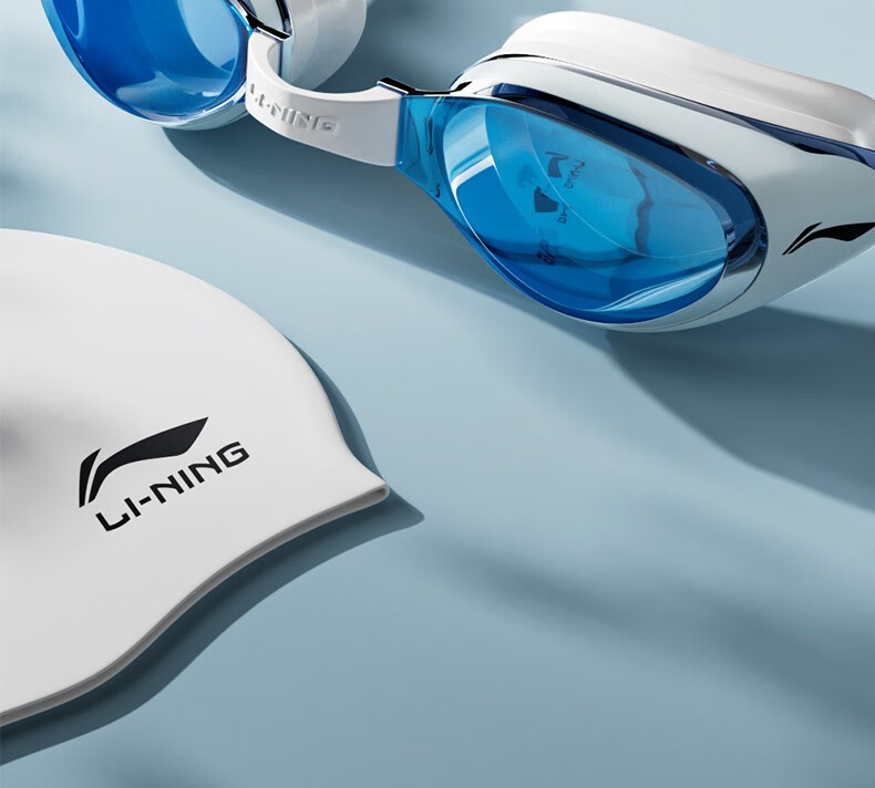 Li Ning electroplated swimming goggles high definition anti-fog waterproof myopia men's and women's adult swimming goggles swimming cap set professional equipment electroplating first snow white optional degree myopia 550 degrees
