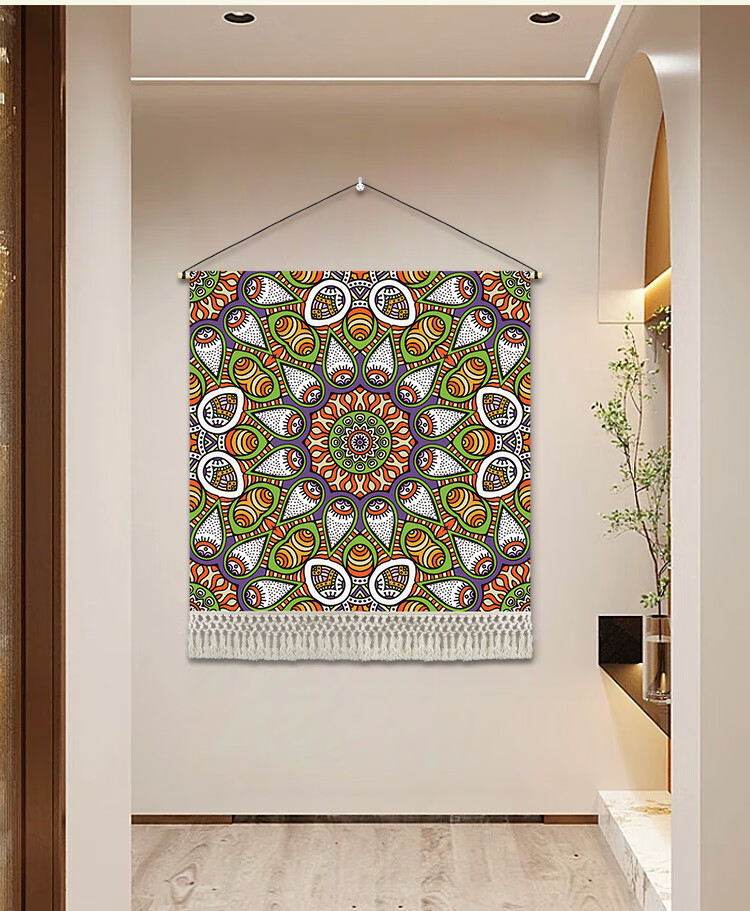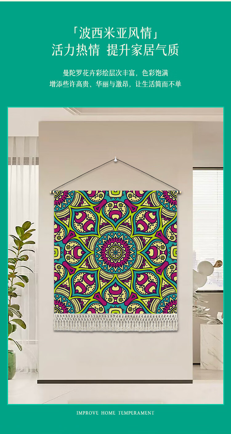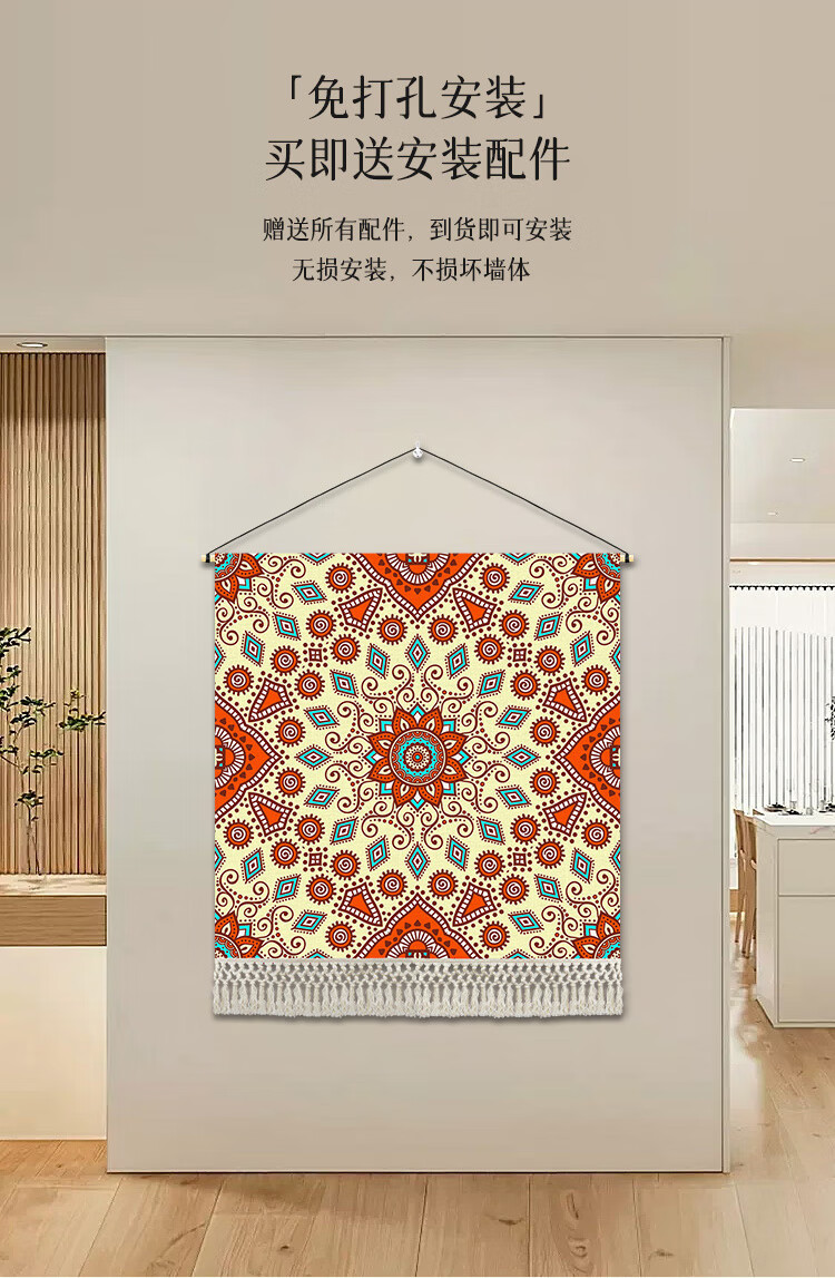 Geshang Nordic Retro Ethnic Style Bedside Tapestry Bohemian Inn Large Size Hanging Entrance Tapestry B&B Decoration G200-Mandala D-01 Width 80cm-Height 80cm Comes with Installation Package