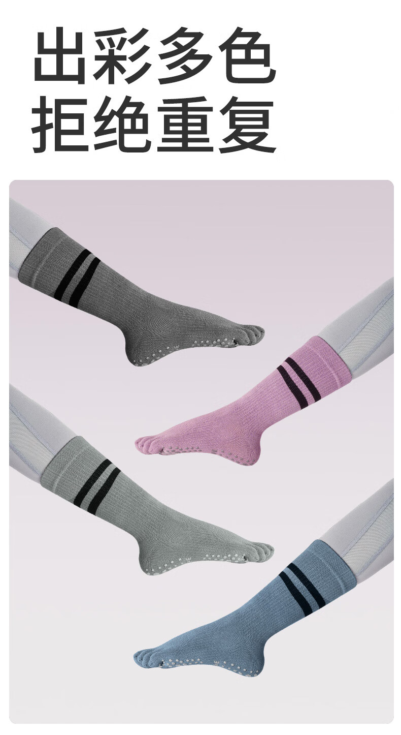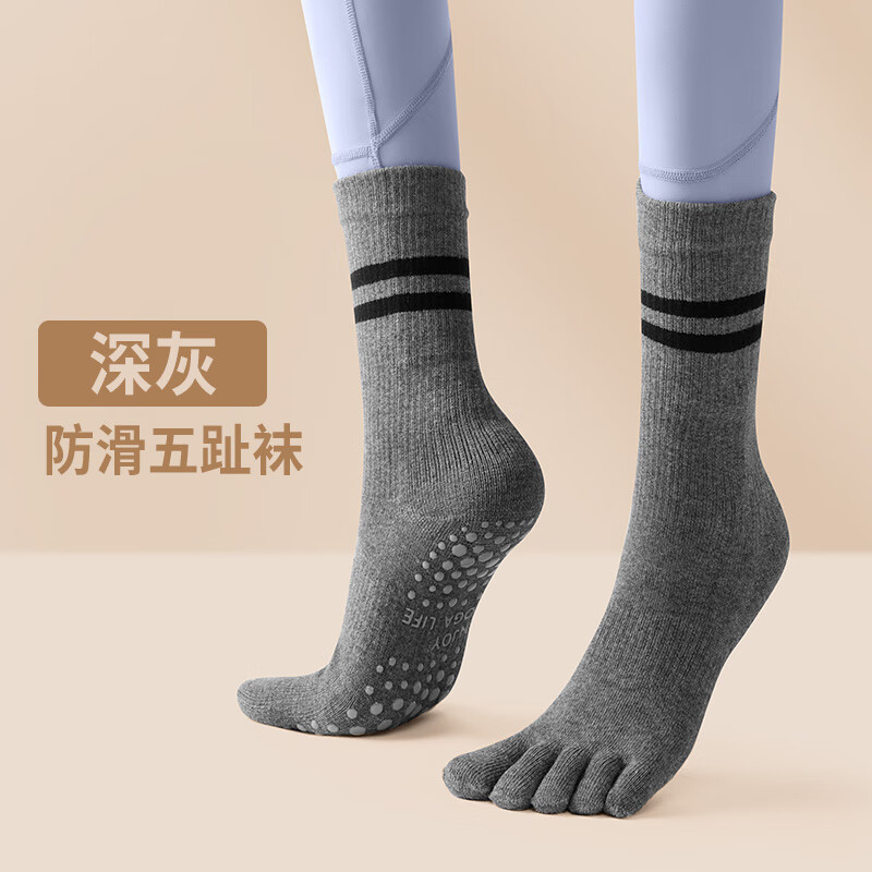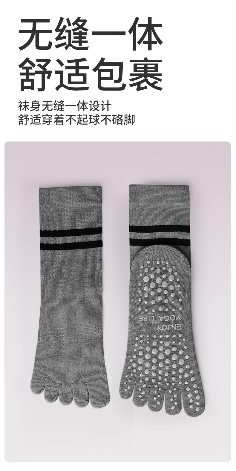 Huodiniao Yoga Socks Pilates Long Socks Non-Slip Indoor Floor Socks Adult Mid-Tube Toe Socks Fitness Sports Dance Socks Gray + Black 2 Pairs