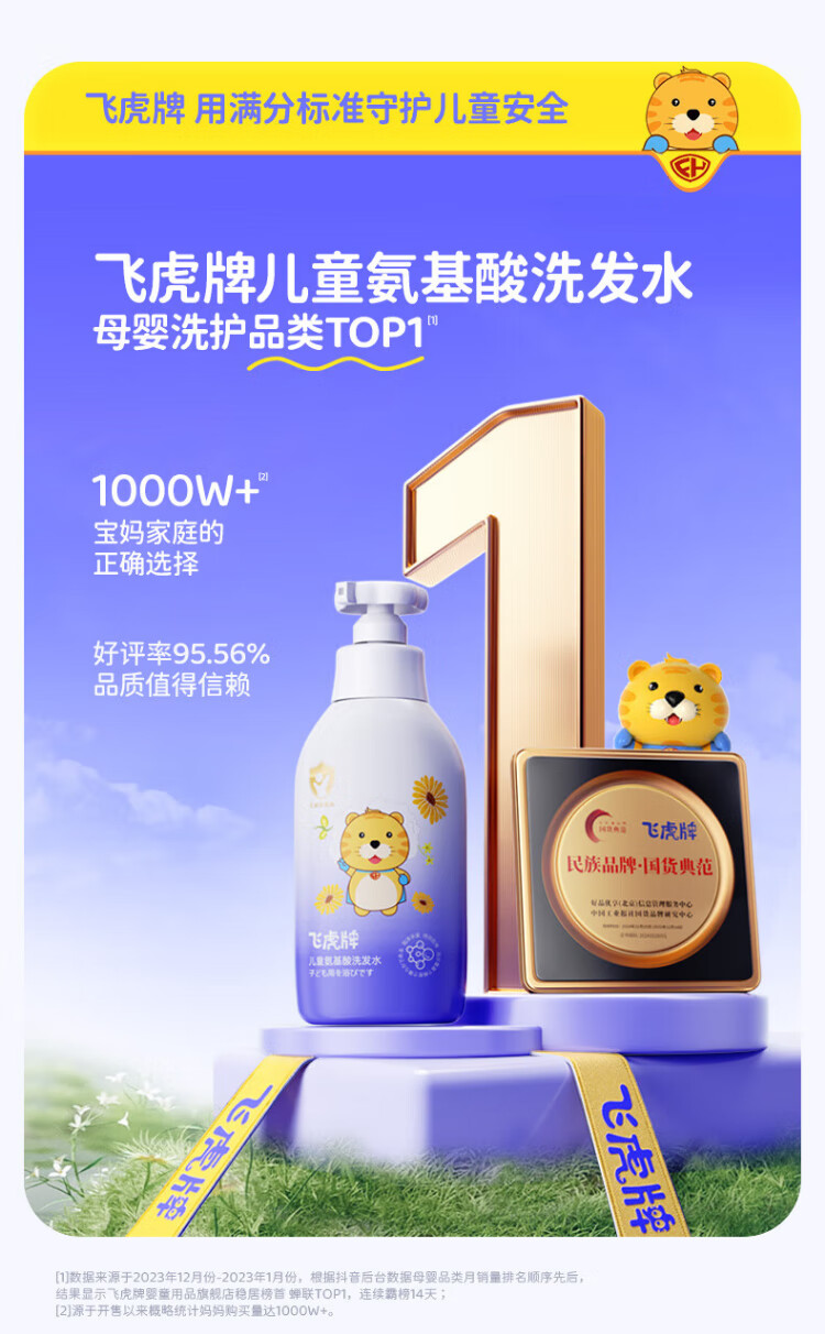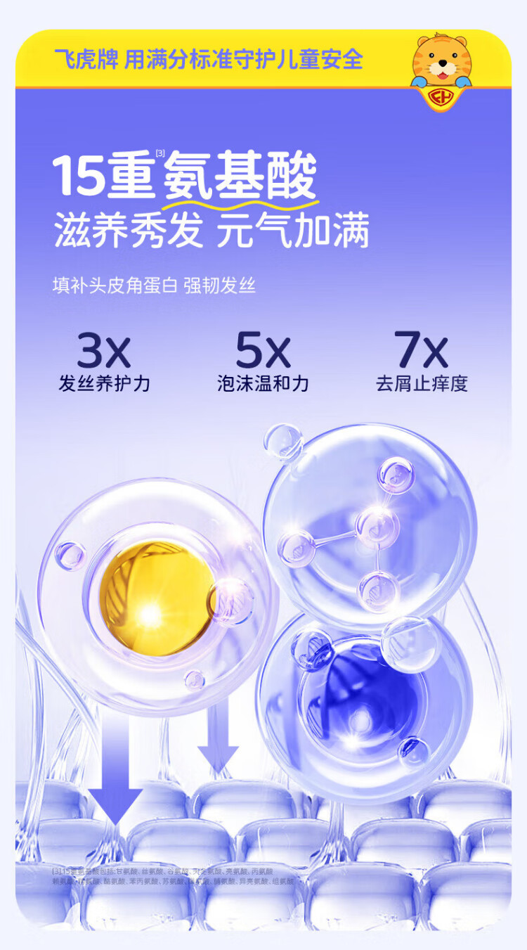 Feihu Brand Children's Amino Acid Shampoo for 3-6-12-15 years old, soft, gentle, oil-controlling, anti-dandruff, anti-itching, boys and girls, practical recommendation, two bottles (300g*2)