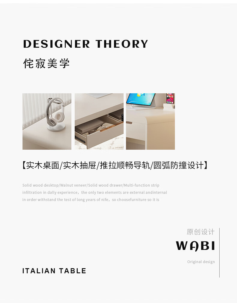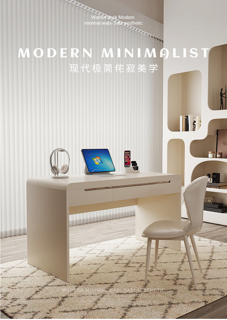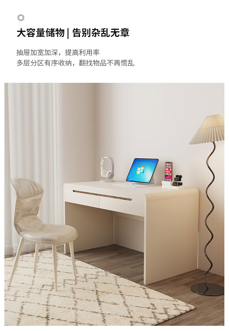 Nuange Hut cream style solid wood desk French light luxury computer table home bedroom study table office desk small apartment medical beauty table cream single table 110*50*75cm