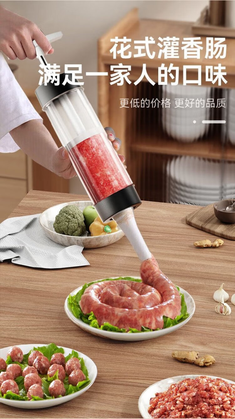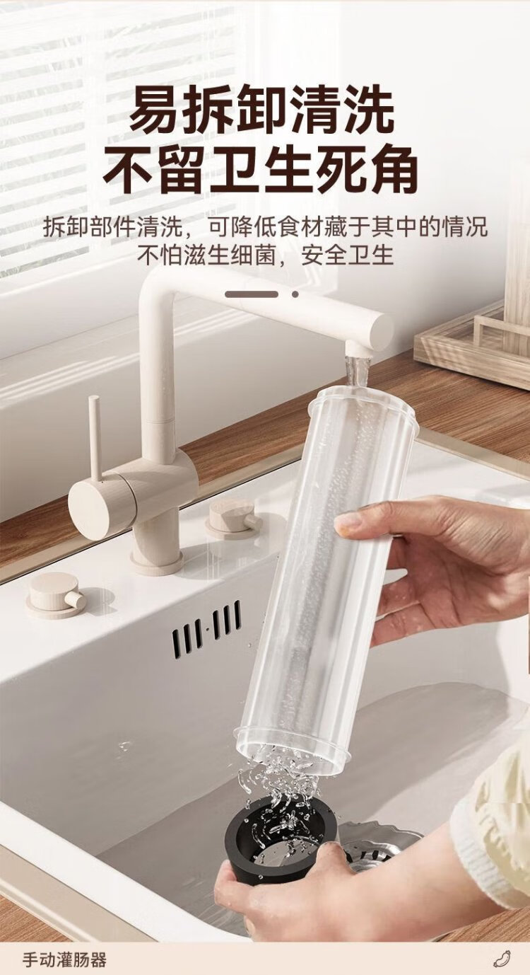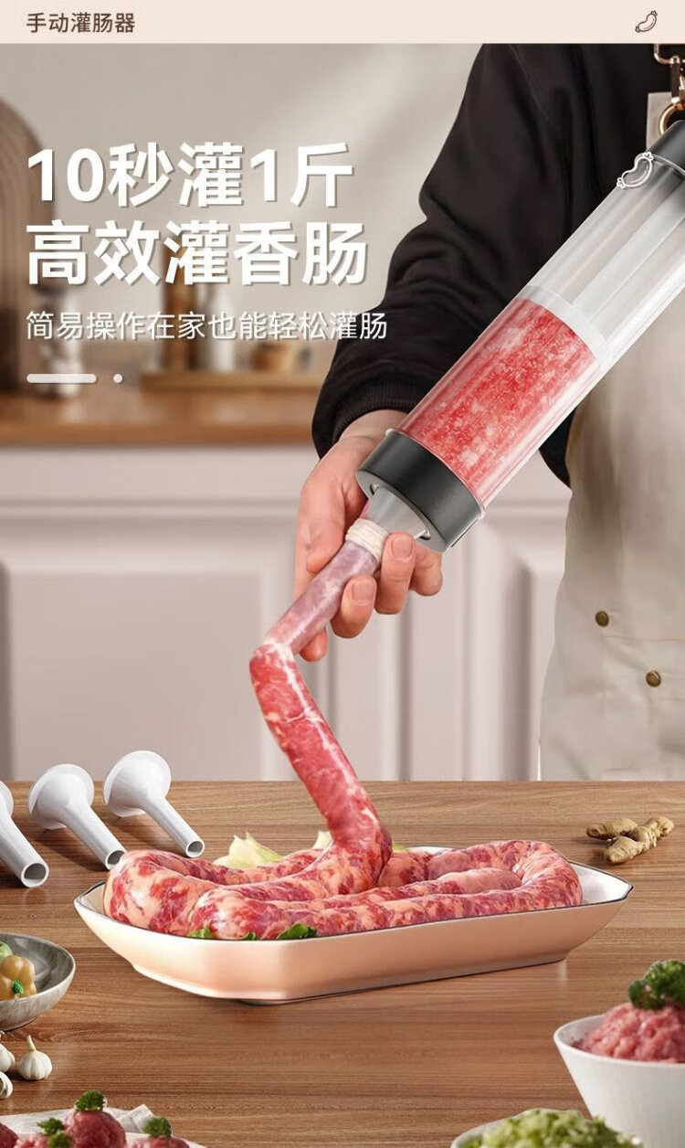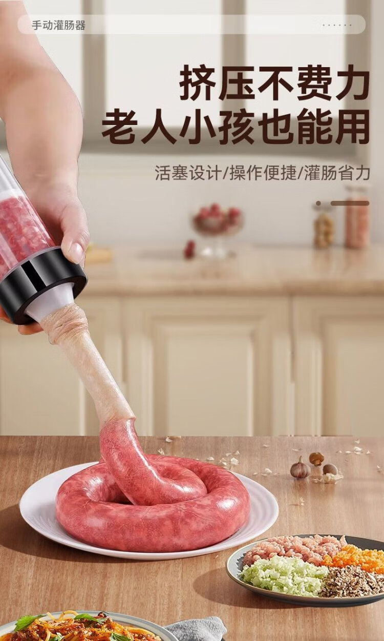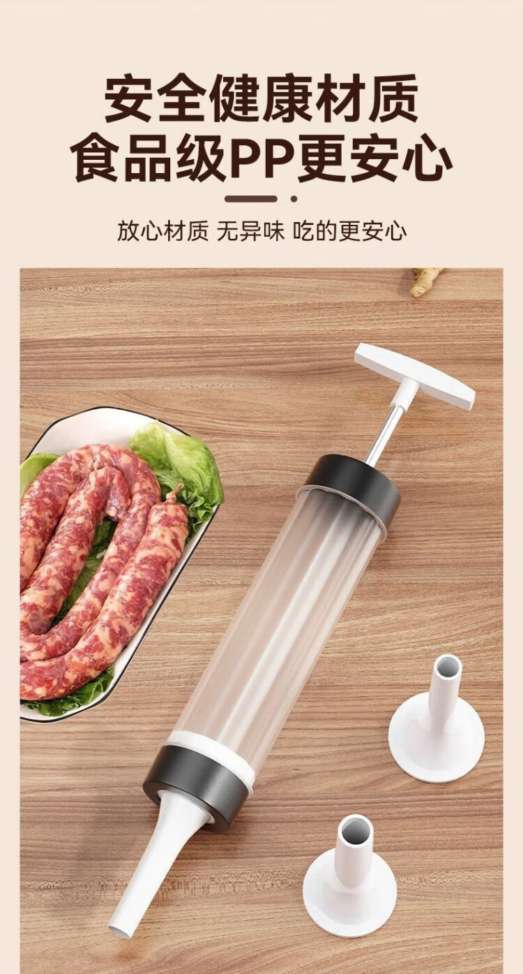 Kim Sister-in-law (KSISE) hand push sausage stuffer food grade PP material sausage filling machine household manual sausage stuffing machine PP material model with 3 tubes + casing * 1 + cotton thread