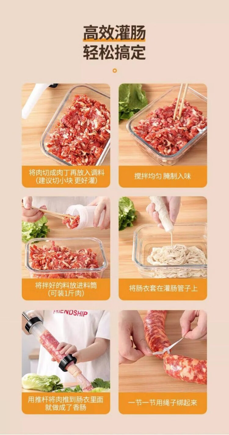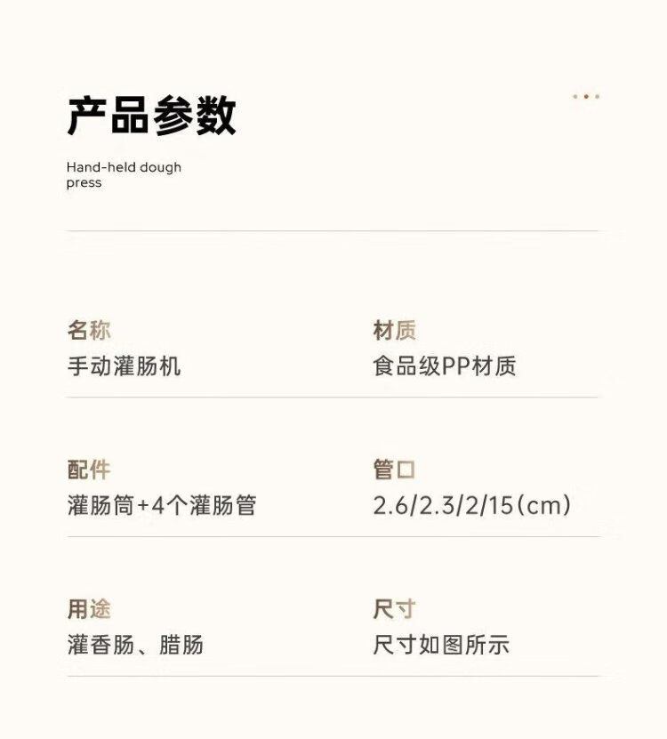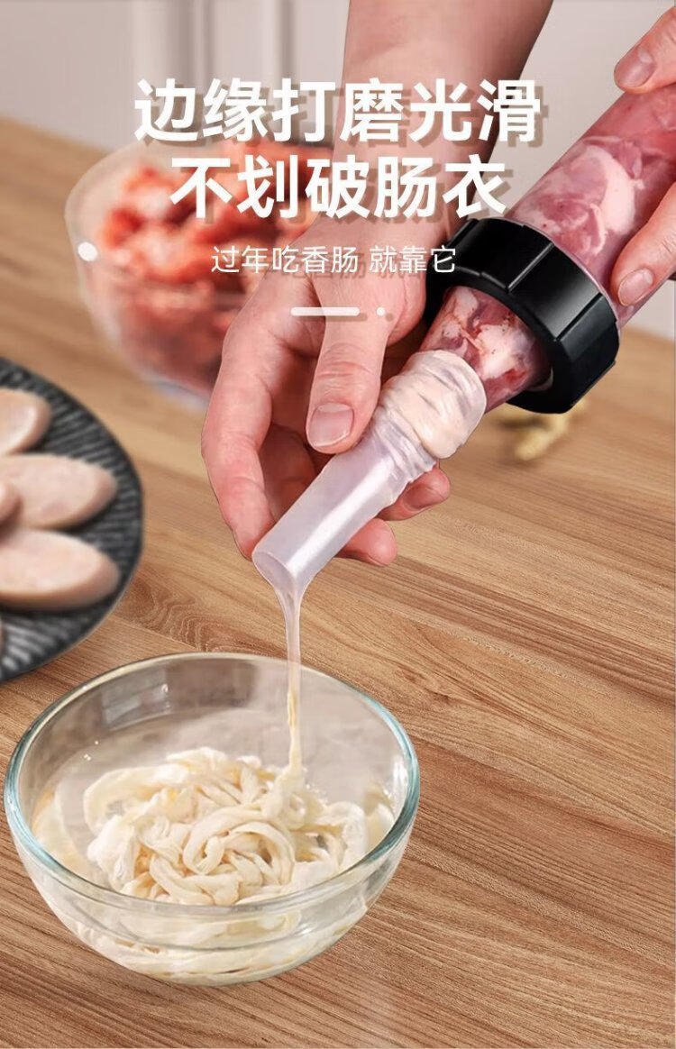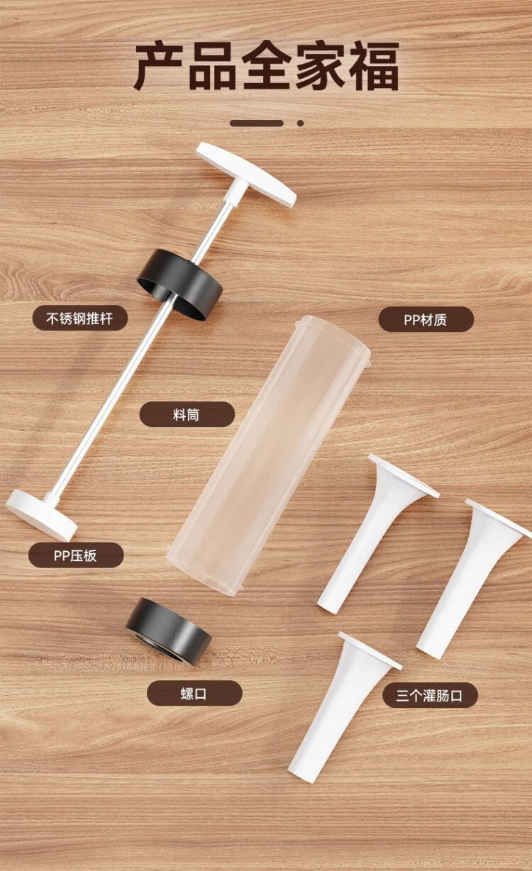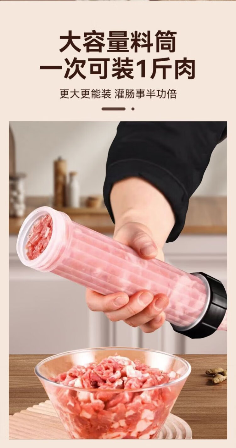 Kim Sister-in-law (KSISE) hand push sausage stuffer food grade PP material sausage filling machine household manual sausage stuffing machine PP material model with 3 tubes + casing * 1 + cotton thread