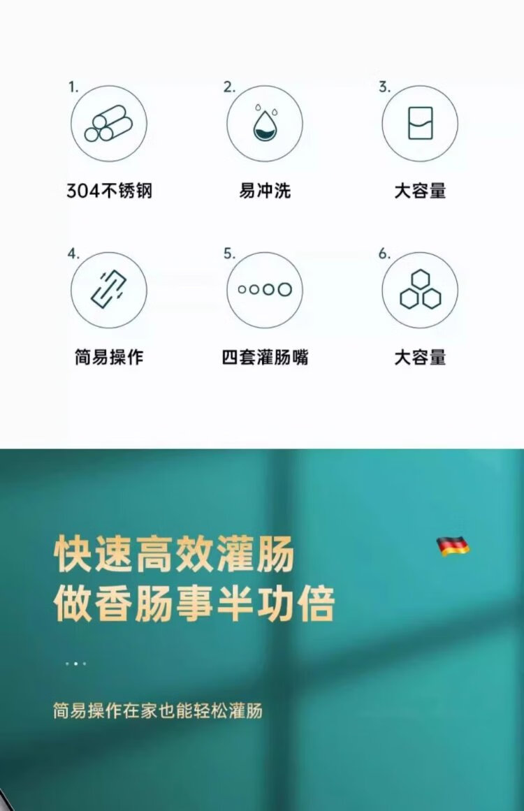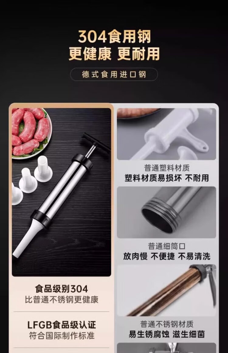 Kim Sister-in-law (KSISE) stainless steel hand-push sausage enema machine food enema machine household sausage filling tool sausage filling artifact 304 models with 4 tubes for easy enema