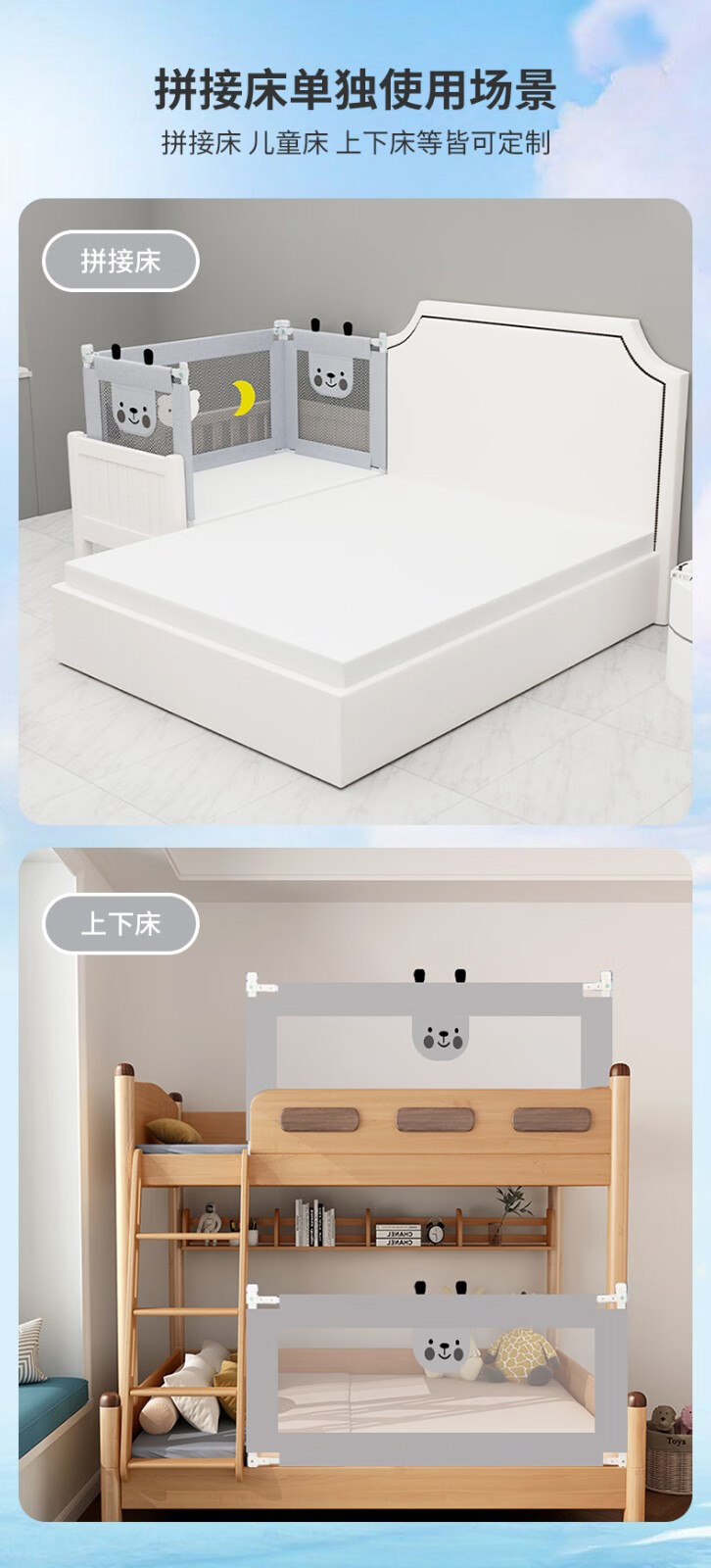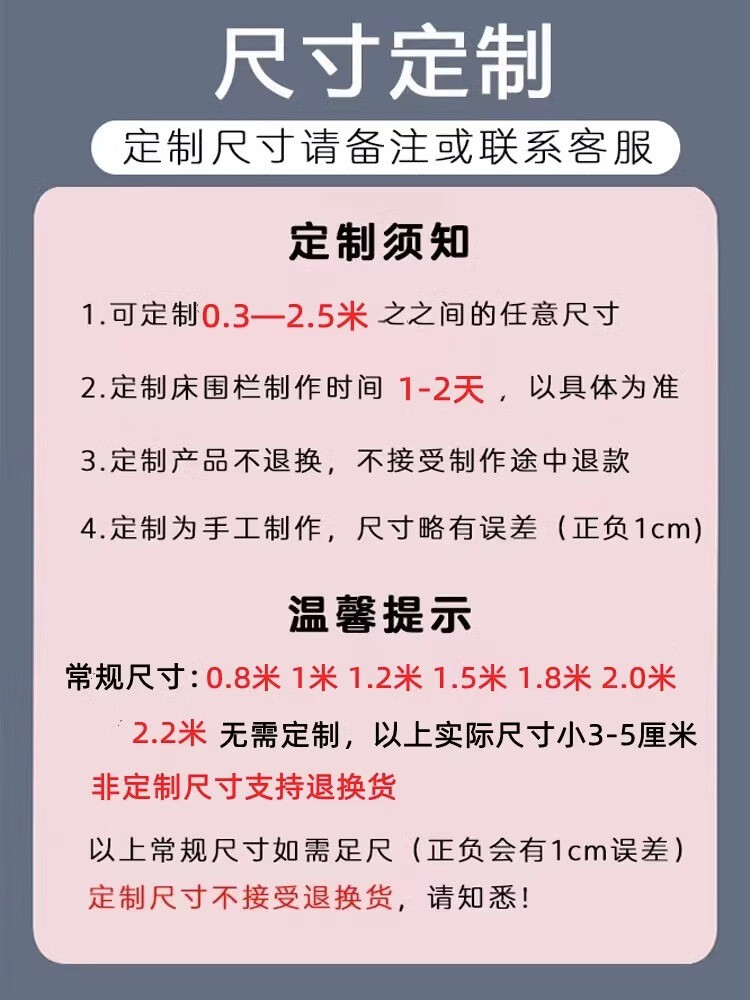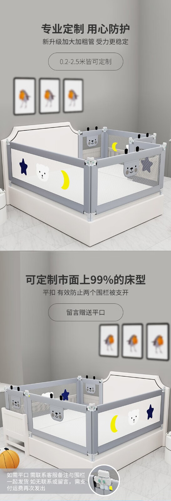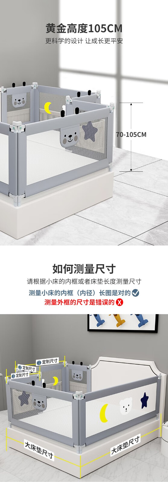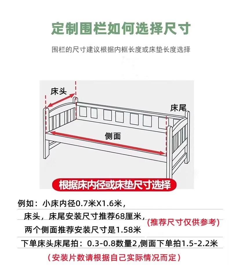 Angjifeng crib fence custom size children's spliced bed guardrail baby heightening 0.8 meters crib anti-fall bed 1M customized model (0.3-0.8) meters Remarks size