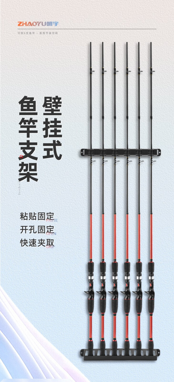 Chaoyu fishing rod rack placement rack display storage rack rod rack wall hanging wall holder fishing gear fishing supplies vertical hanging 6-hole model (vertical installation) black