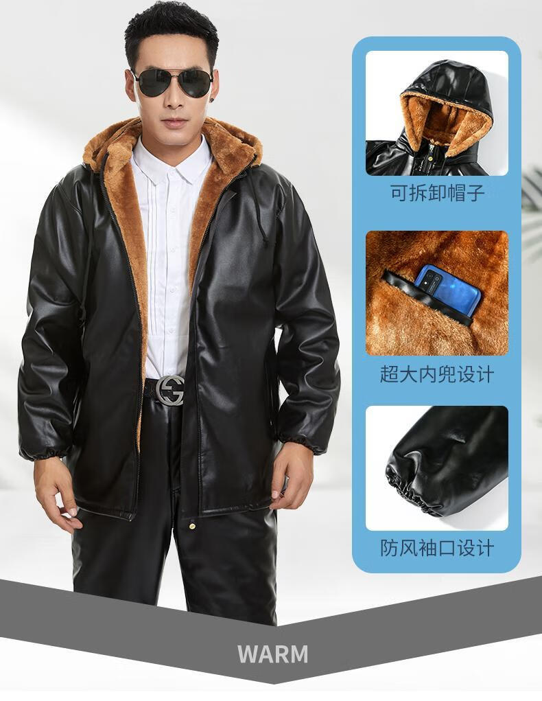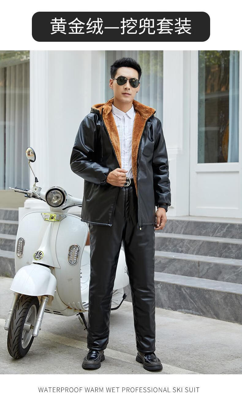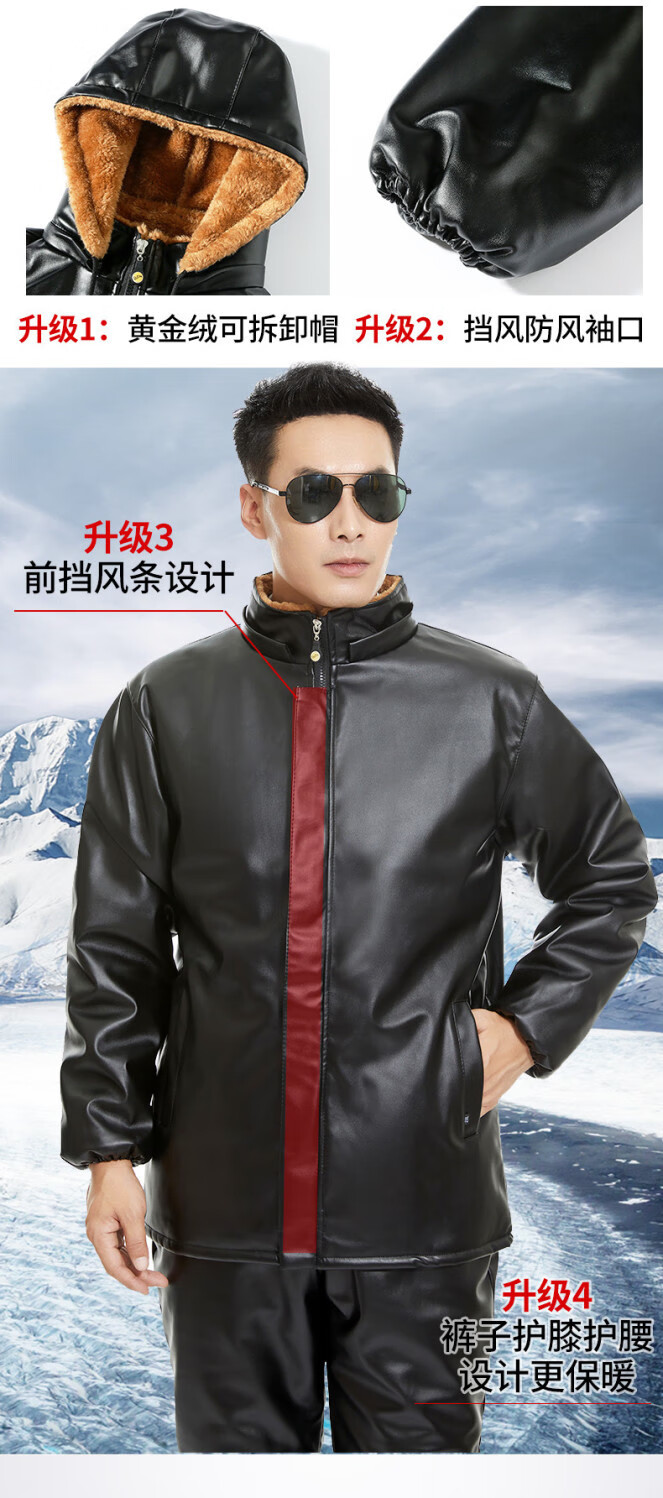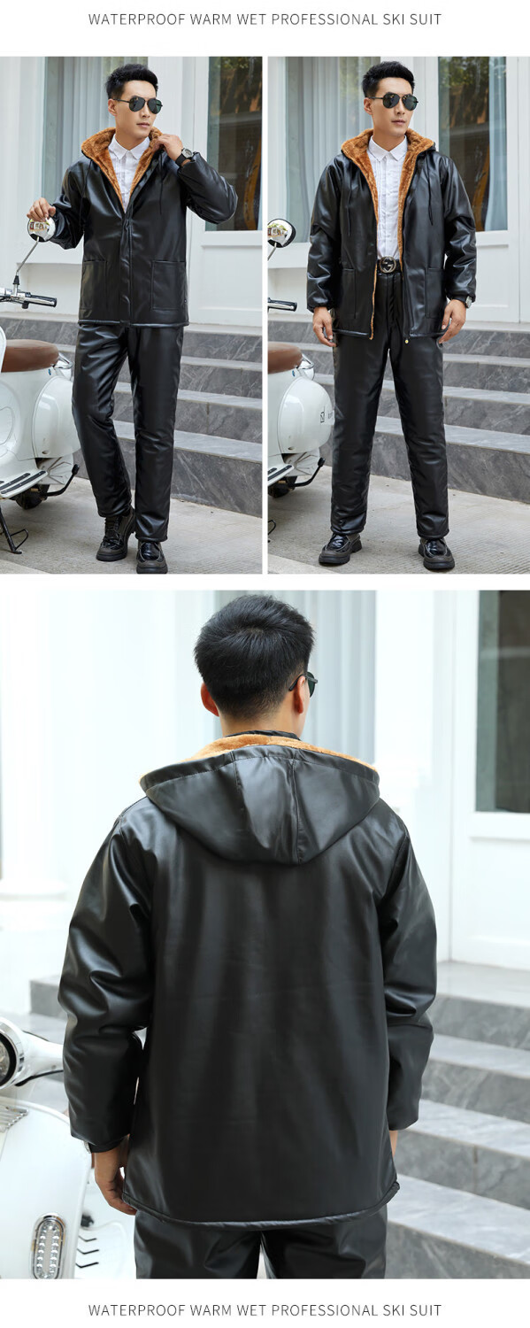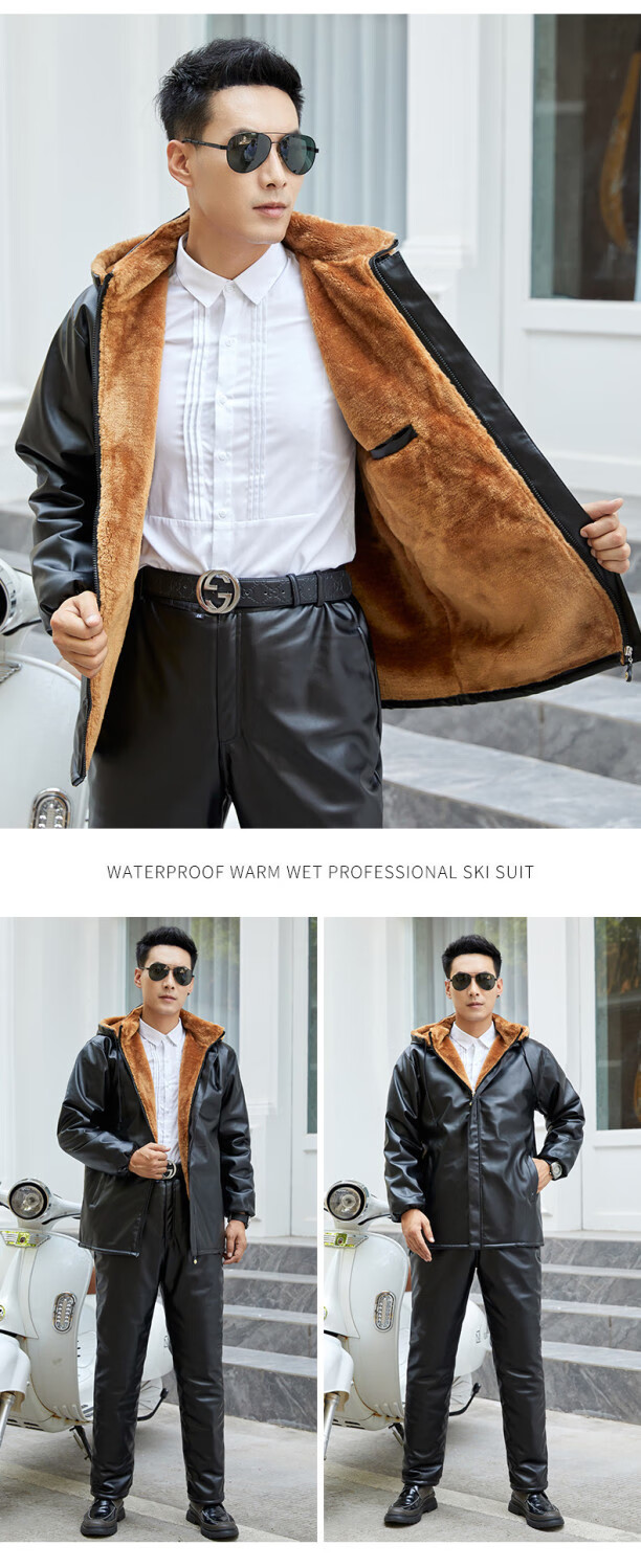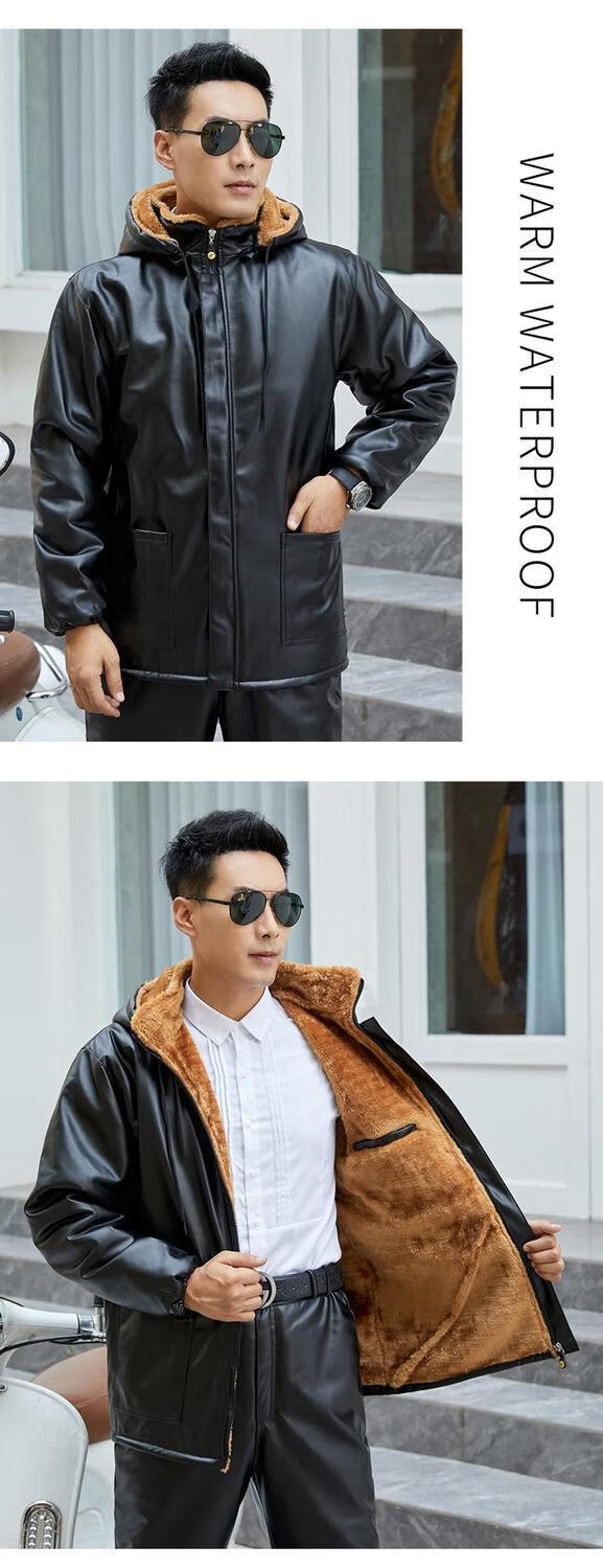 Leather jacket and leather pants men's suit plus velvet thickened oil-proof and waterproof overalls middle-aged and elderly men's cold-proof and warm leather jacket leather jacket + leather pants (thickened in winter) 2XL size (120-130Jin Jin equals 0.5 kg)