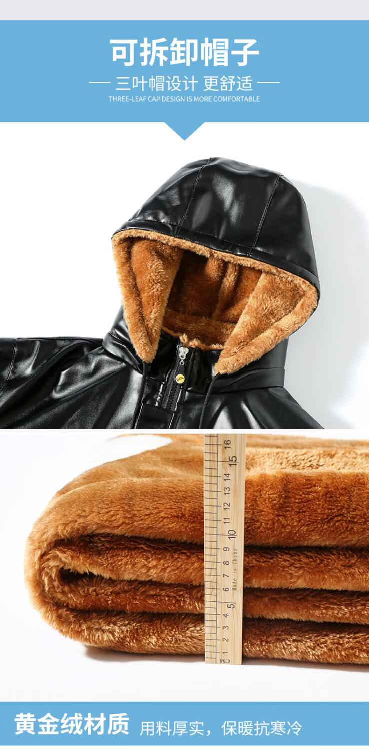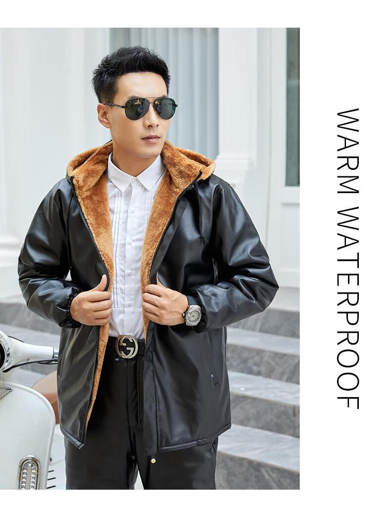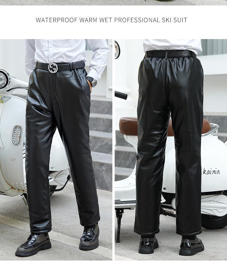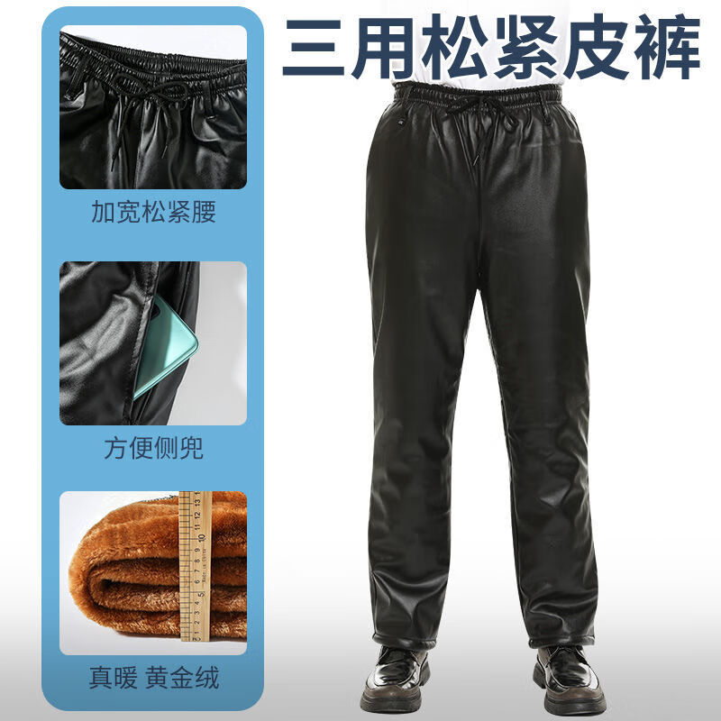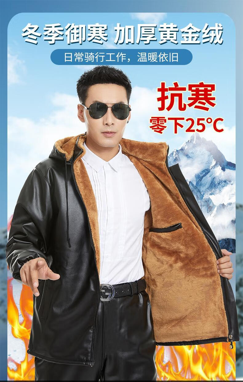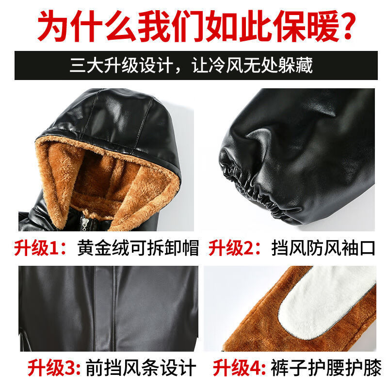 Leather jacket and leather pants men's suit plus velvet thickened oil-proof and waterproof overalls middle-aged and elderly men's cold-proof and warm leather jacket leather jacket + leather pants (thickened in winter) 2XL size (120-130Jin Jin equals 0.5 kg)