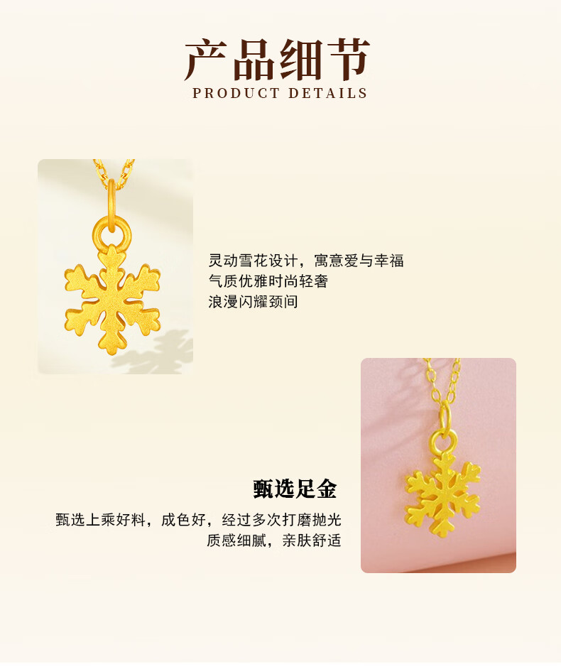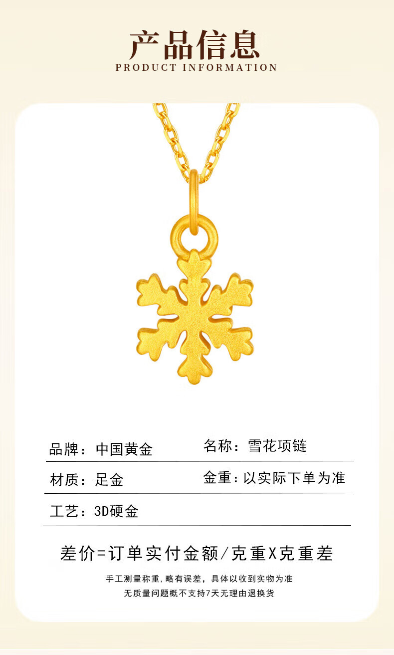 CHINA GOLD Pure Gold Snowflake Pendant Women's Gold Necklace Clavicle Chain New Pendant Valentine's Day Birthday Gift for Girlfriend Today/Next Day Delivery Snowflake Pendant with S925 Chain Approximately 0.2g