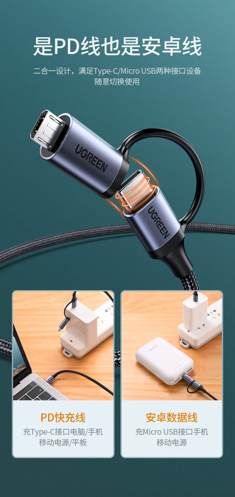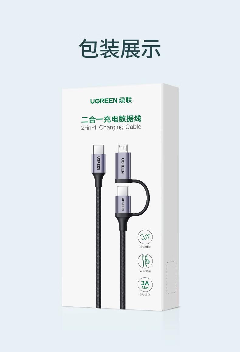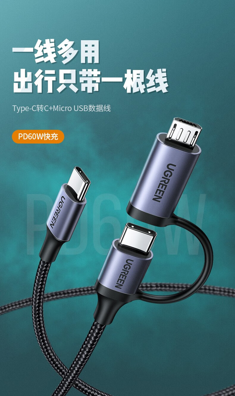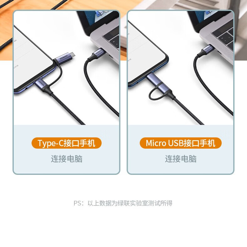Greenlink Double-ended Type-C data cable PD60W fast charging Android cable suitable for Apple IPhone17/16Pro/MacBook/IPAD computer Xiaomi Huawei mobile phone Type-C to C+Micro USB two-in-one fast charging cable
