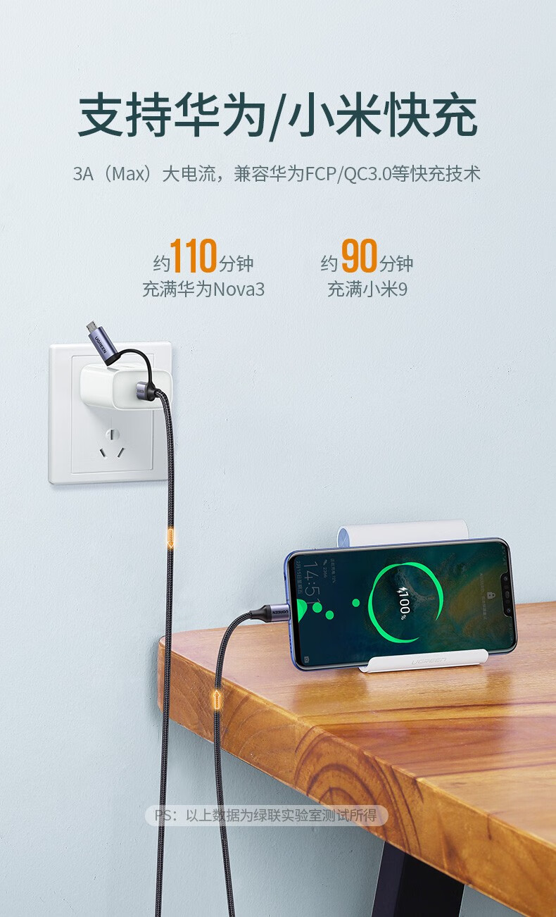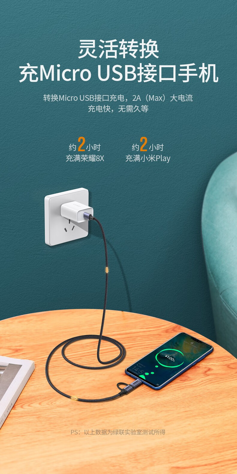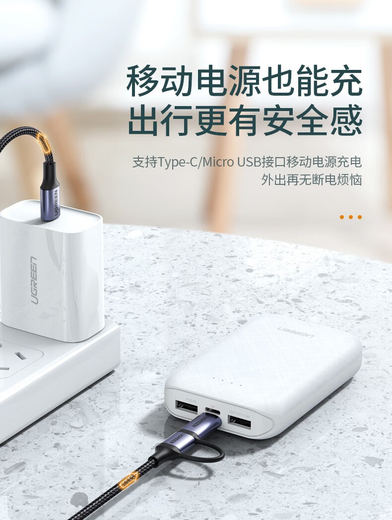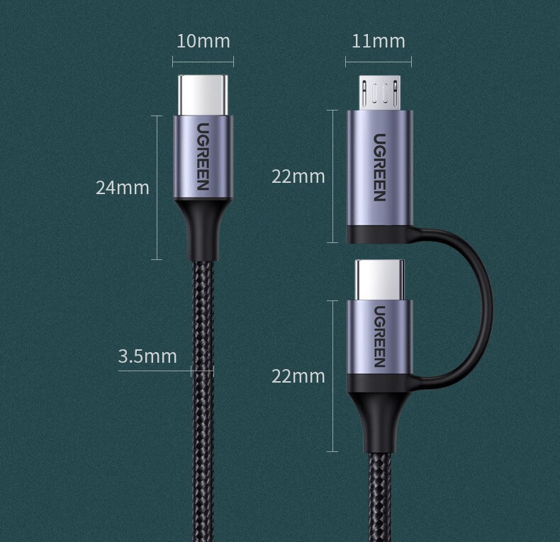 Greenlink Double-ended Type-C data cable PD60W fast charging Android cable suitable for Apple IPhone17/16Pro/MacBook/IPAD computer Xiaomi Huawei mobile phone Type-C to C+Micro USB two-in-one fast charging cable