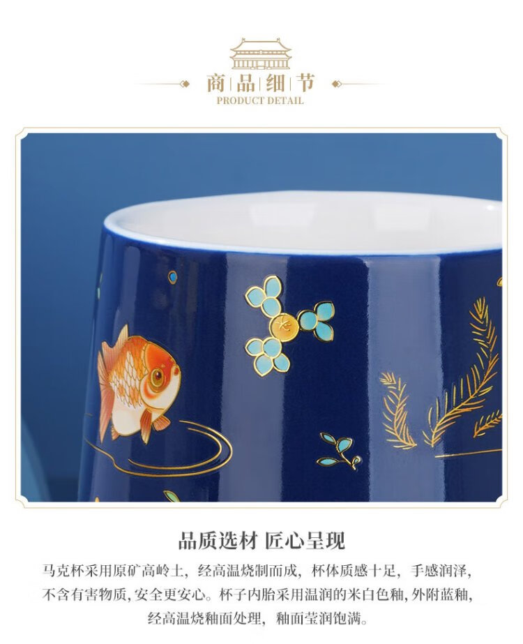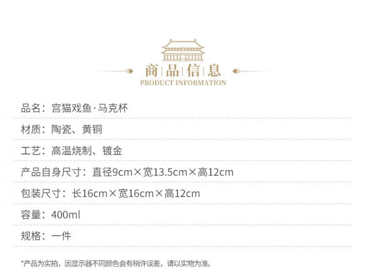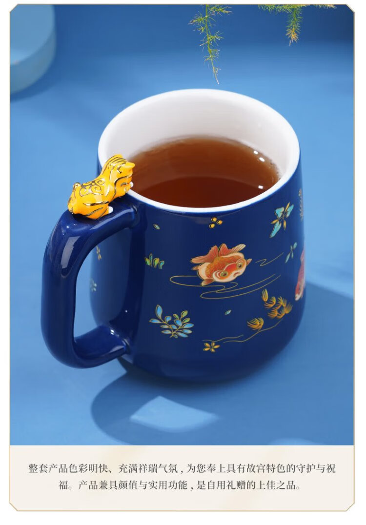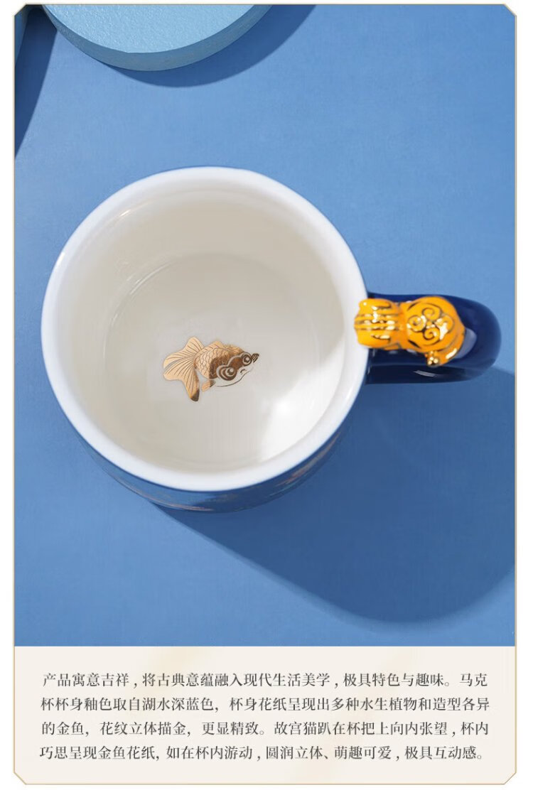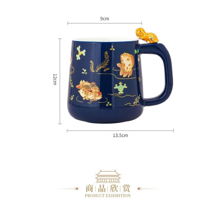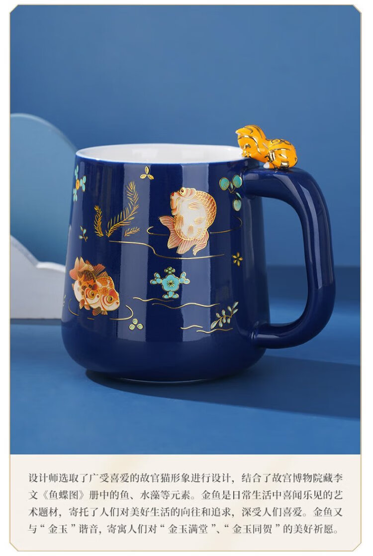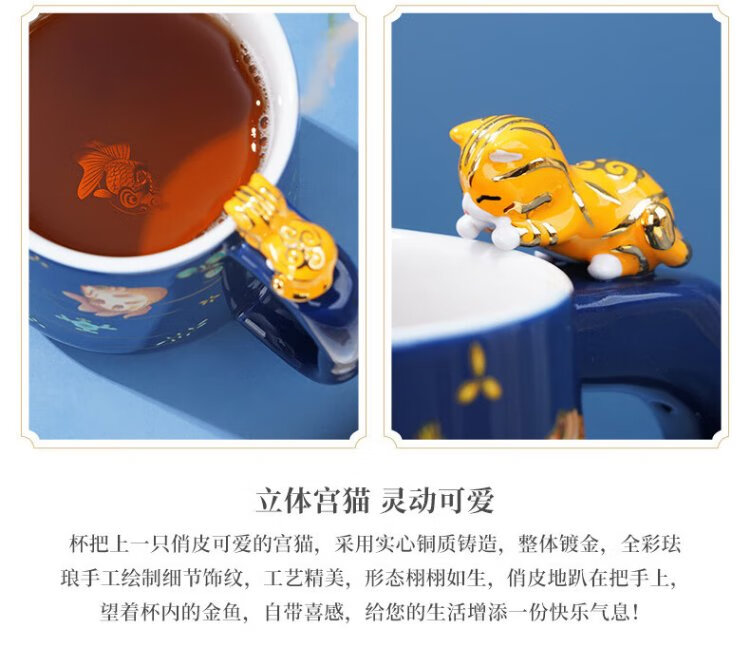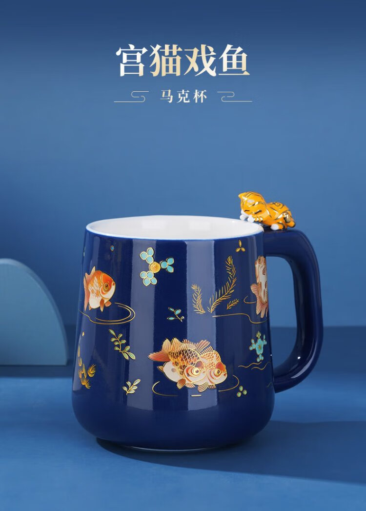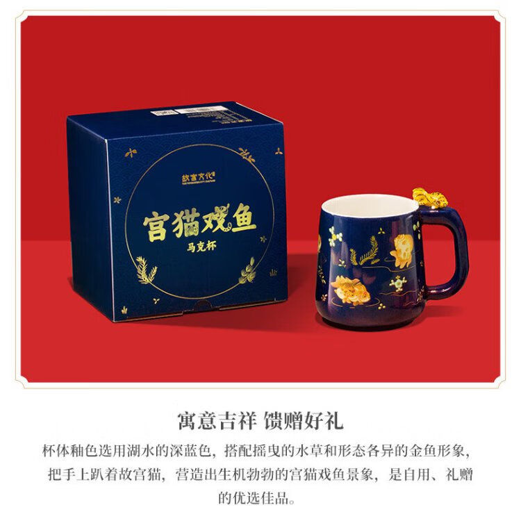 Palace Museum Culture Palace Cat Playing with Fish Mug Ceramic Cup Water Cup Coffee Cup Souvenir Palace Museum Cultural and Creative Gifts Gift Box 400ml