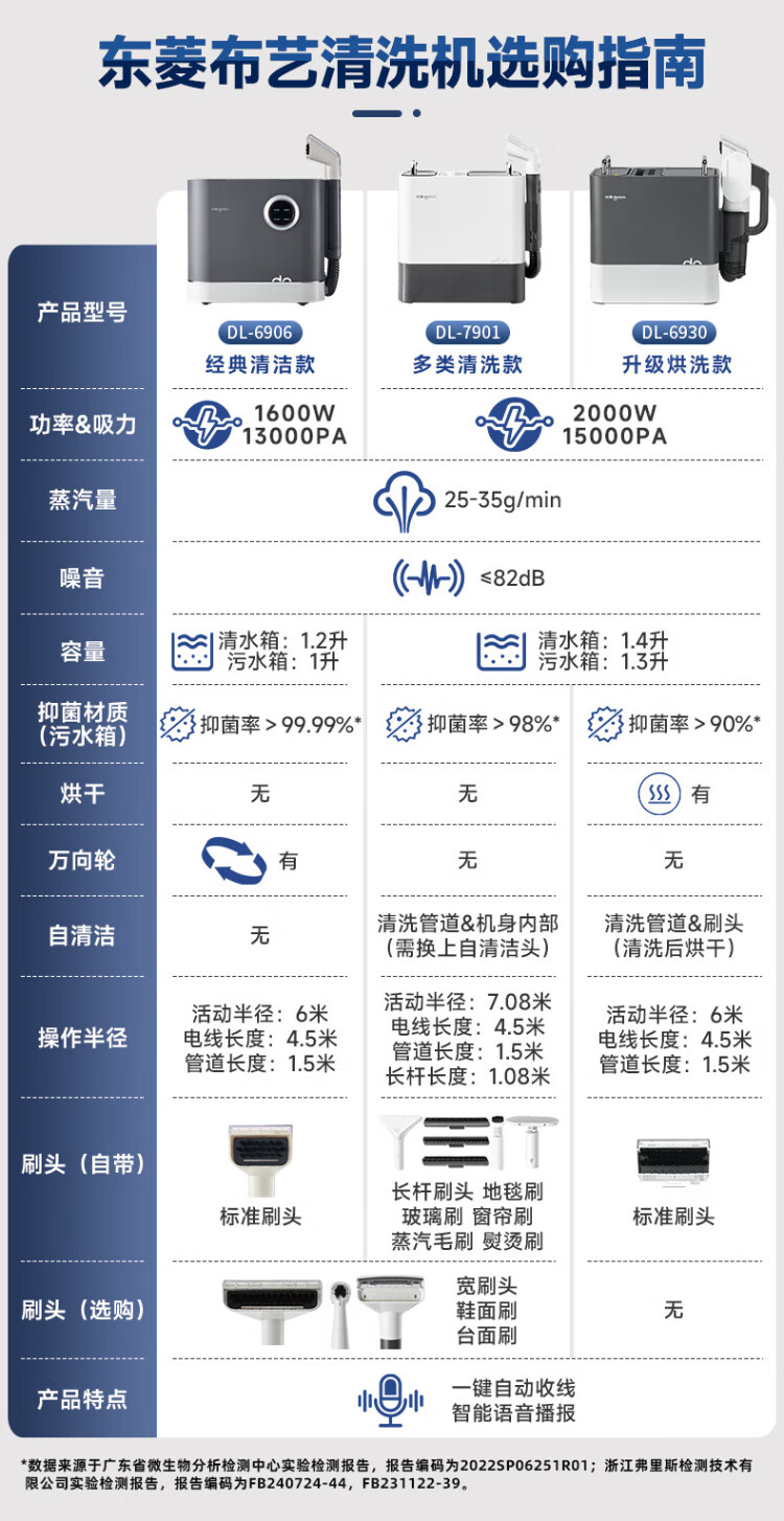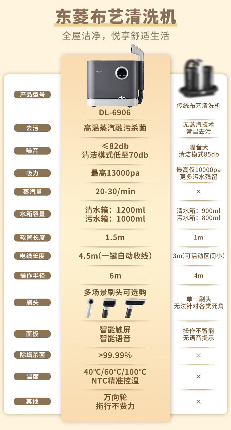 Donlim fabric cleaning machine, high-temperature steam cleaning machine, multi-functional steam cleaning, sterilization, mite removal, spray and suction all-in-one machine for washing sofas, mattresses, curtains and carpets cleaning tool DL-6906 (with all brush heads)