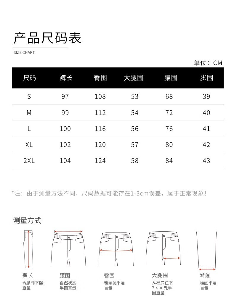 Outseam (cm) 99 cm 101.5 cm 104 cm 106.5 cm 109 cm