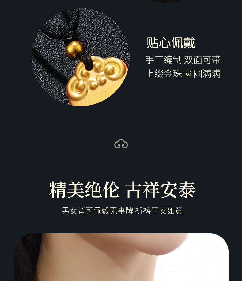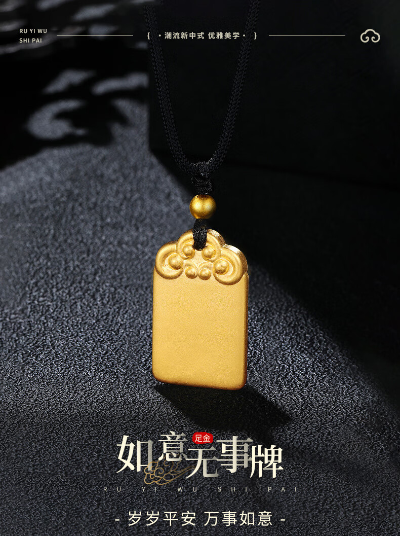China Gold Ping An Wu Shi Brand Gold Necklace Pure Gold Amulet Pendant Gift for Boyfriend and Husband’s Birthday Jingsuda Pure Gold Wu Shi Brand Necklace