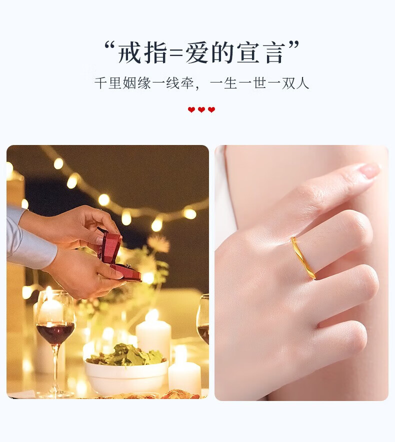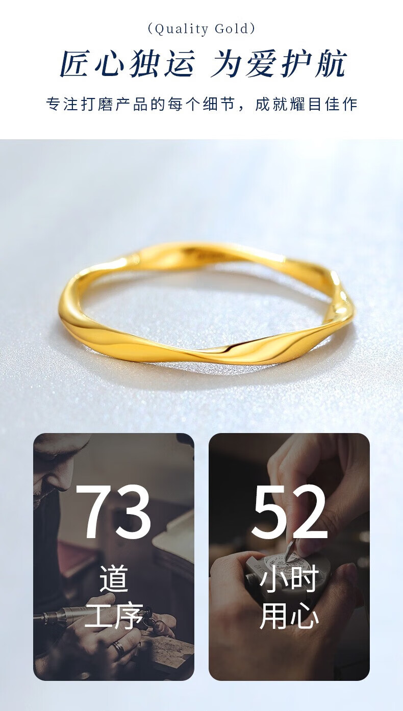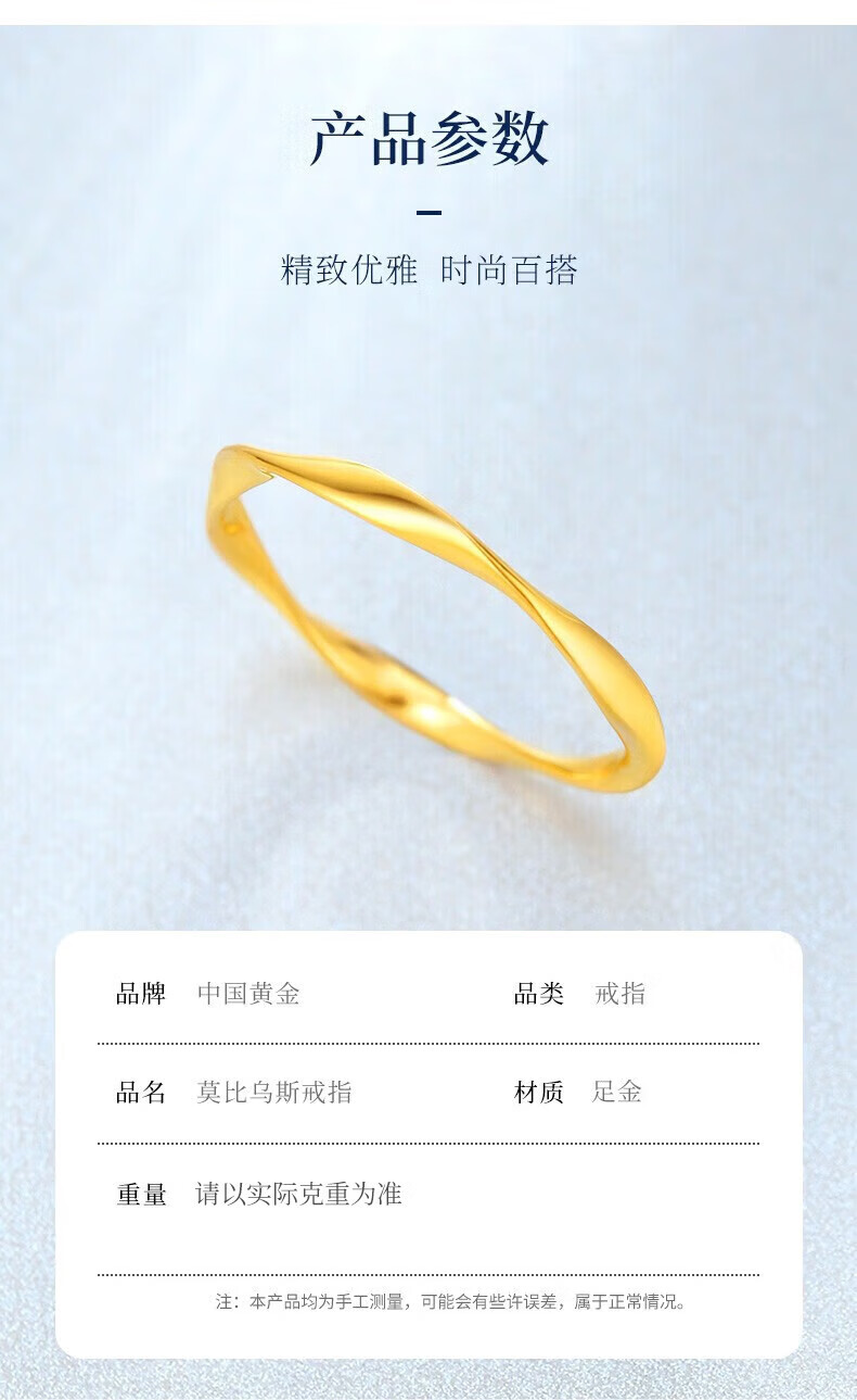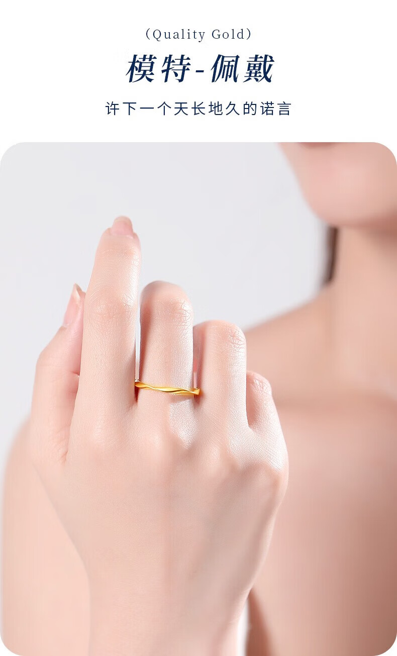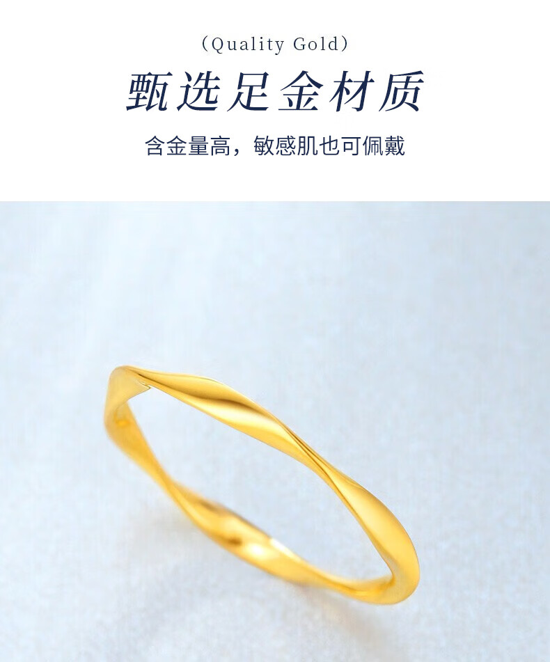 Chinese Gold Möbius Ring Gold Ring Women's Foot Gold Ring Gift for Girlfriend and Wife's Birthday Practical Pure Gold Möbius Ring 13-14# Jingsuda