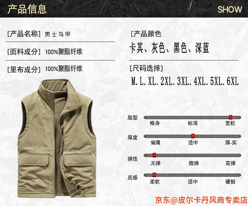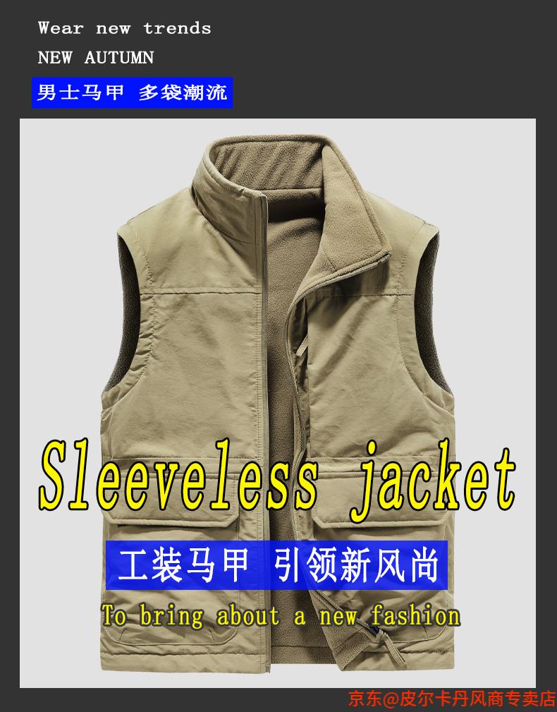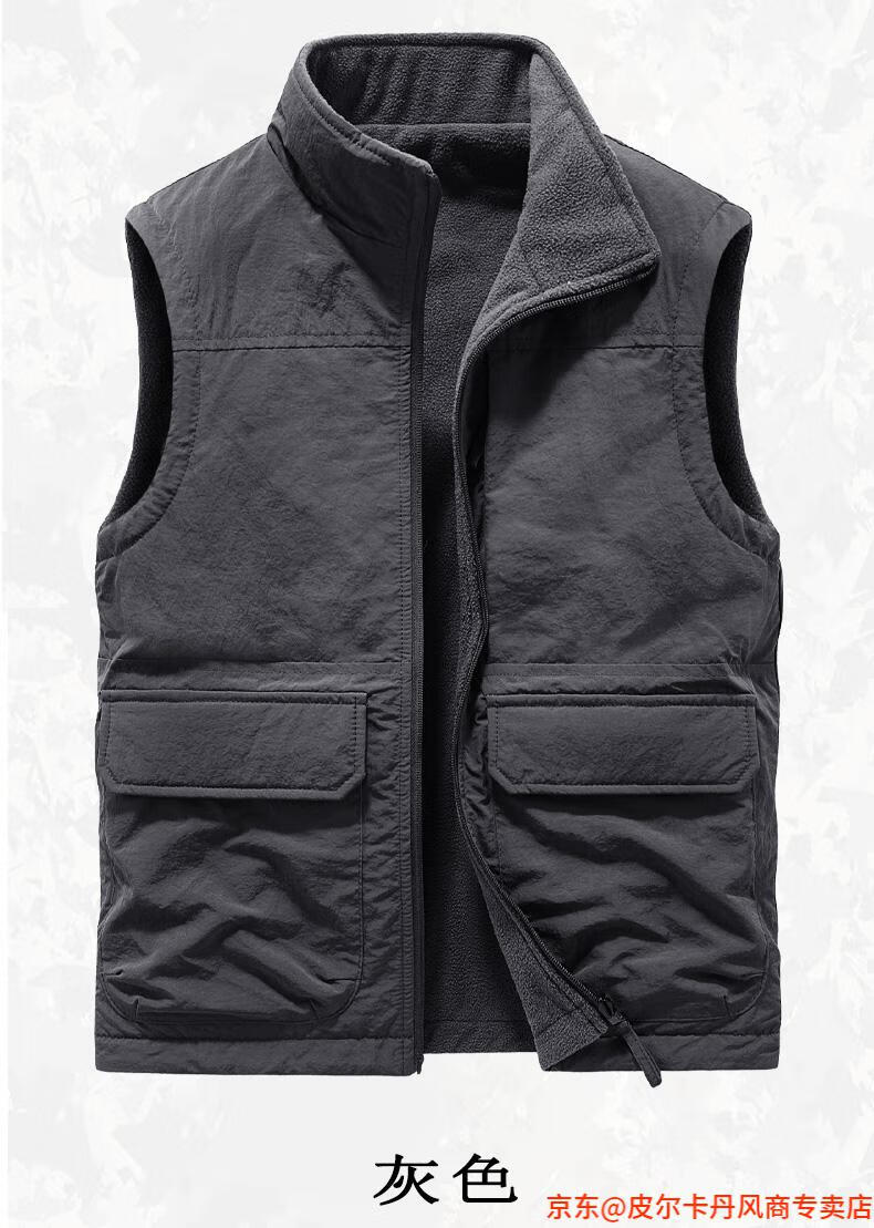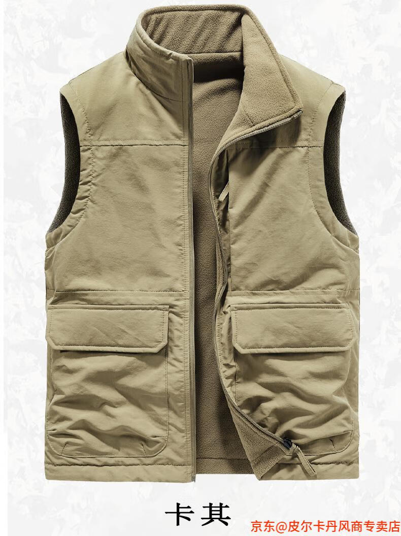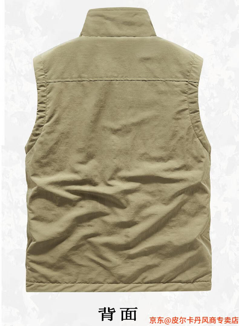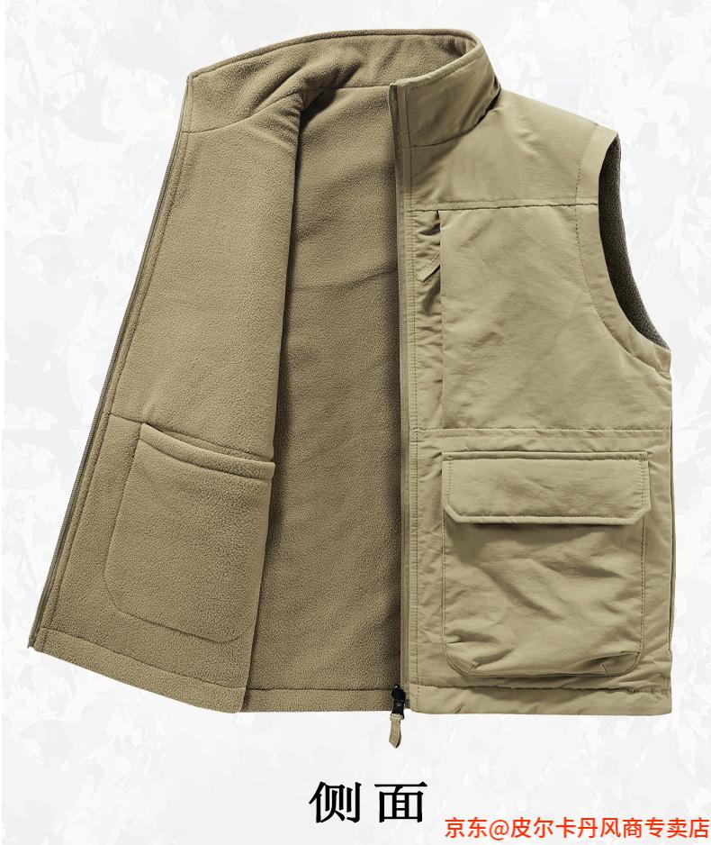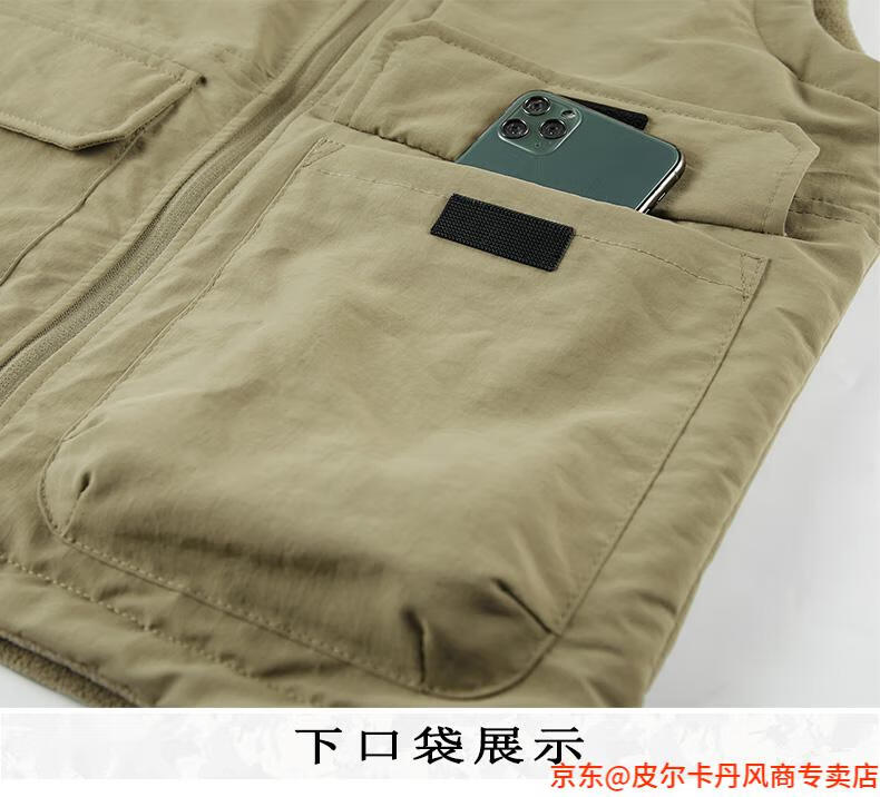 Pierre Cardin vest autumn and winter outdoor men's double-sided velvet thickened multi-pocket casual and fashionable dad style vest workwear Khaki 8770 short velvet double-sided autumn and winter style M 80-110Jin Jin is equal to 0.5 kg