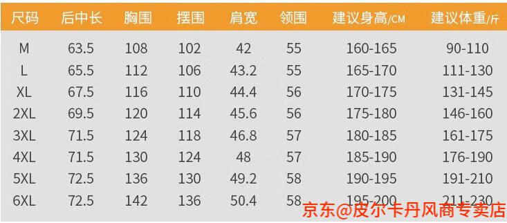 China (cm) 165 / 88-90 170 / 96-98 175 / 108-110 180 / 118-122 185 / 126-130