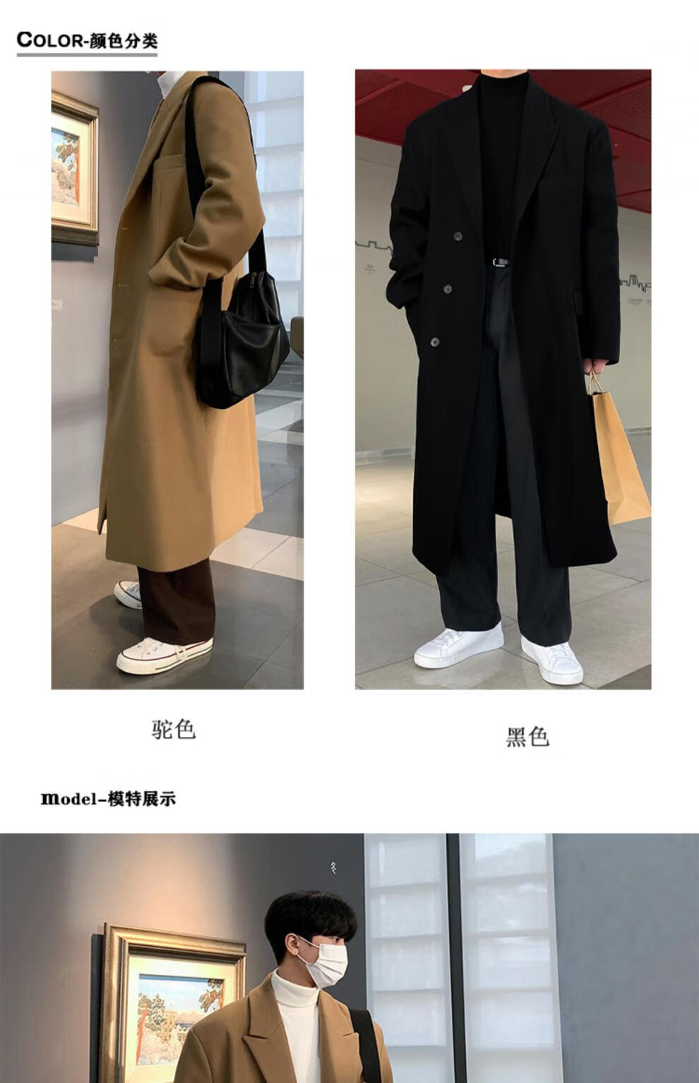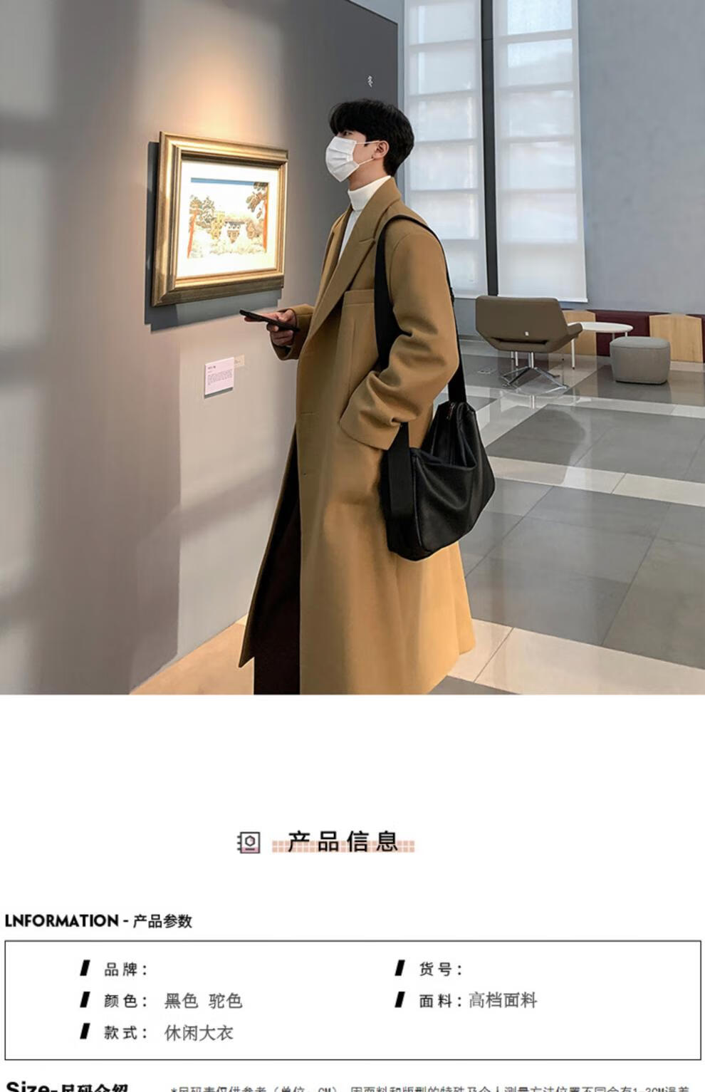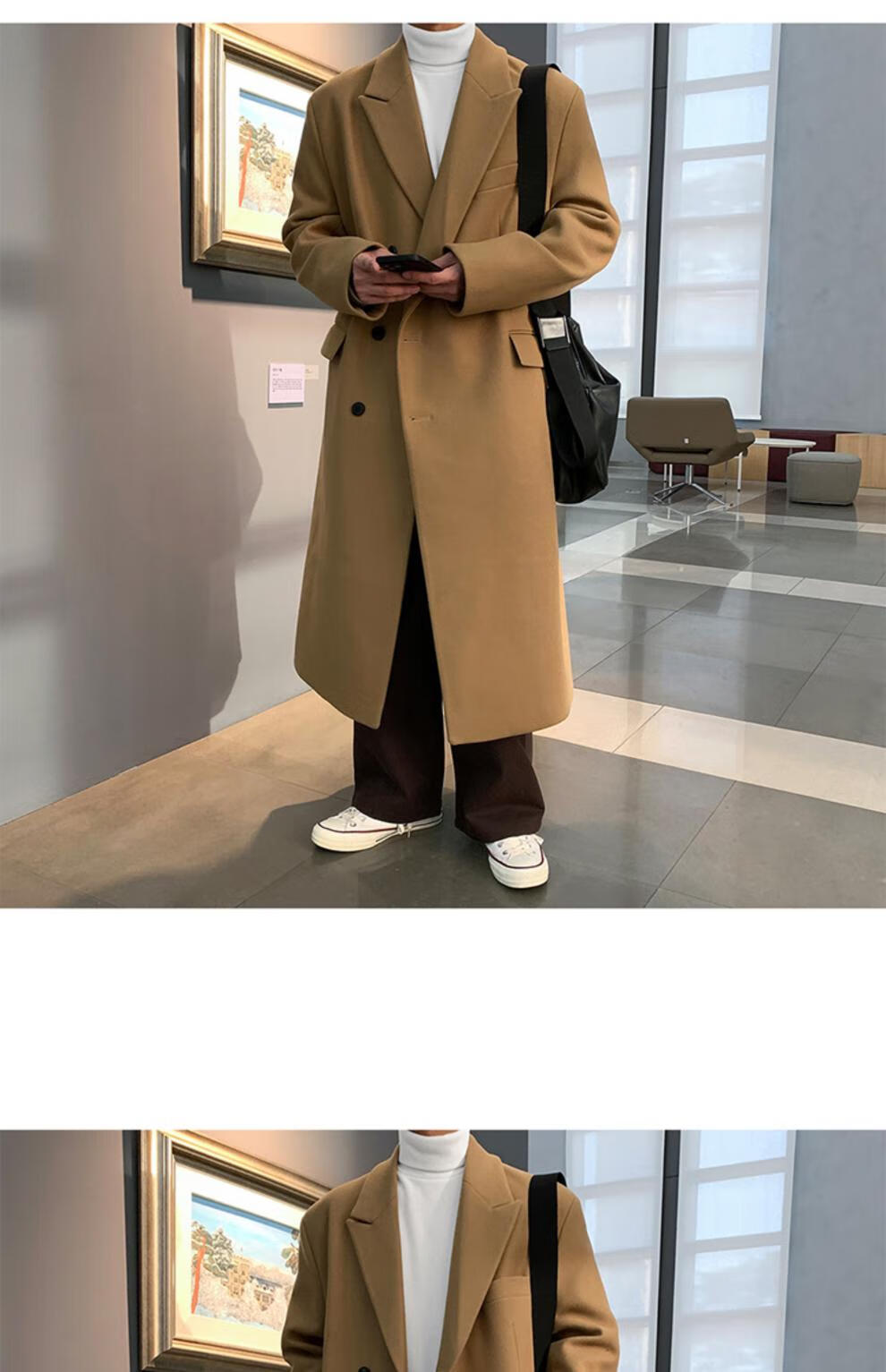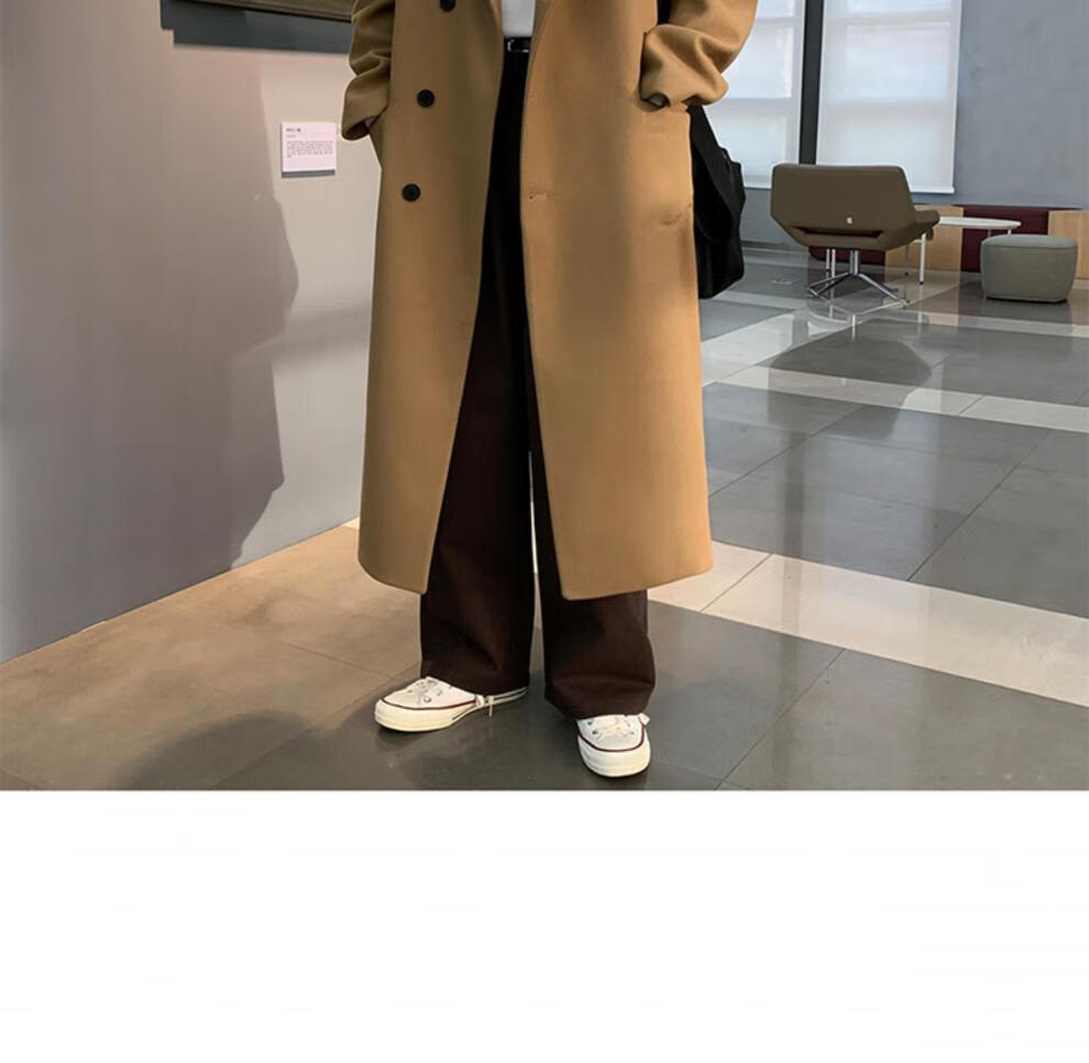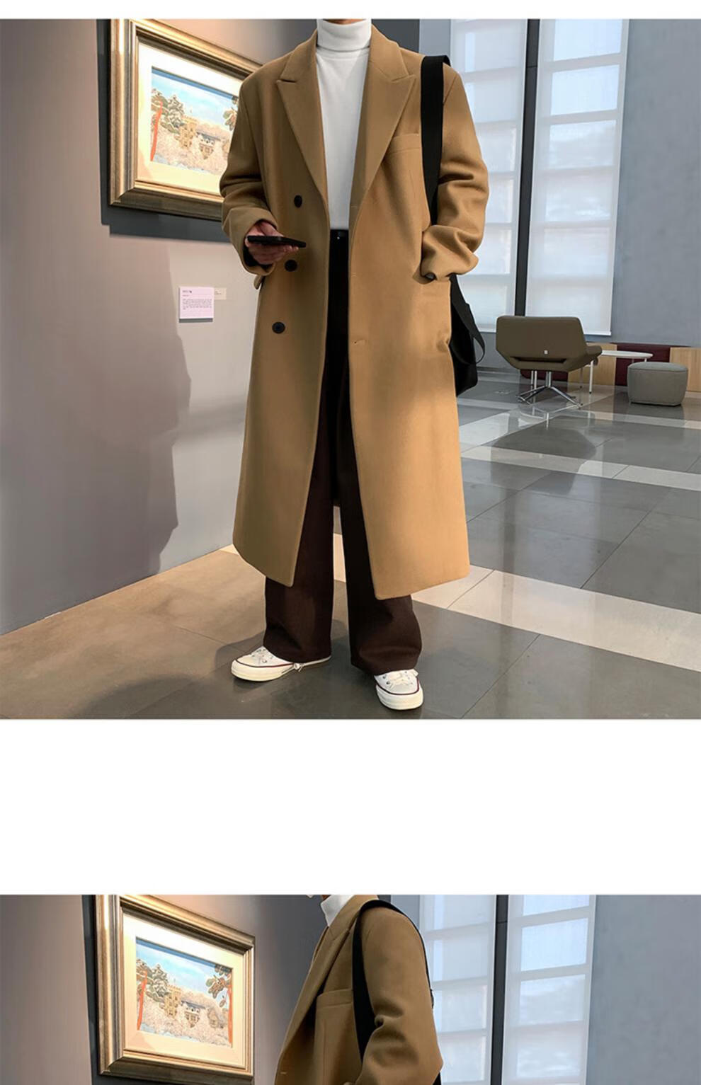 OEMG autumn and winter high street retro mid-length woolen coat men's knee-length windbreaker British thickened handsome woolen coat khaki-cotton L recommended 100-110Jin Jin equals 0.5 kg