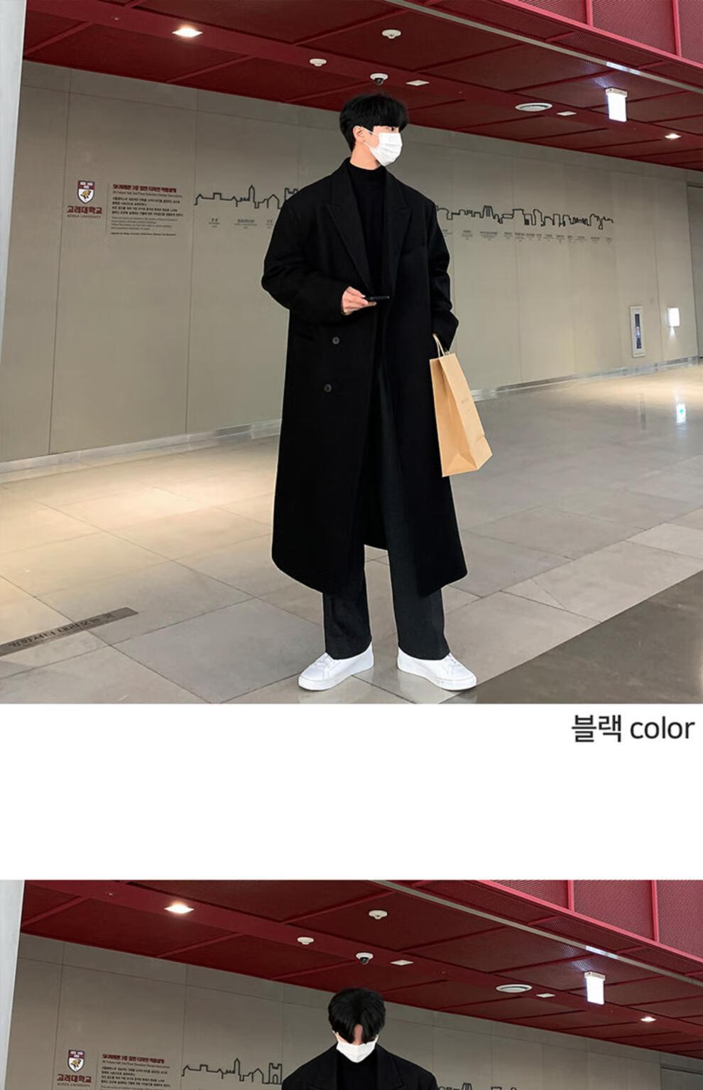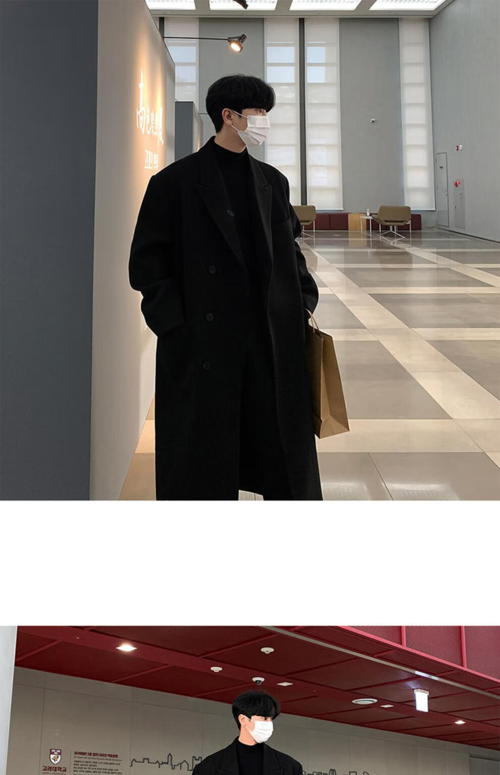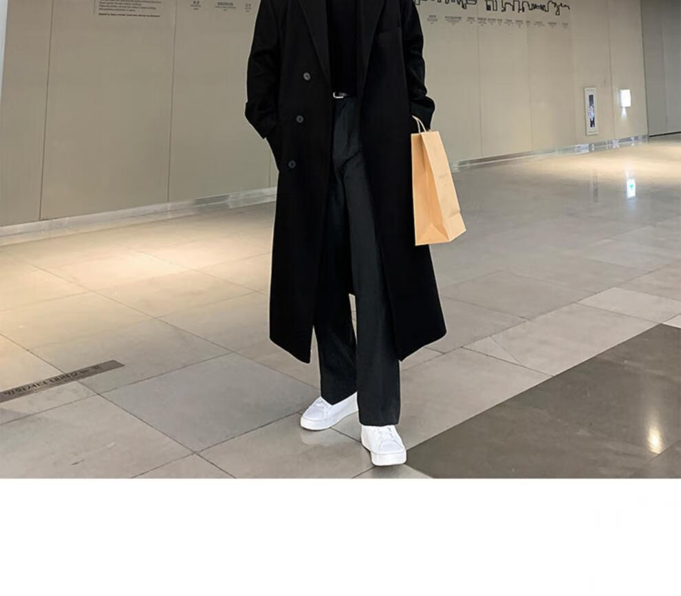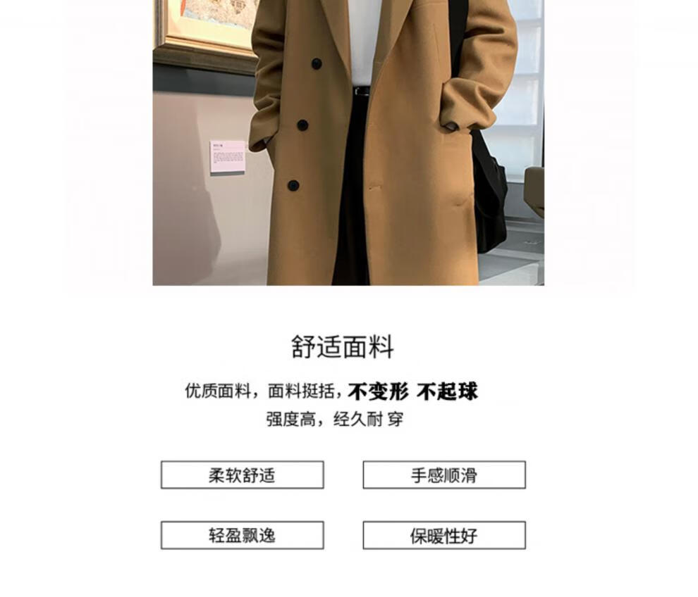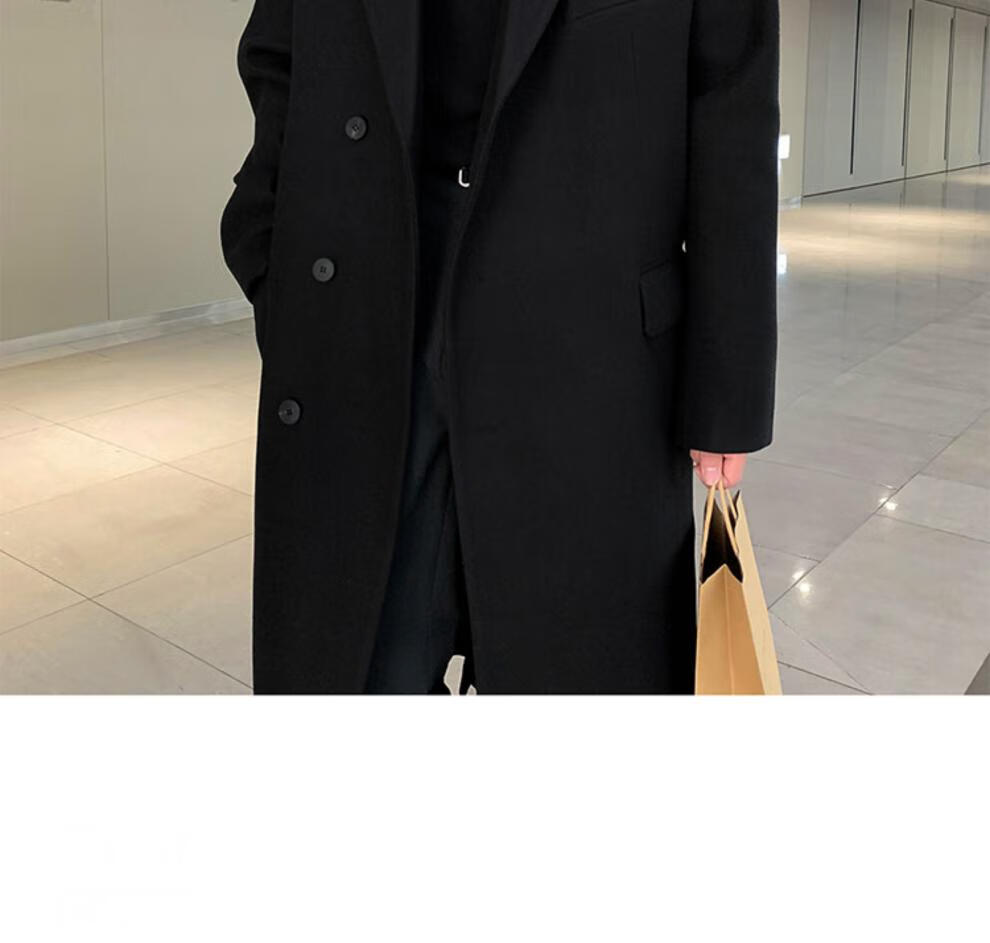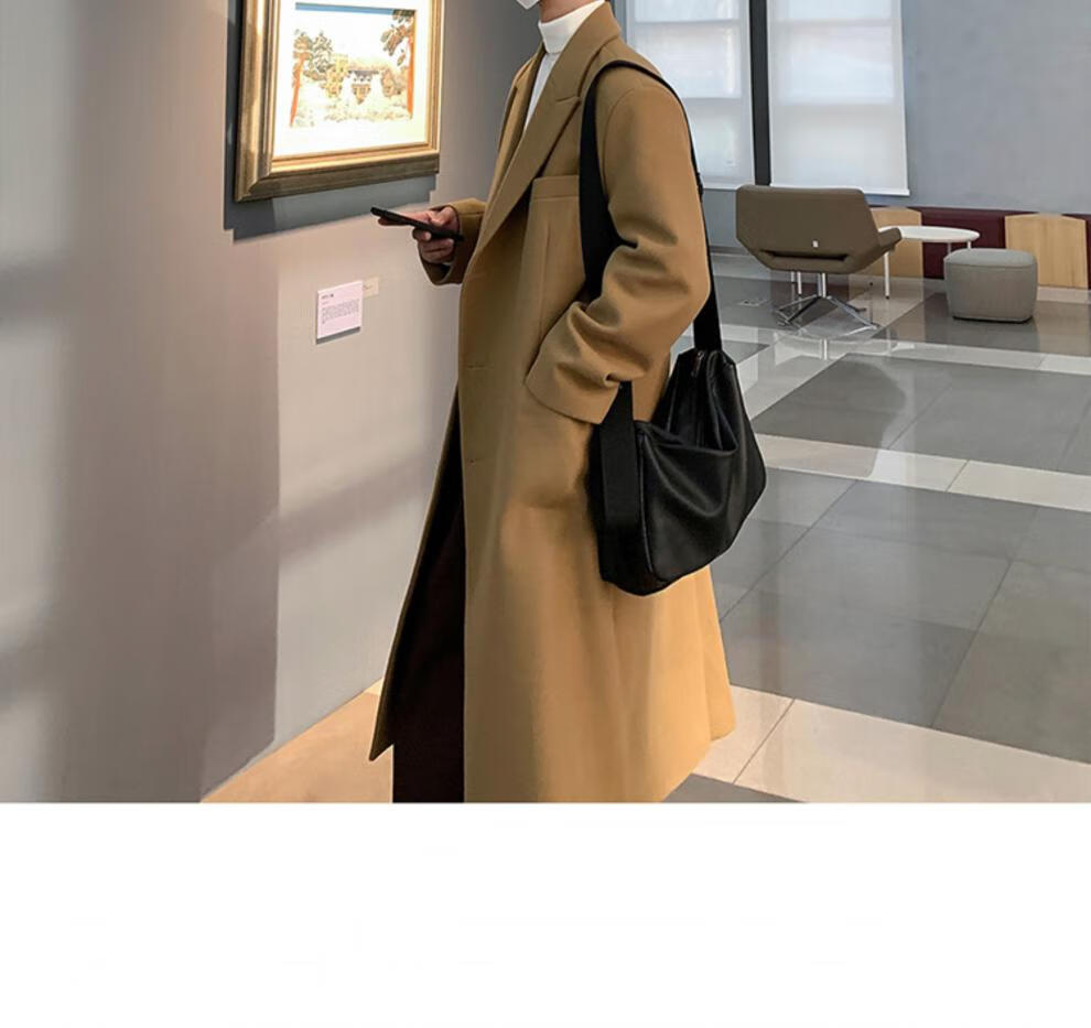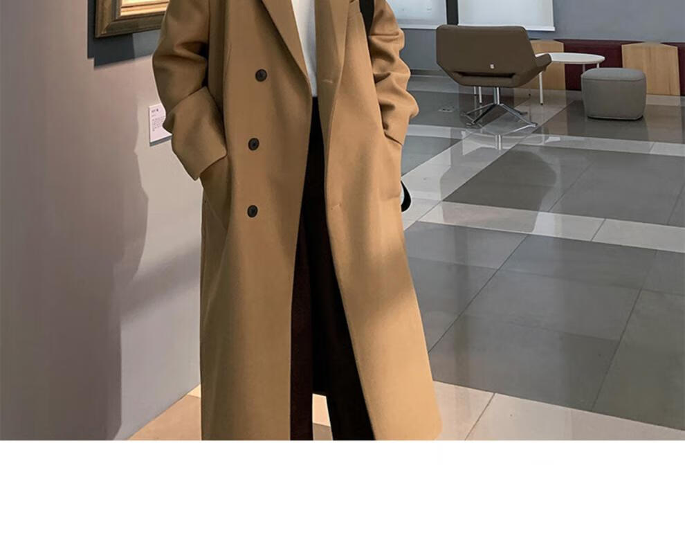 OEMG autumn and winter high street retro mid-length woolen coat men's knee-length windbreaker British thickened handsome woolen coat khaki-cotton L recommended 100-110Jin Jin equals 0.5 kg