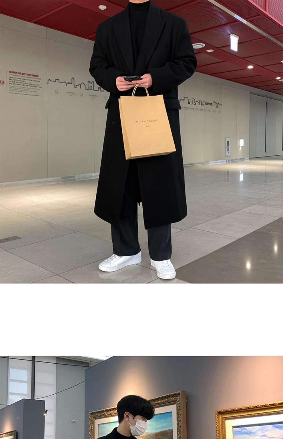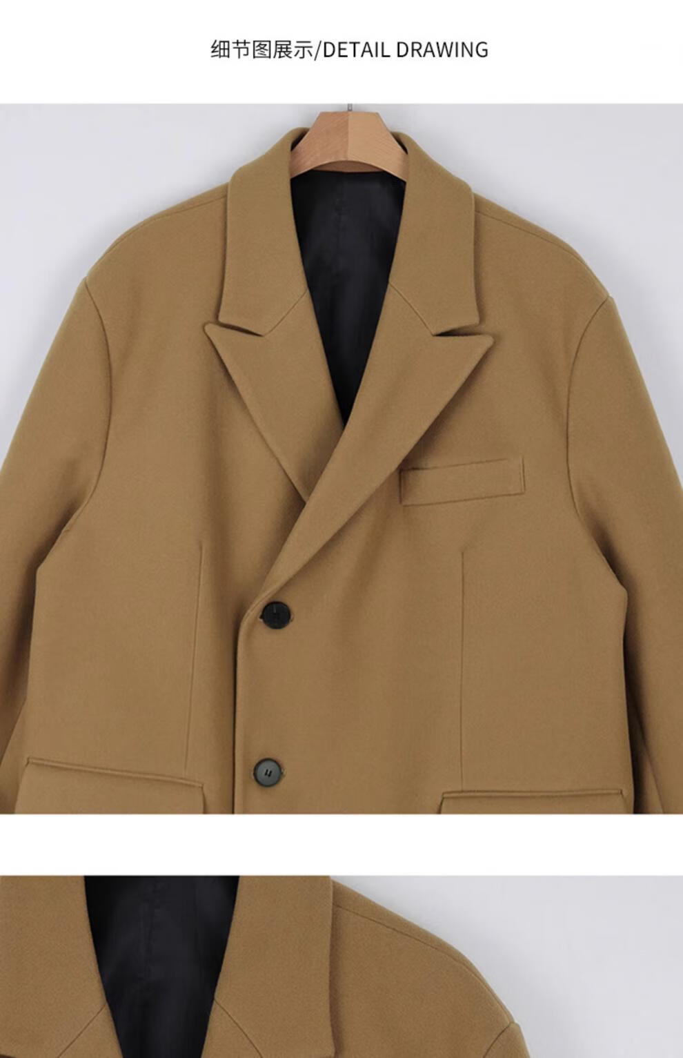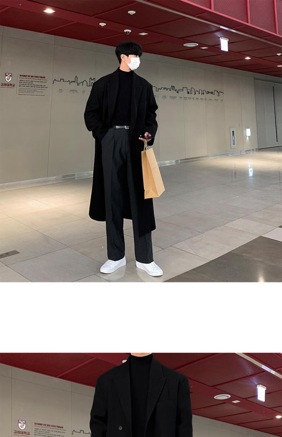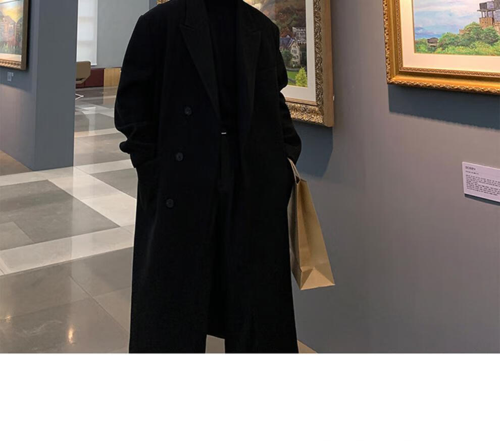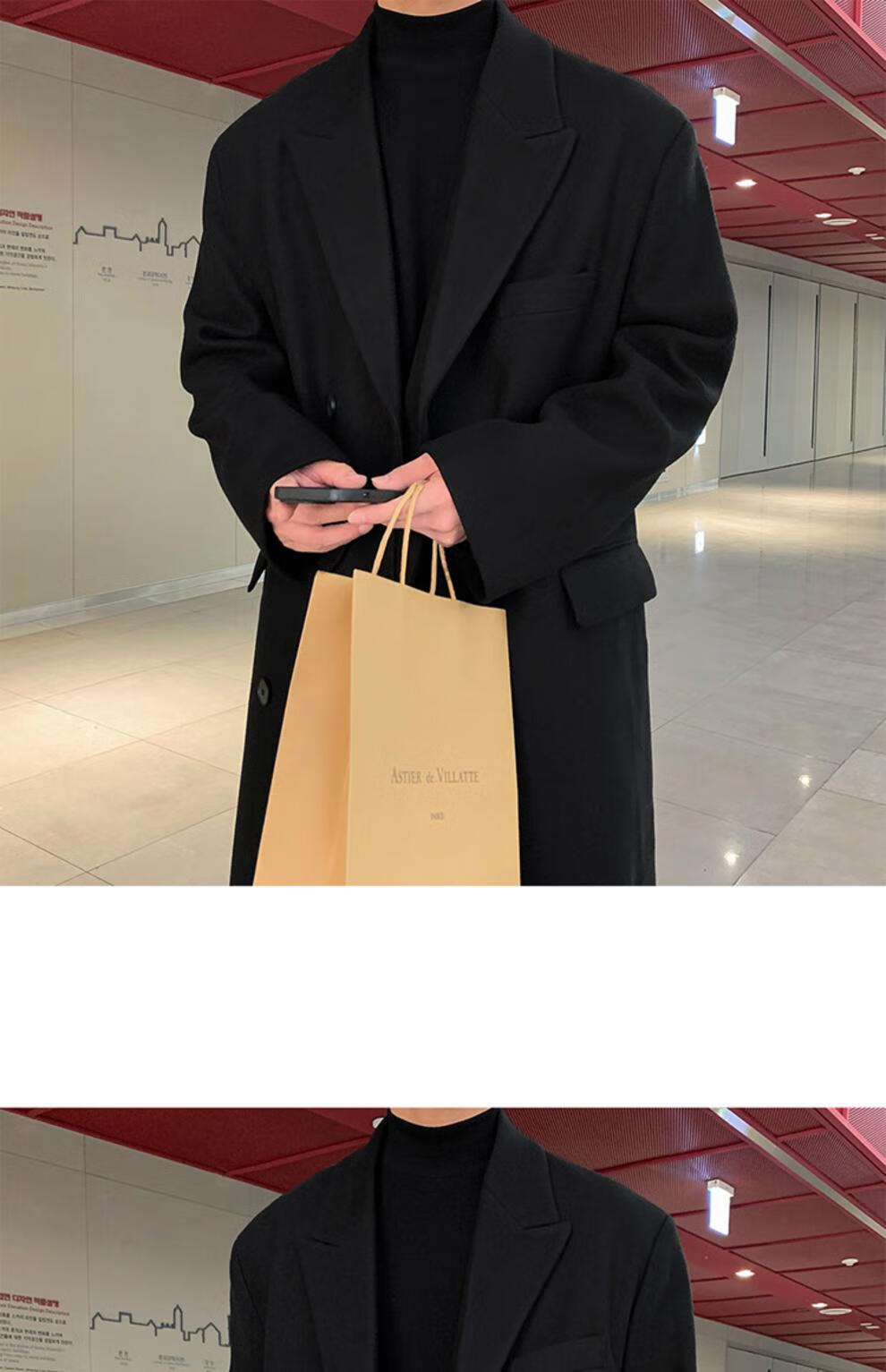 OEMG autumn and winter high street retro mid-length woolen coat men's knee-length windbreaker British thickened handsome woolen coat khaki-cotton L recommended 100-110Jin Jin equals 0.5 kg