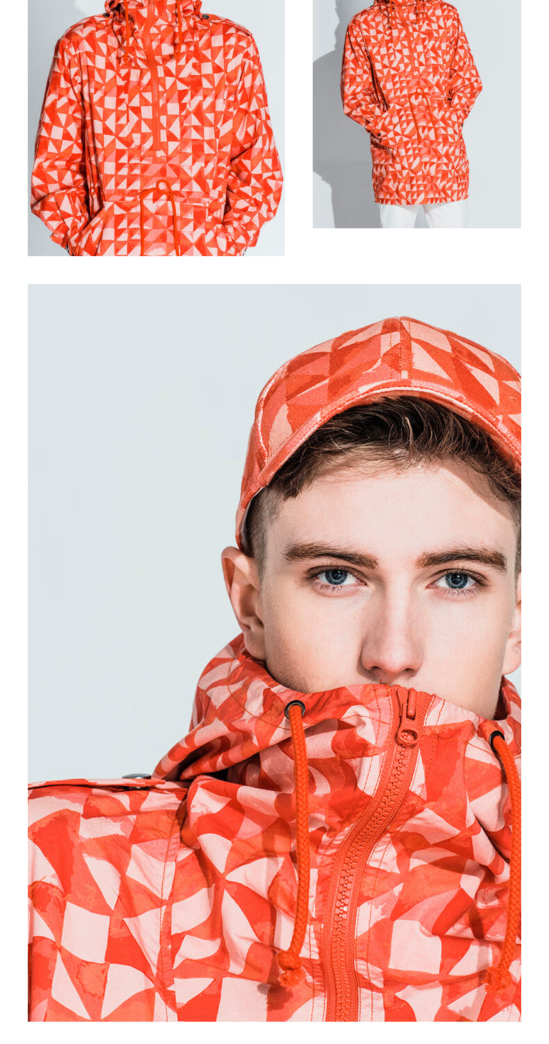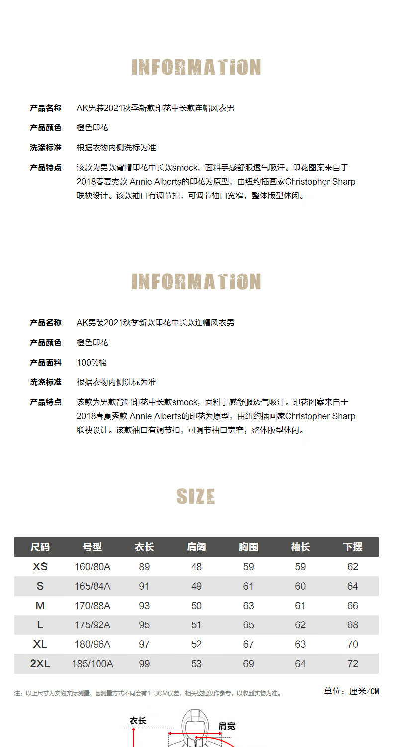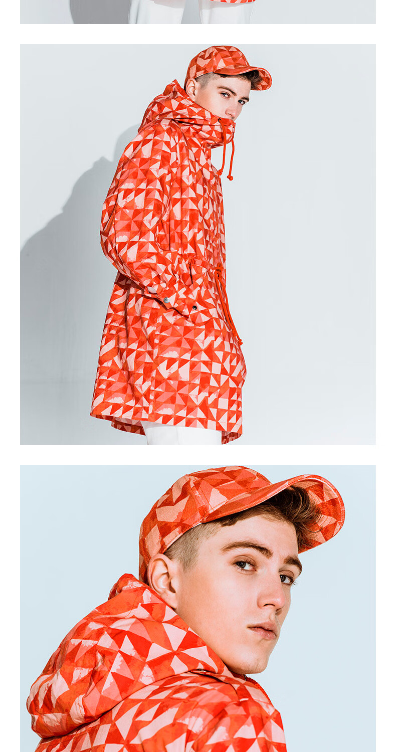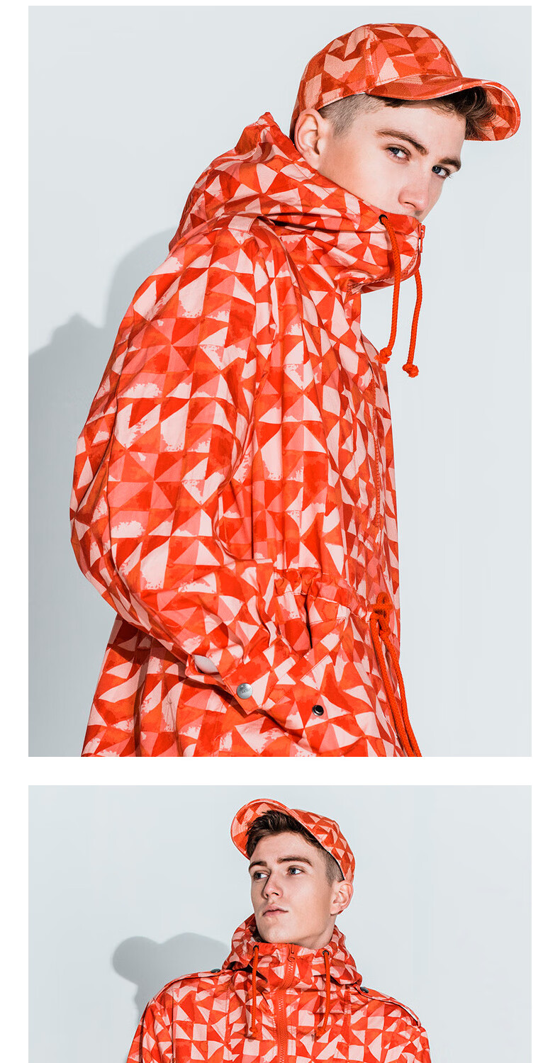 AKSERIESAK Men's Autumn Printed Mid-Long Hooded Windbreaker Men 2106911 Orange Print XL