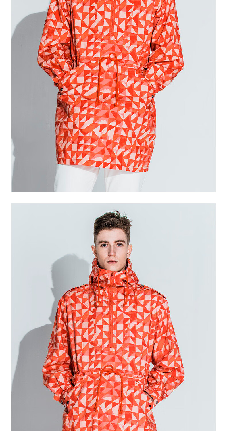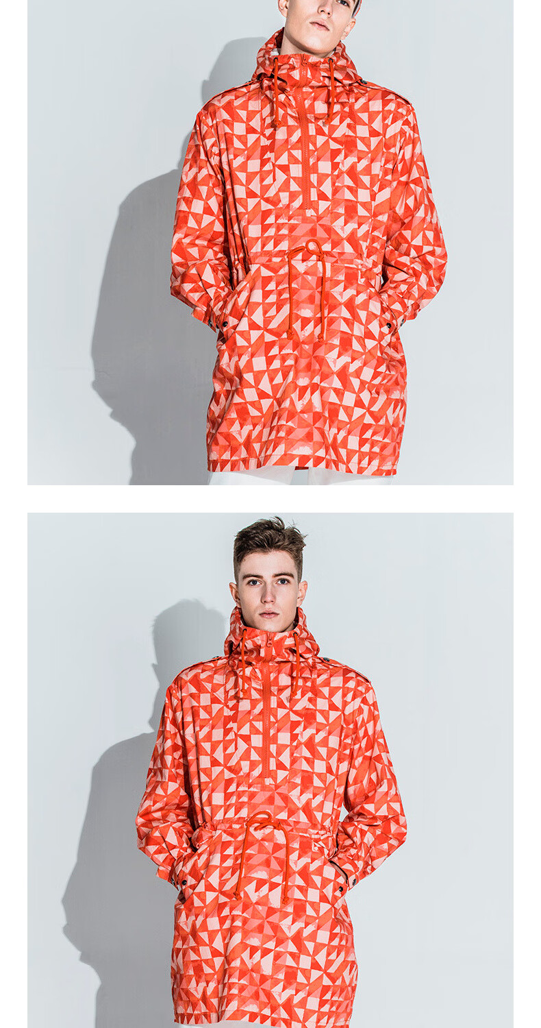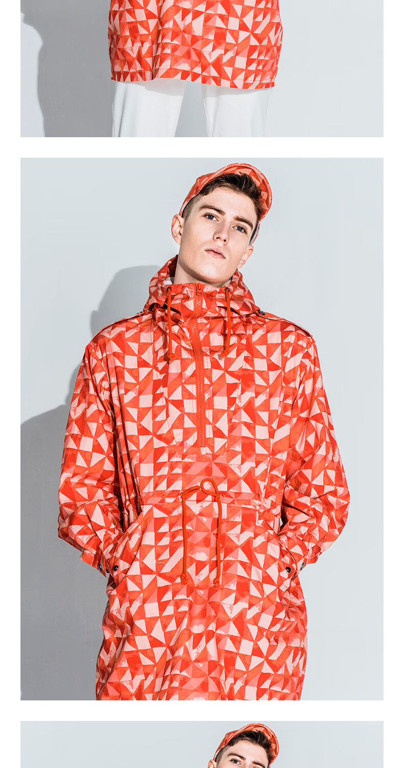 AKSERIESAK Men's Autumn Printed Mid-Long Hooded Windbreaker Men 2106911 Orange Print XL