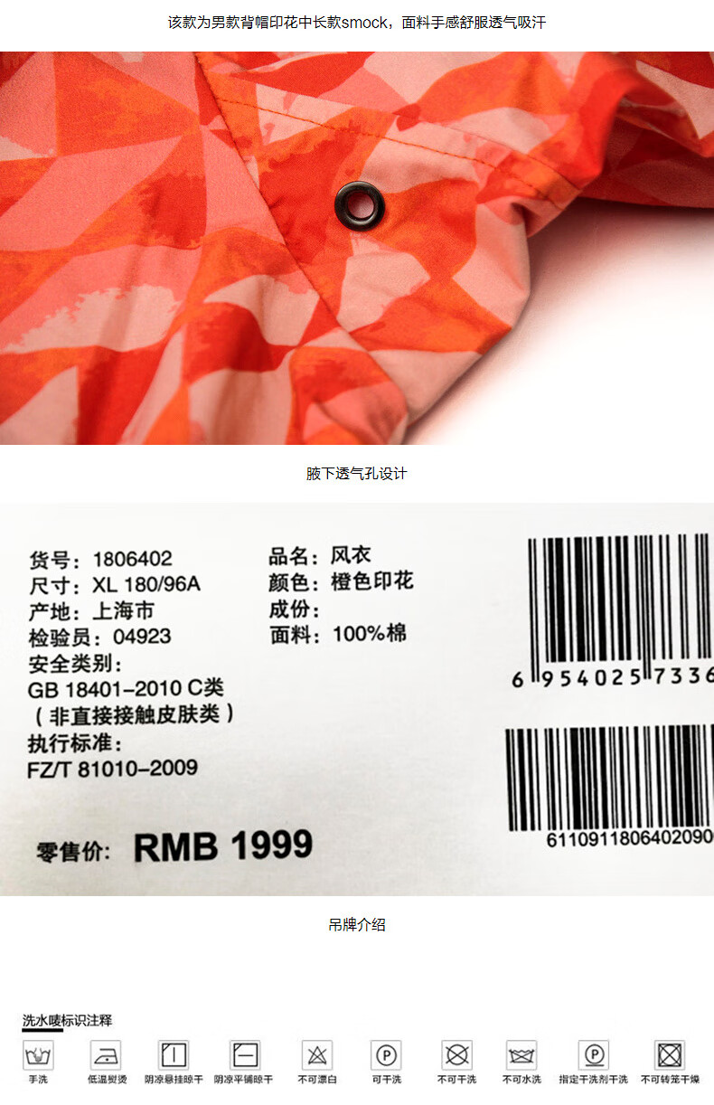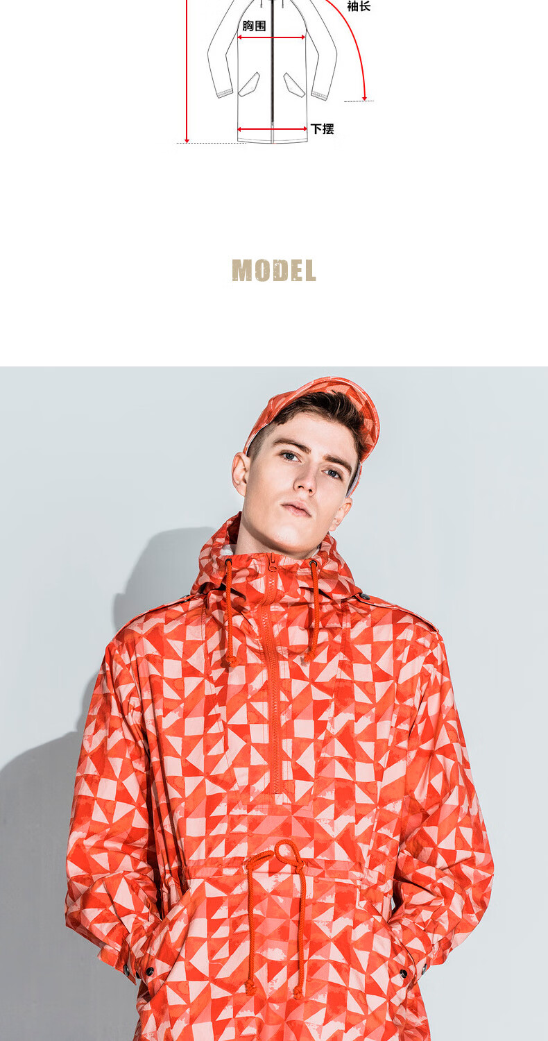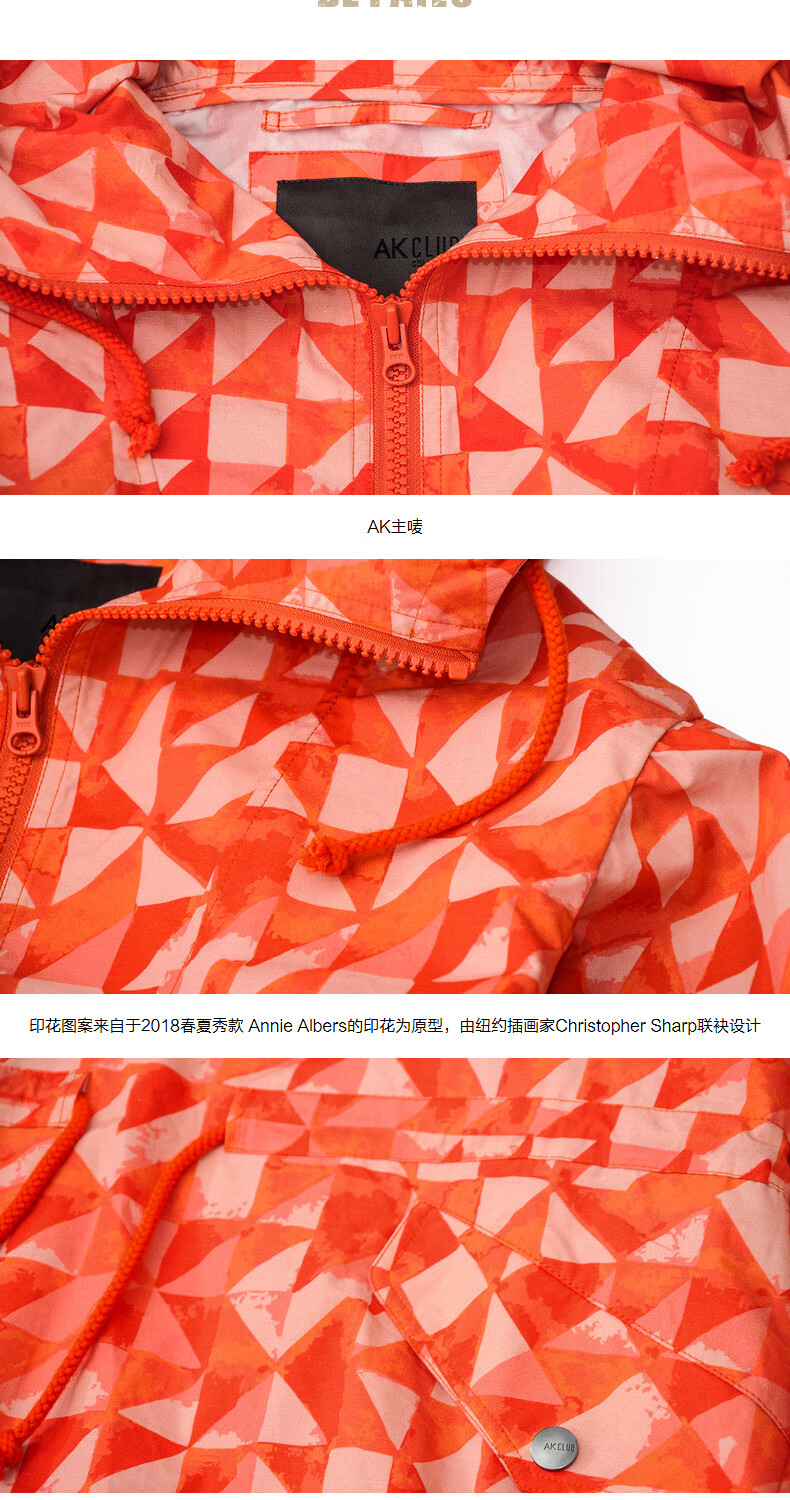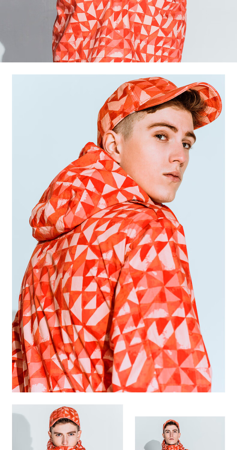 AKSERIESAK Men's Autumn Printed Mid-Long Hooded Windbreaker Men 2106911 Orange Print XL