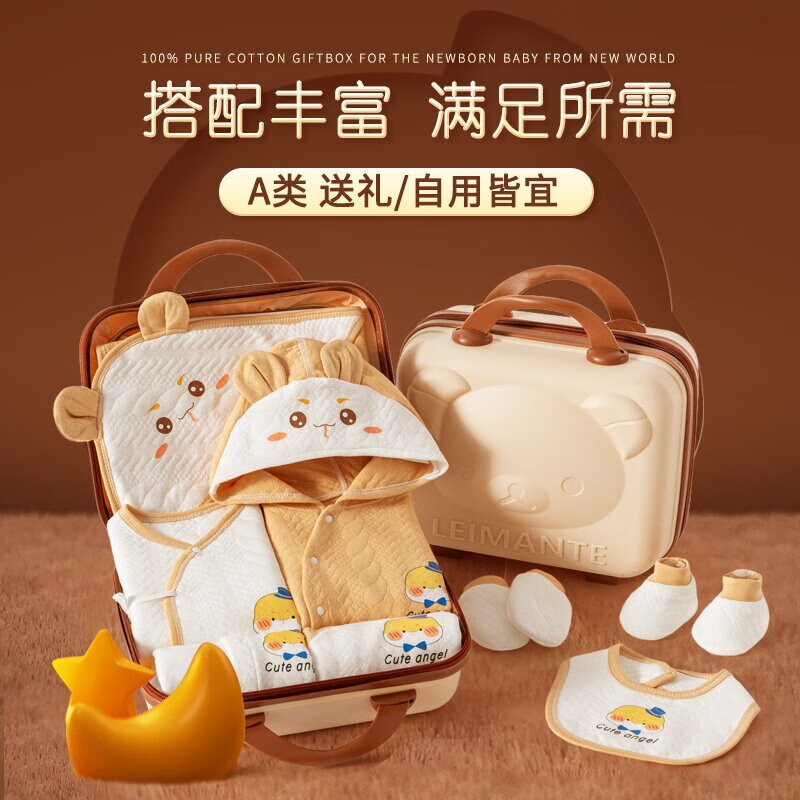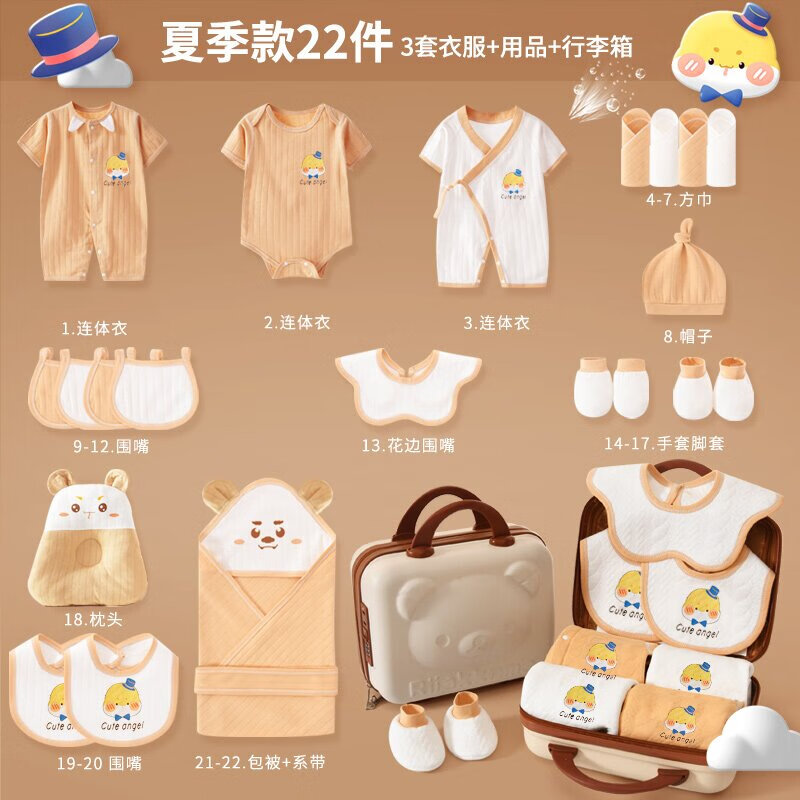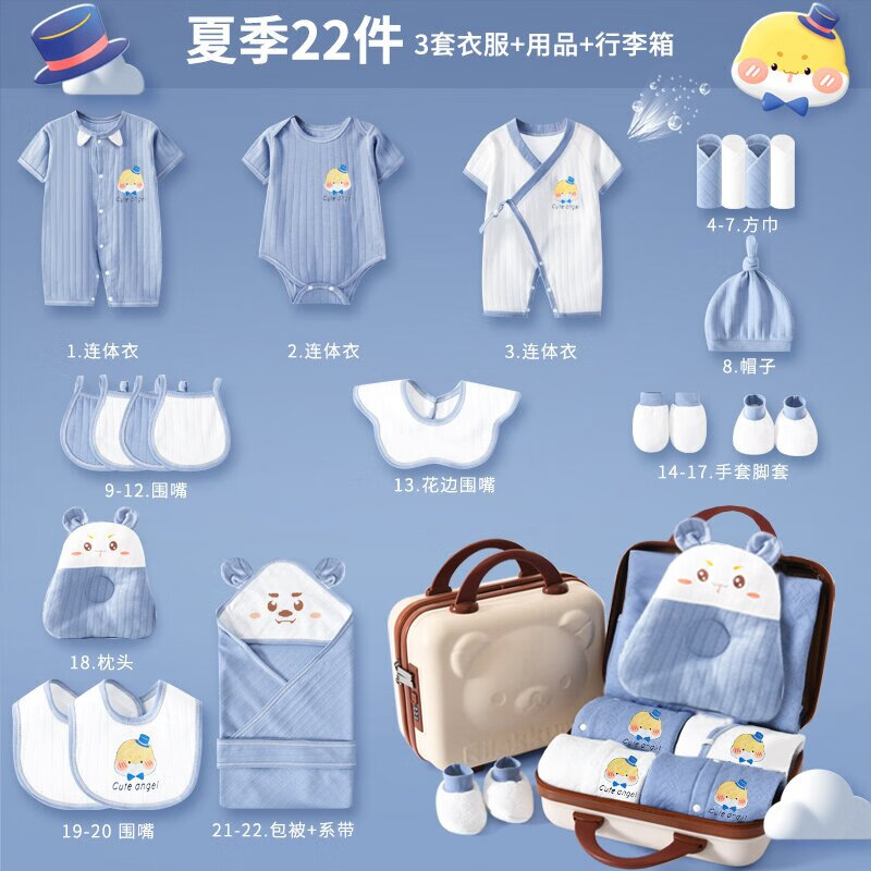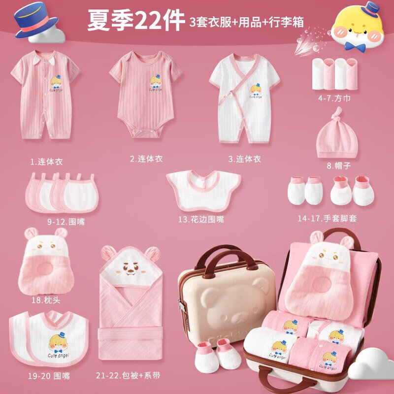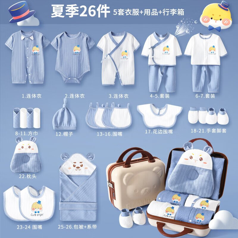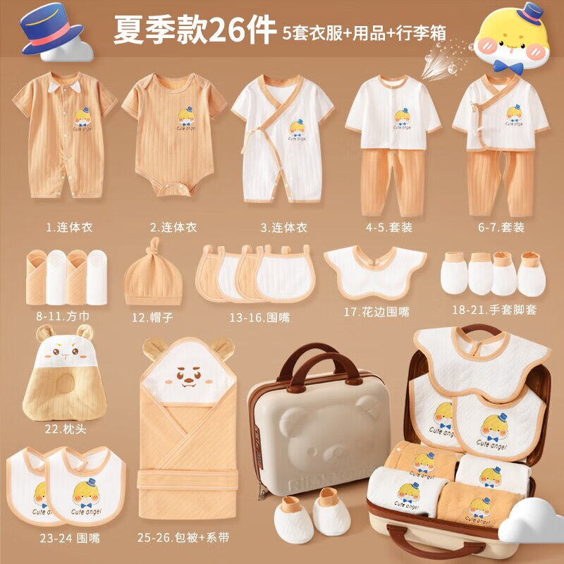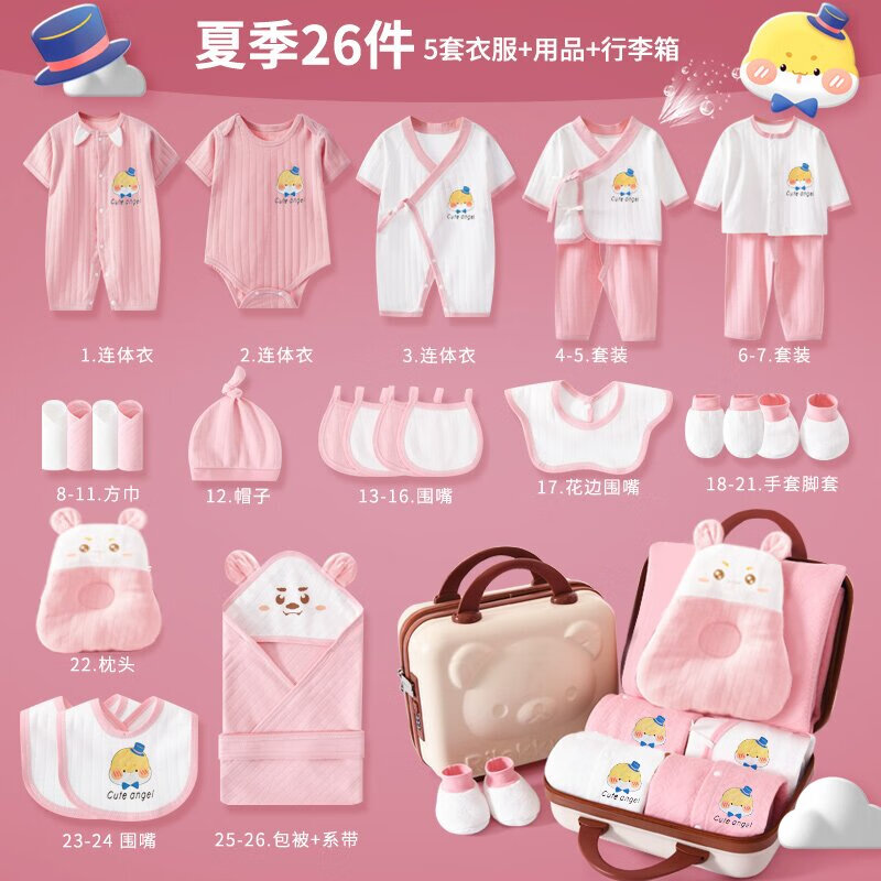 Disney Newborn Clothes, Baby Gifts, Newborn Pure Cotton Complete Set, Newborn Gift Box, Meeting Gift, Maternity Bag, Snake Style 26-piece Set, Four Seasons Powder, Password Box, 59cm (about 0-3 months)