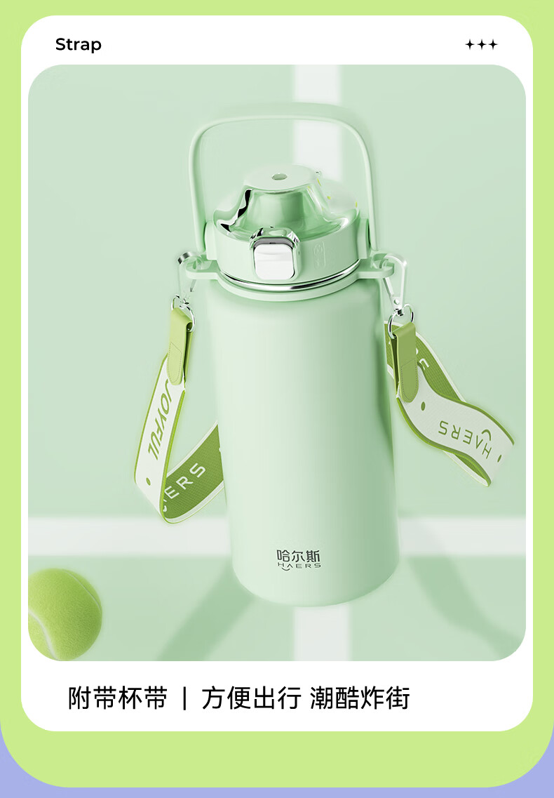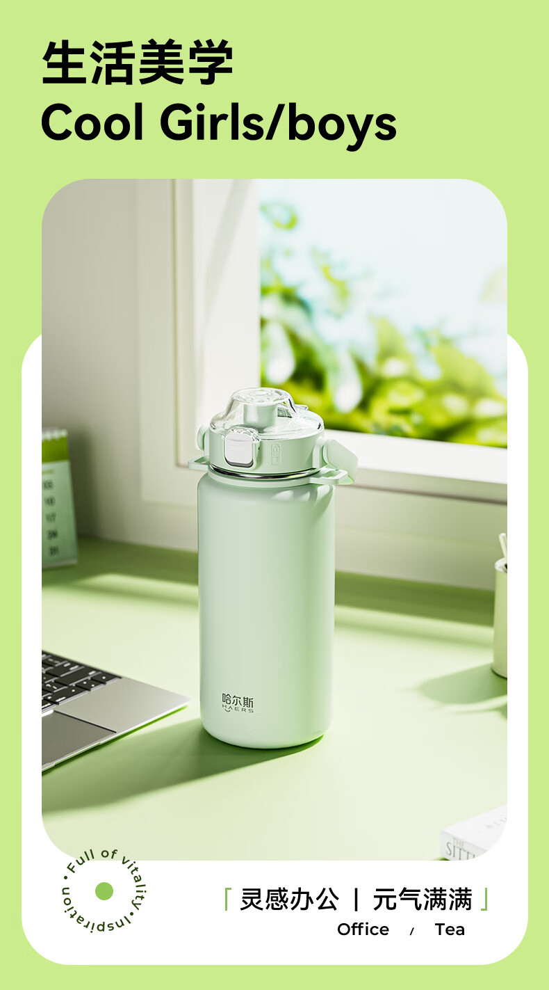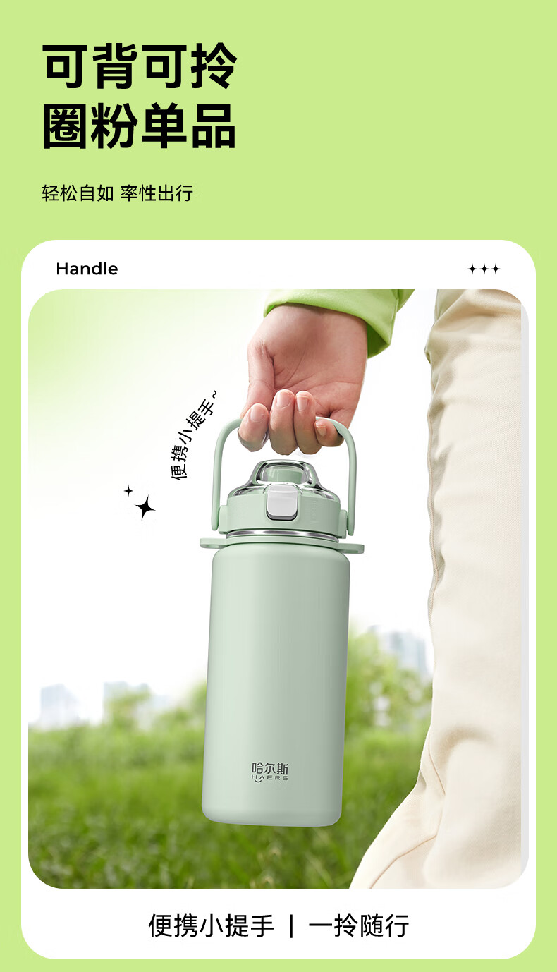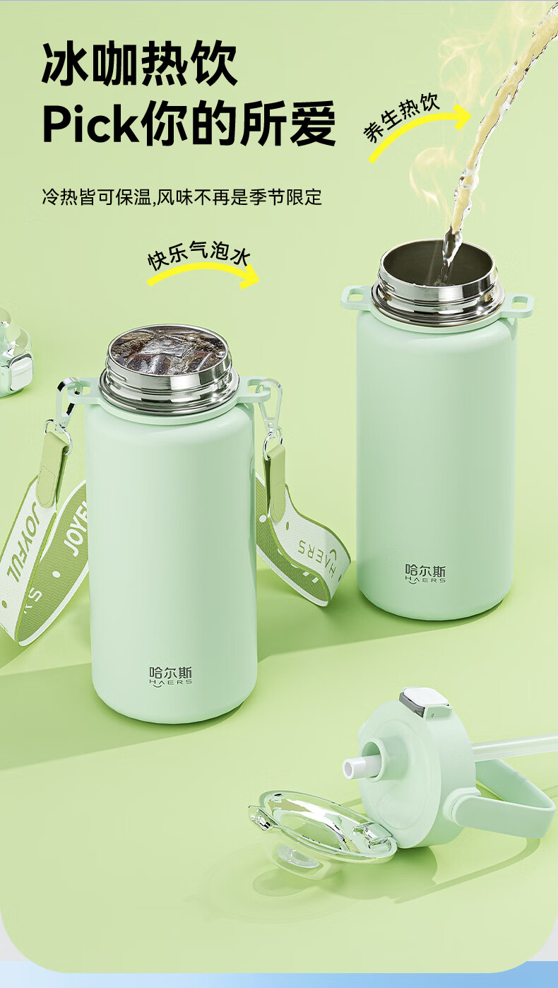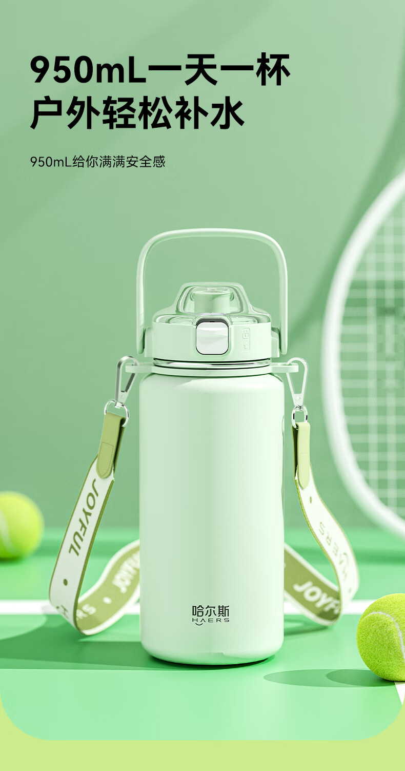 Hals thermos cup 316 stainless steel water cup large capacity portable kettle student men and women gifts practical high-value cup worry-free green 950ml cup belt + 316 liner