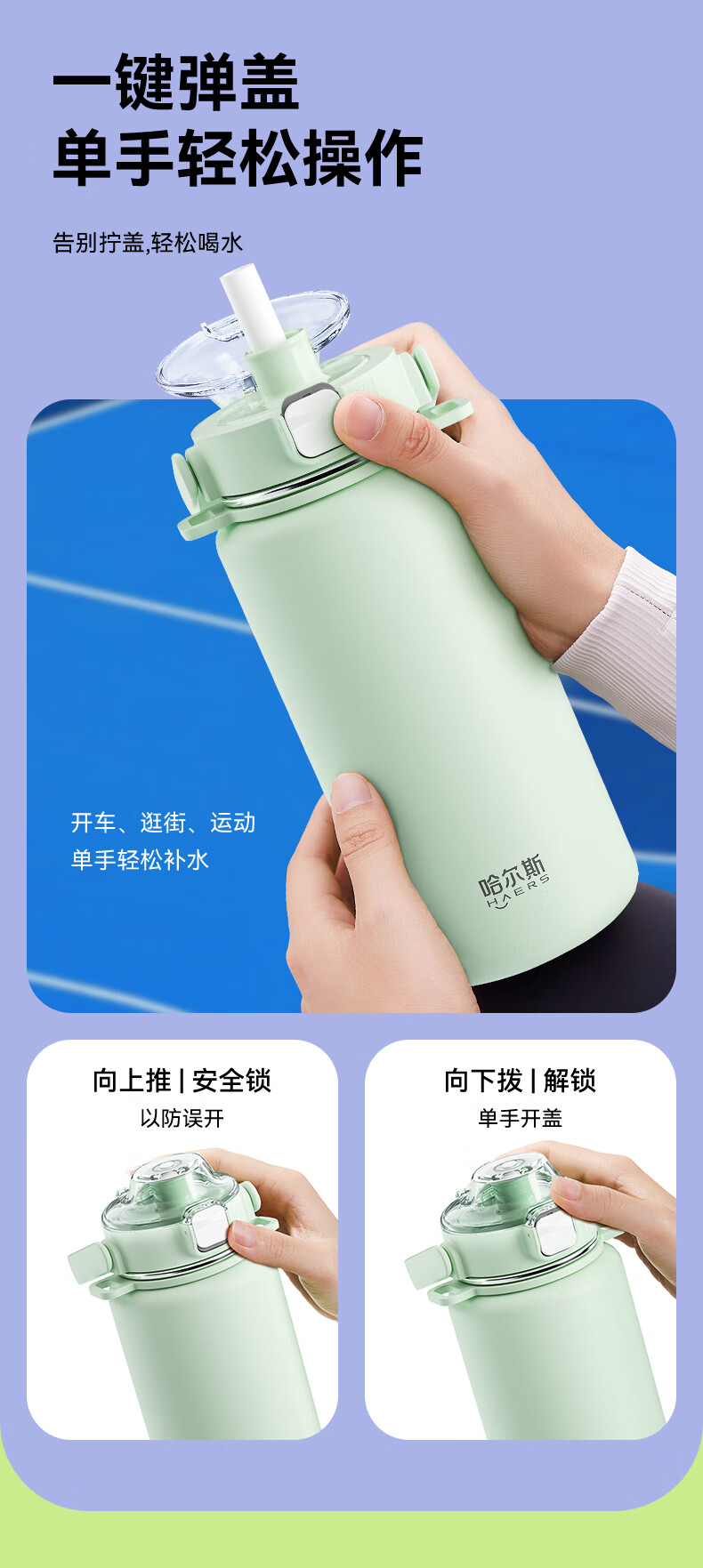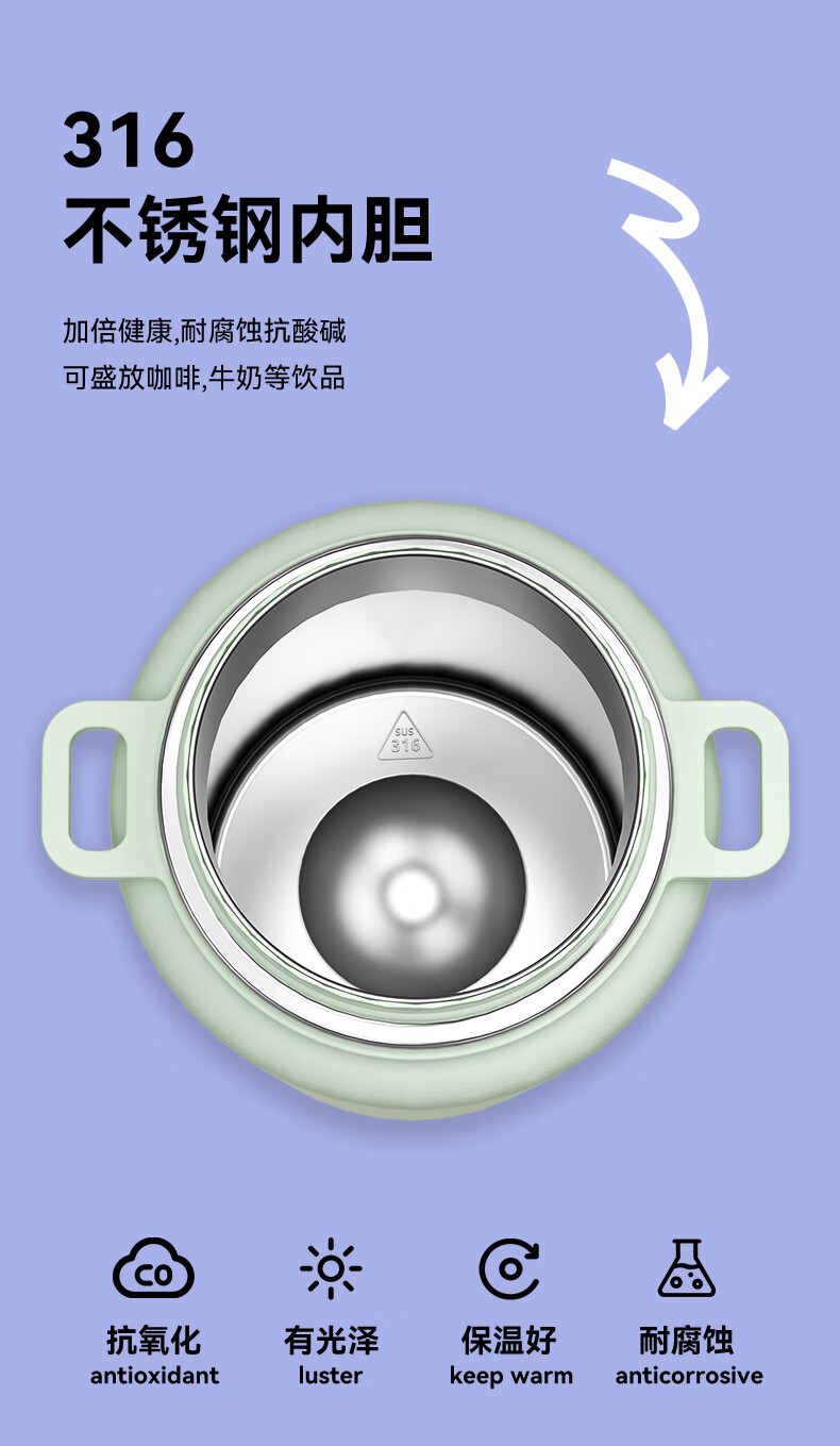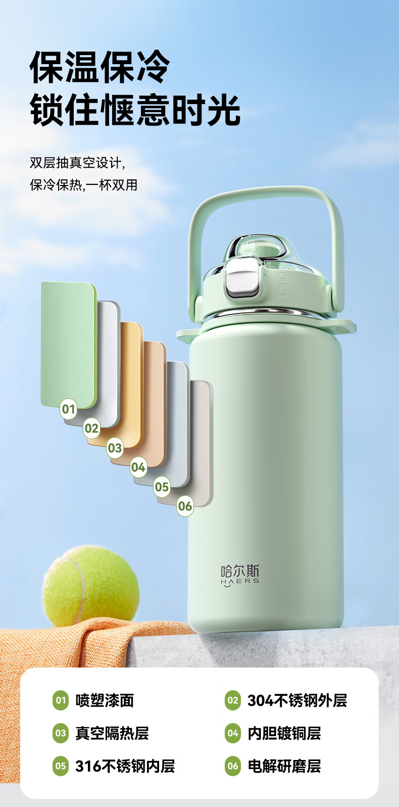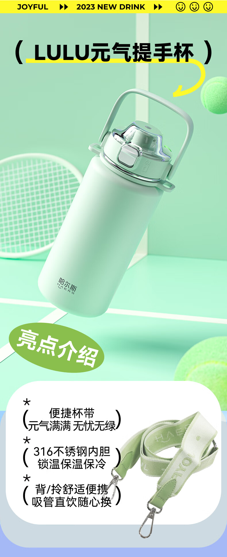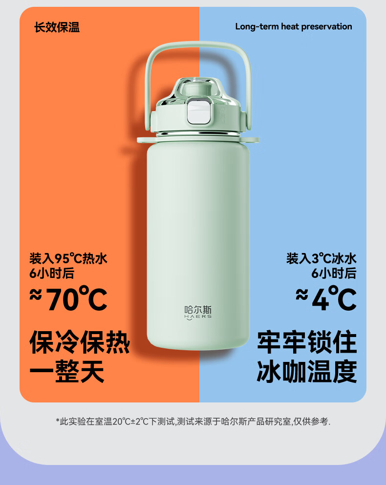 Hals thermos cup 316 stainless steel water cup large capacity portable kettle student men and women gifts practical high-value cup worry-free green 950ml cup belt + 316 liner