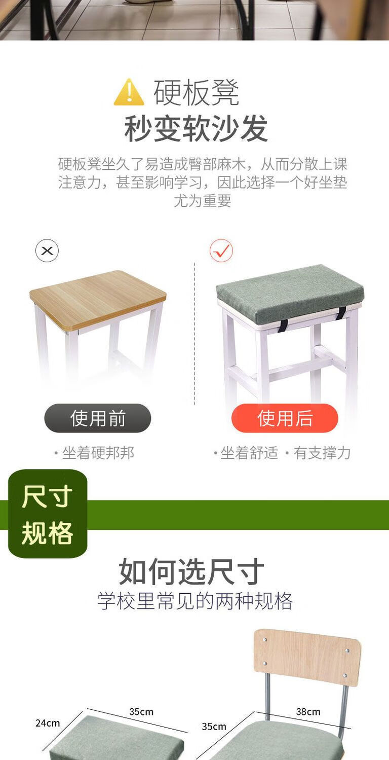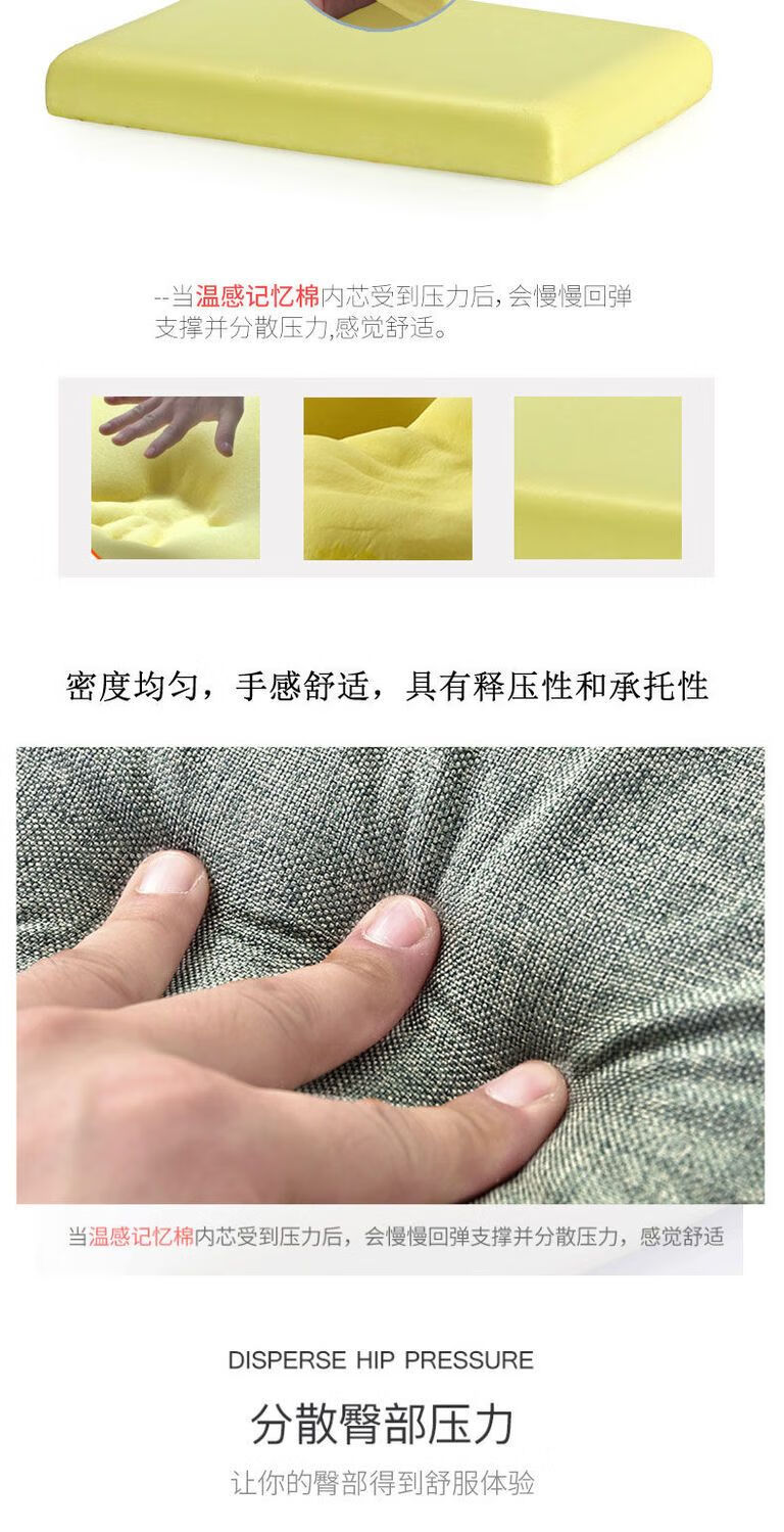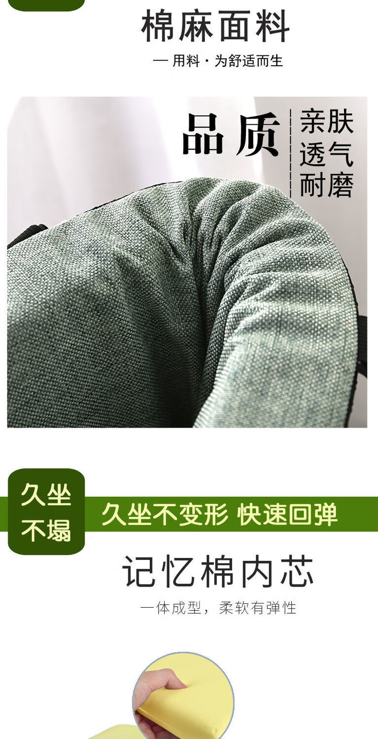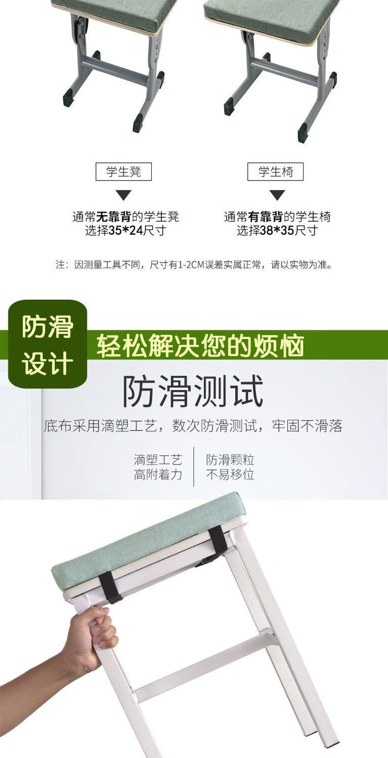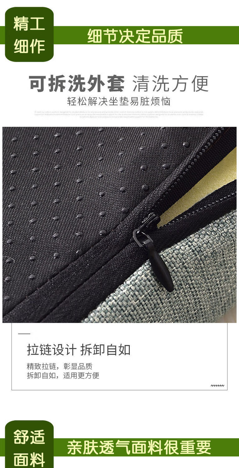Qiaorui linen memory foam student stool chair cushion high school classroom rectangular non-slip removable and washable employee butt pad Four seasons linen black non-slip bottom + double buckle 38*35*4 memory cotton core